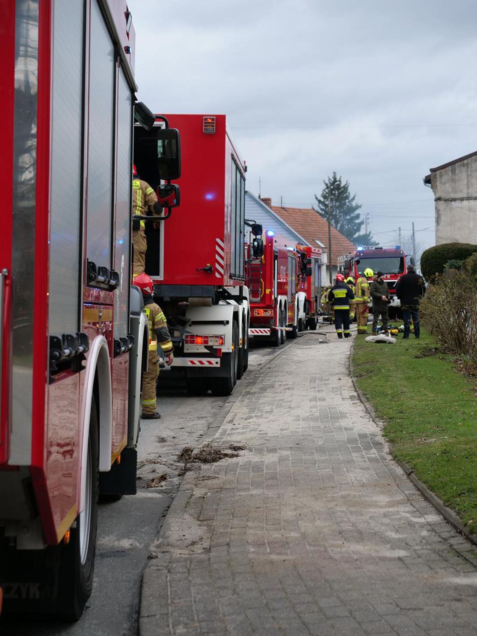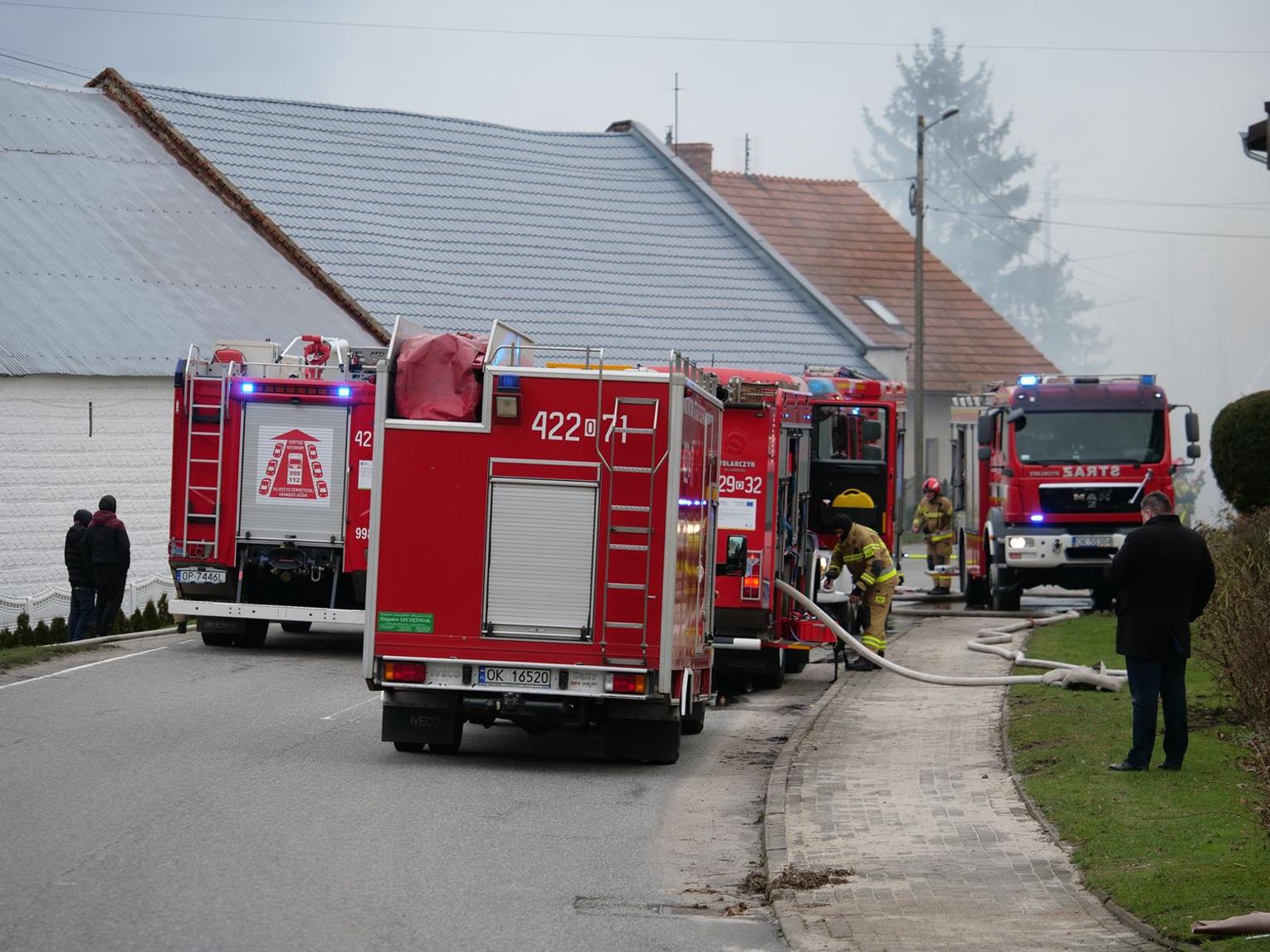 Jak udało się ustalić, w sobotę, 27 stycznia chwilę przed godziną 12 przejeżdżający patrol policji zauważył spore zadymienie na dachu domu wielorodzinnego. Funkcjonariusze wezwali straż pożarną i przystąpili do ewakuacji lokatorów. Łącznie osiem rodzin (około 20 osób). Kiedy strażacy przybyli na miejsce ogień rozprzestrzenił się już na dalszą część dachu. Pożarowi sprzyjał silny wiatr, utrudniając jednocześnie pracę strażakom. Na czas prowadzonych działań droga została całkowicie wyłączona z ruchu. Na szczęście nikomu nic się nie stało. Przybyły na miejsce wójt gminy Reńska Wieś Tomasz Kandziora zorganizował tymczasowe schronienie dla mieszkańców budynku w pobliskim gospodarstwie agroturystycznym. Lokatorzy w najbliższym czasie nie będą mogli wrócić do swoich mieszkań. Na chwilę obecną nie wiadomo, co mogło być przyczyną pożaru. Z relacji mieszkańców wynika, że w tym tygodniu miał miejsce przegląd kominiarski, wraz z czyszczeniem przewodów kominowych.