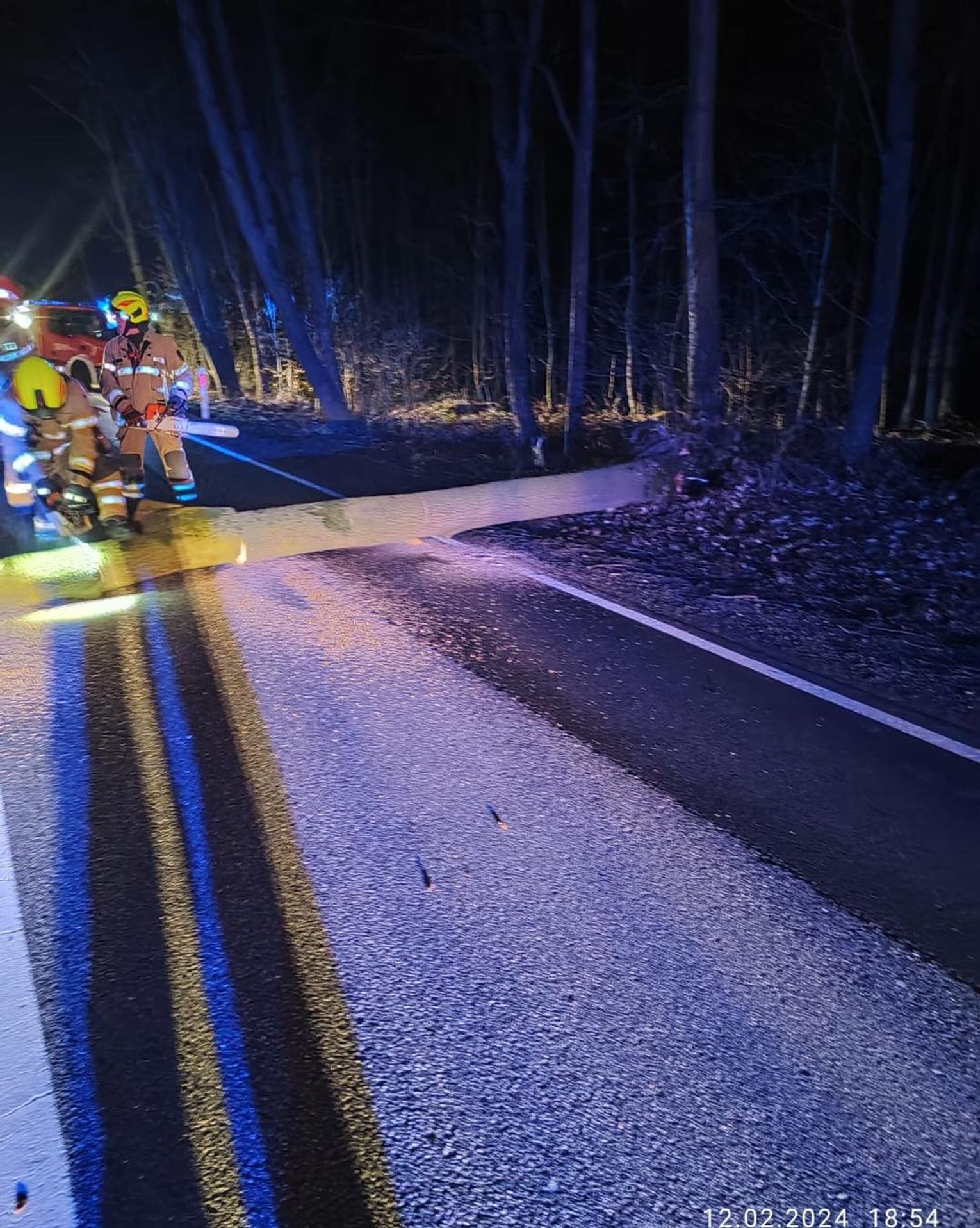 Zgłoszenie do dyżurnego Komendy Powiatowej Państwowej Straży Pożarnej w Kędzierzynie-Koźlu wpłynęło w poniedziałek, 12 lutego około godziny 18.30. Drzewo upadło w poprzek jezdni blokując oba pasy. Na miejsce zadysponowano zastępy z Jednostki Ratowniczo-Gaśniczej nr 2 oraz OSP Polska Cerekiew. Działania strażaków polegały na zabezpieczeniu miejsca zdarzenia, usunięciu zalegającego drzewa i przywróceniu jezdni do stanu używalności.