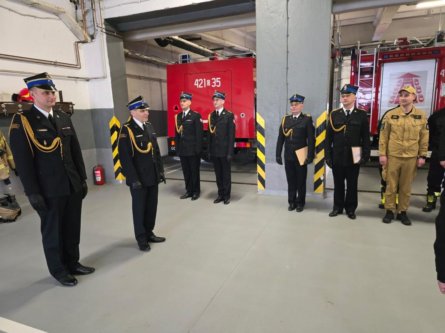 W środę, 21 lutego o godzinie 7.30 odbyła się uroczysta zmiana służby, w której wzięli udział Komendant Powiatowy Państwowej Straży Pożarnej w Kędzierzynie-Koźlu st. bryg. Piotr Dudek wraz ze swoim zastępcą mł. bryg. Szymonem Jedrzejasem. Zbiórka była okazją do pożegnania przechodzących na zaopatrzenie emerytalne mł. asp. Roberta Brzozę oraz st. ogn. Łukasza Daszkiewicza. Komendant podziękował za wszystkie lata służby i zaangażowanie w wykonywanie obowiązków służbowych.
