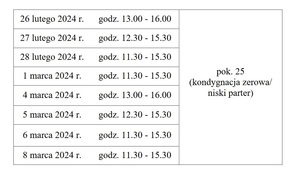 W celu przyjmowania zgłoszeń kandydatów na członków obwodowych komisji wyborczych w wyborach do rad gmin, rad powiatów, sejmików województw oraz wyborów wójtów, burmistrzów i prezydentów miast zarządzonych na dzień 7 kwietnia 2024 r. urzędnicy wyborczy będą dyżurować w Urzędzie Miasta Kędzierzyn-Koźle wg poniższego harmonogramu.