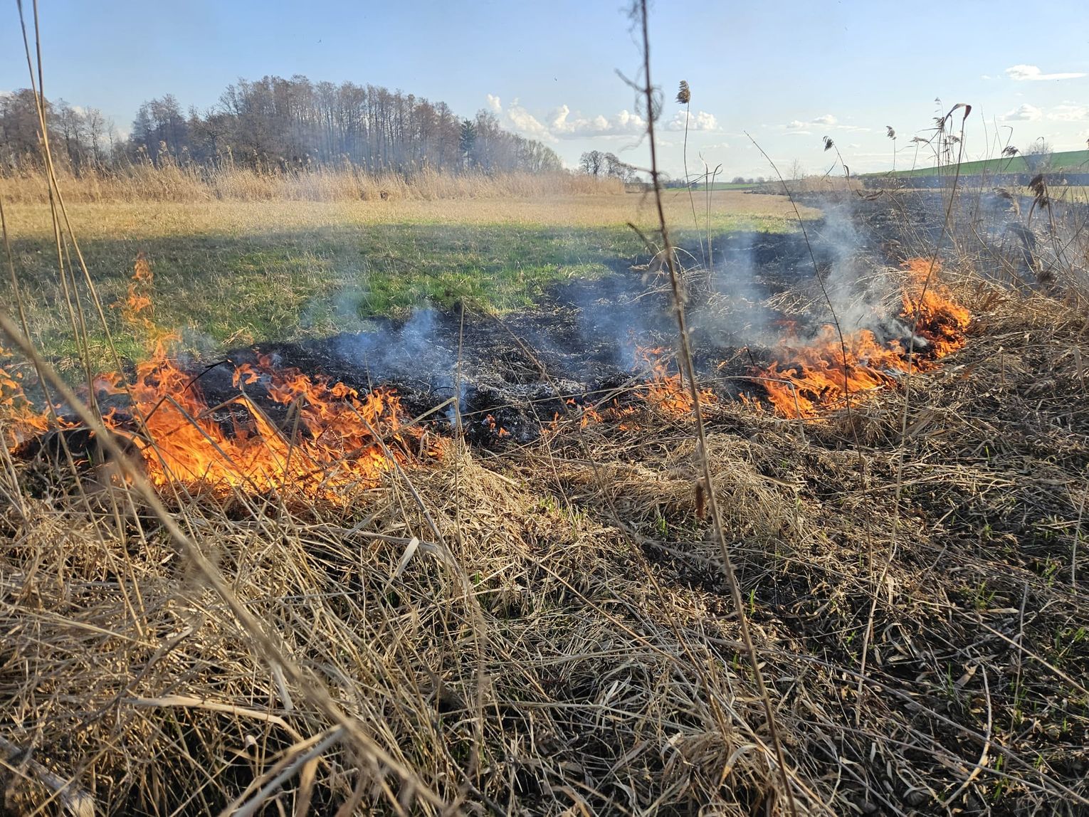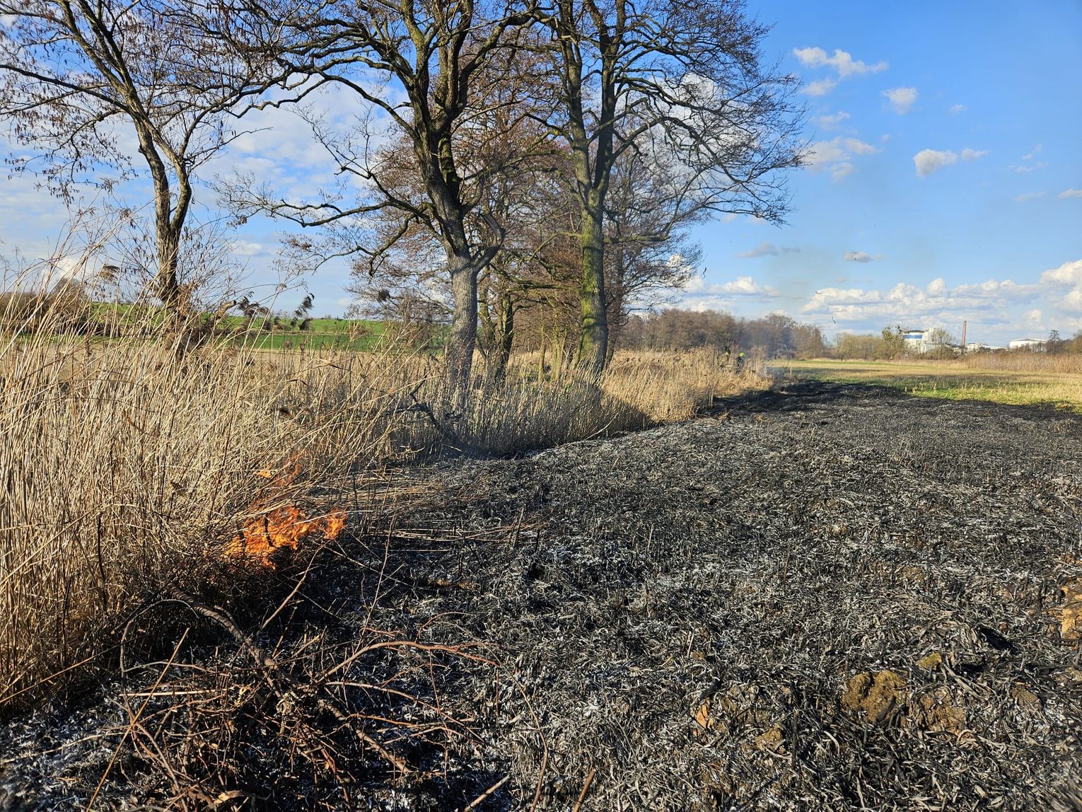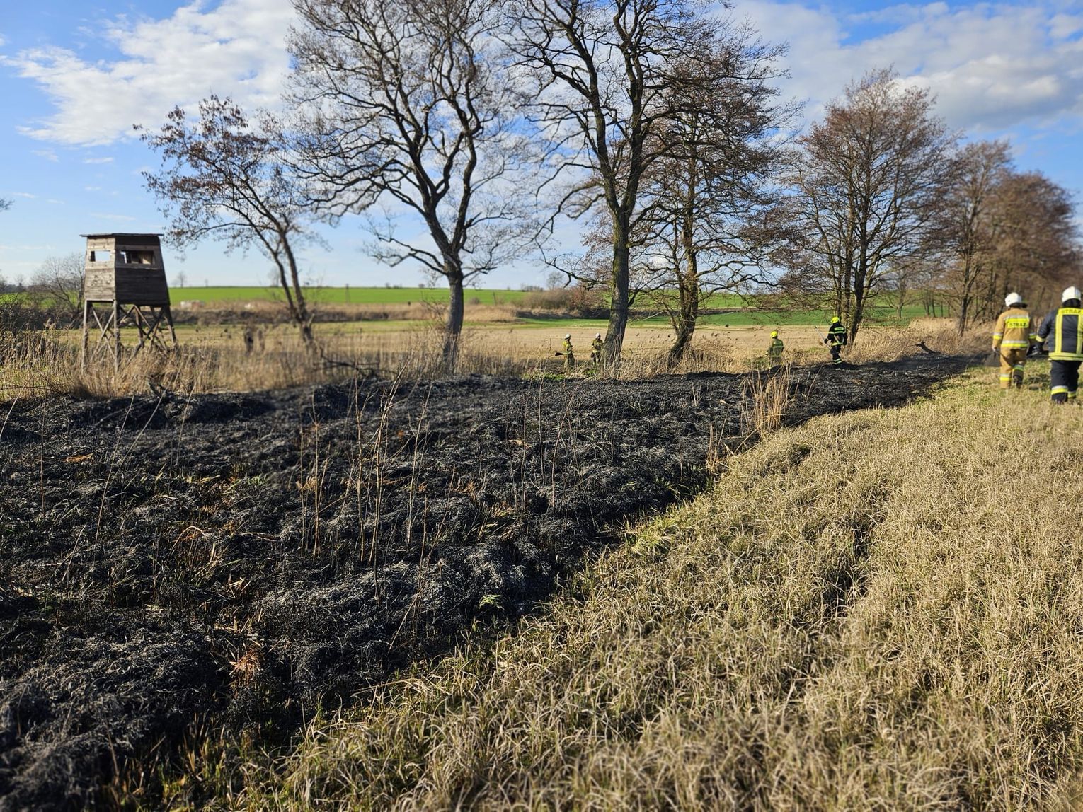 Do pożaru nieużytków doszło w poniedziałek, 4 marca kilkanaście minut przed godziną 15. Na szczęście pobliskie zastępy OSP w porę zareagowały i szybko udało się opanować zagrożenie. Strażacy apelują, aby nie wypalać traw.