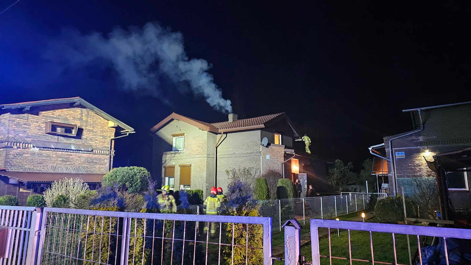 Z komina wydobywał się gęsty dym oraz iskry. Doszło do pożaru sadzy nagromadzonej w kominie. Strażacy szybko przystąpili do działań.