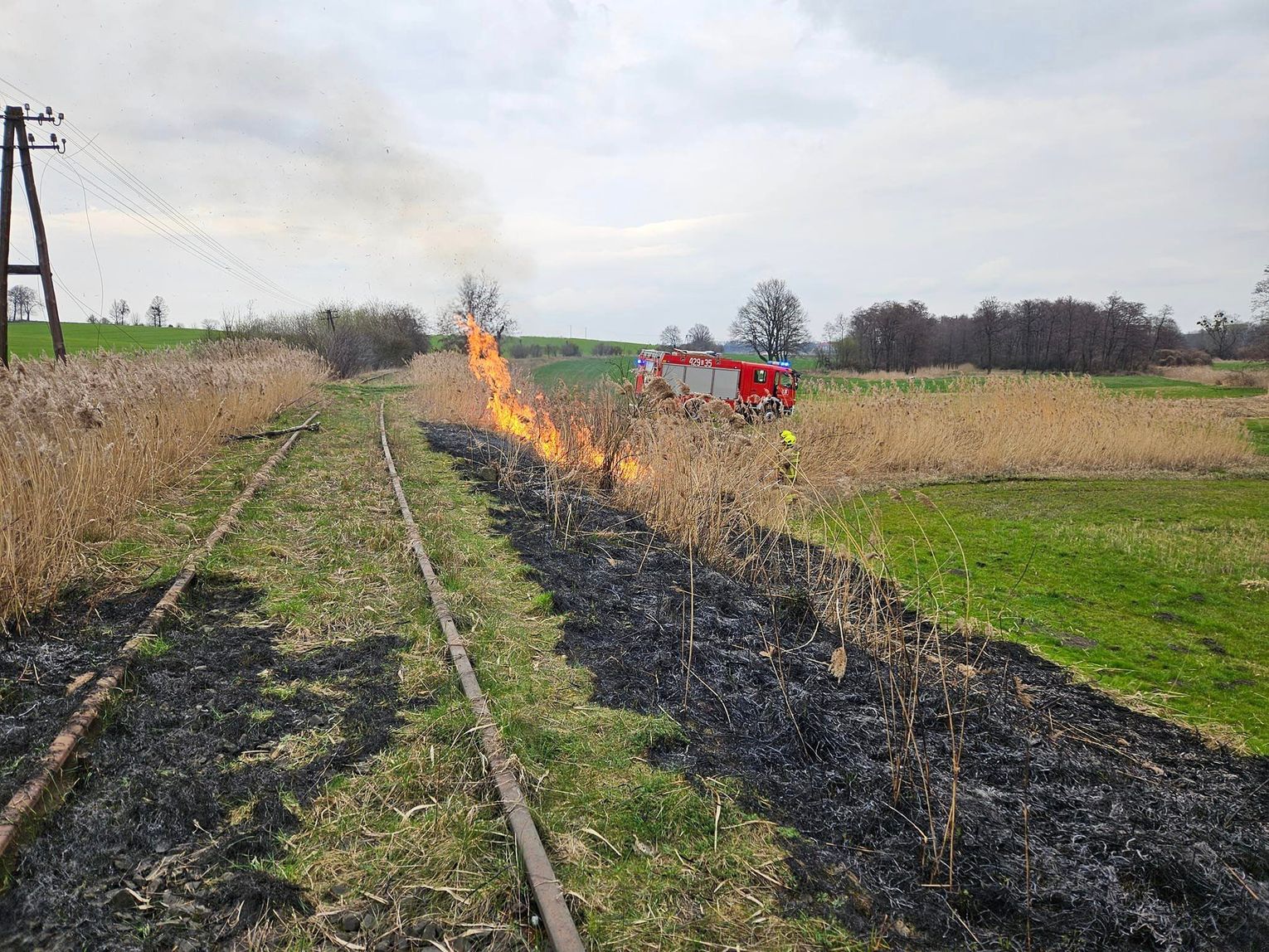 To już kolejny pożar (z pewnością podpalenie) w gminie Polska Cerekiew. Tym razem paliła się trawa w okolicy nasypu kolejowego.