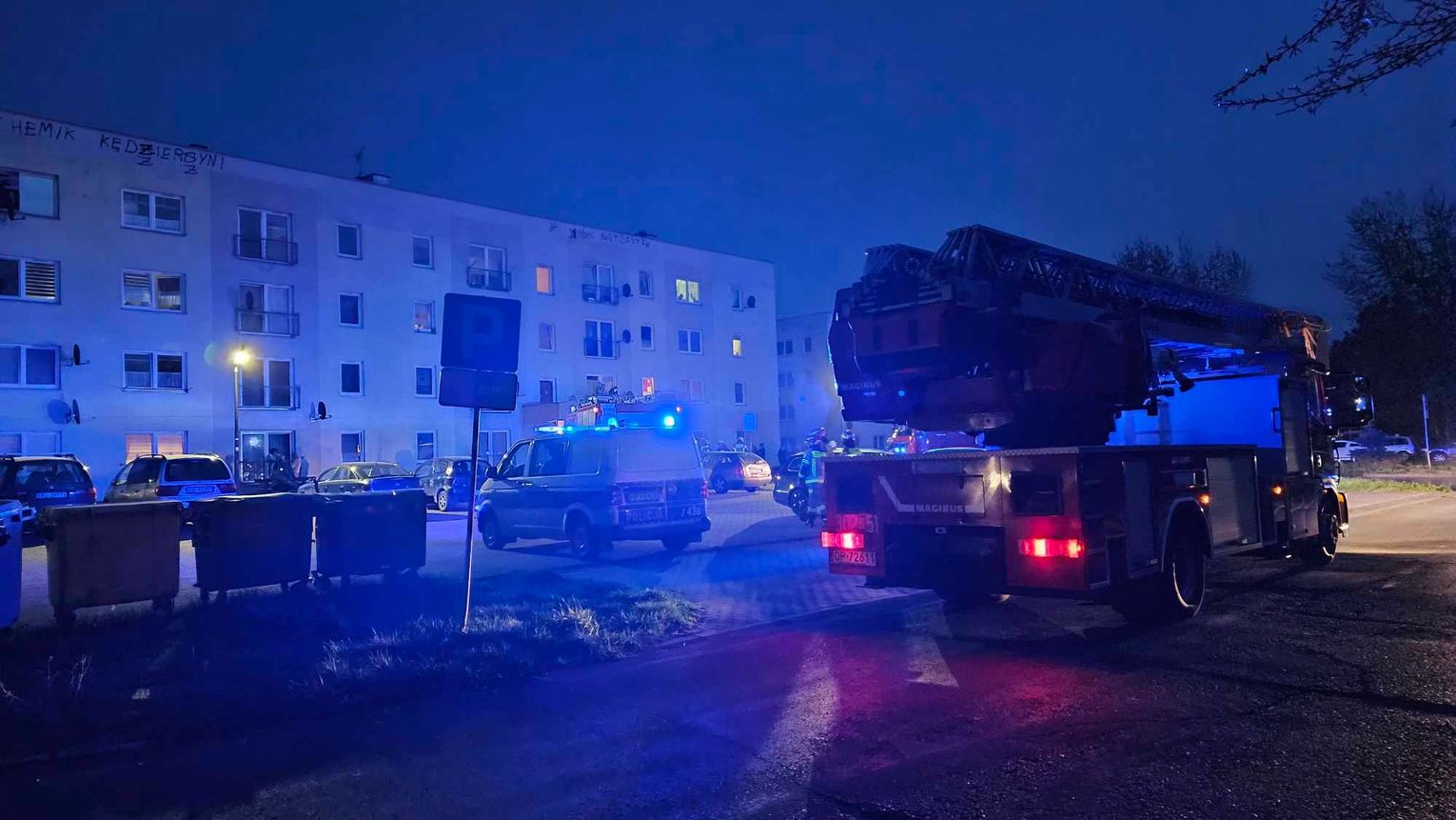 Pięć zastępów straży pożarnej w tym autodrabina oraz patrol policji interweniowali na osiedlu Blachownia, gdzie miało dojść do pożaru mieszkania.