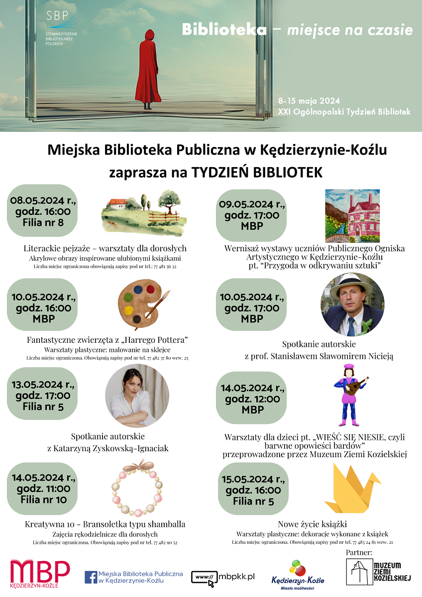 - 14.05, godz. 12:00, MBP – Warsztaty dla dzieci pt. „Wieść się niesie, czyli barwne opowieści bardów” przeprowadzone przez Muzeum Ziemi Kozielskiej