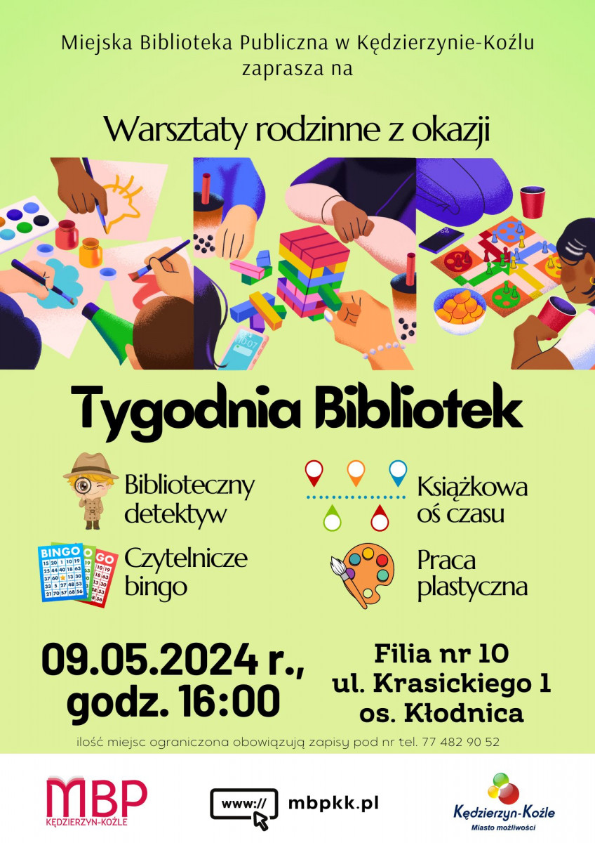 - 09.05, godz. 16:00, Filia nr 10 – Warsztaty rodzinne