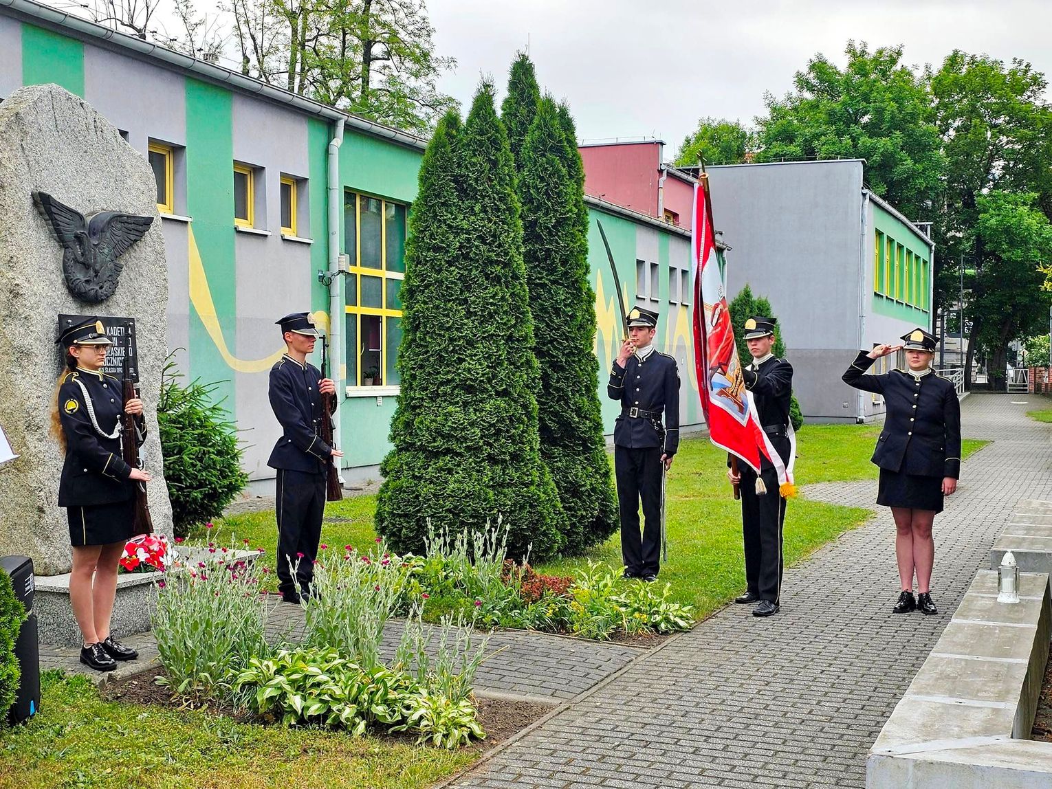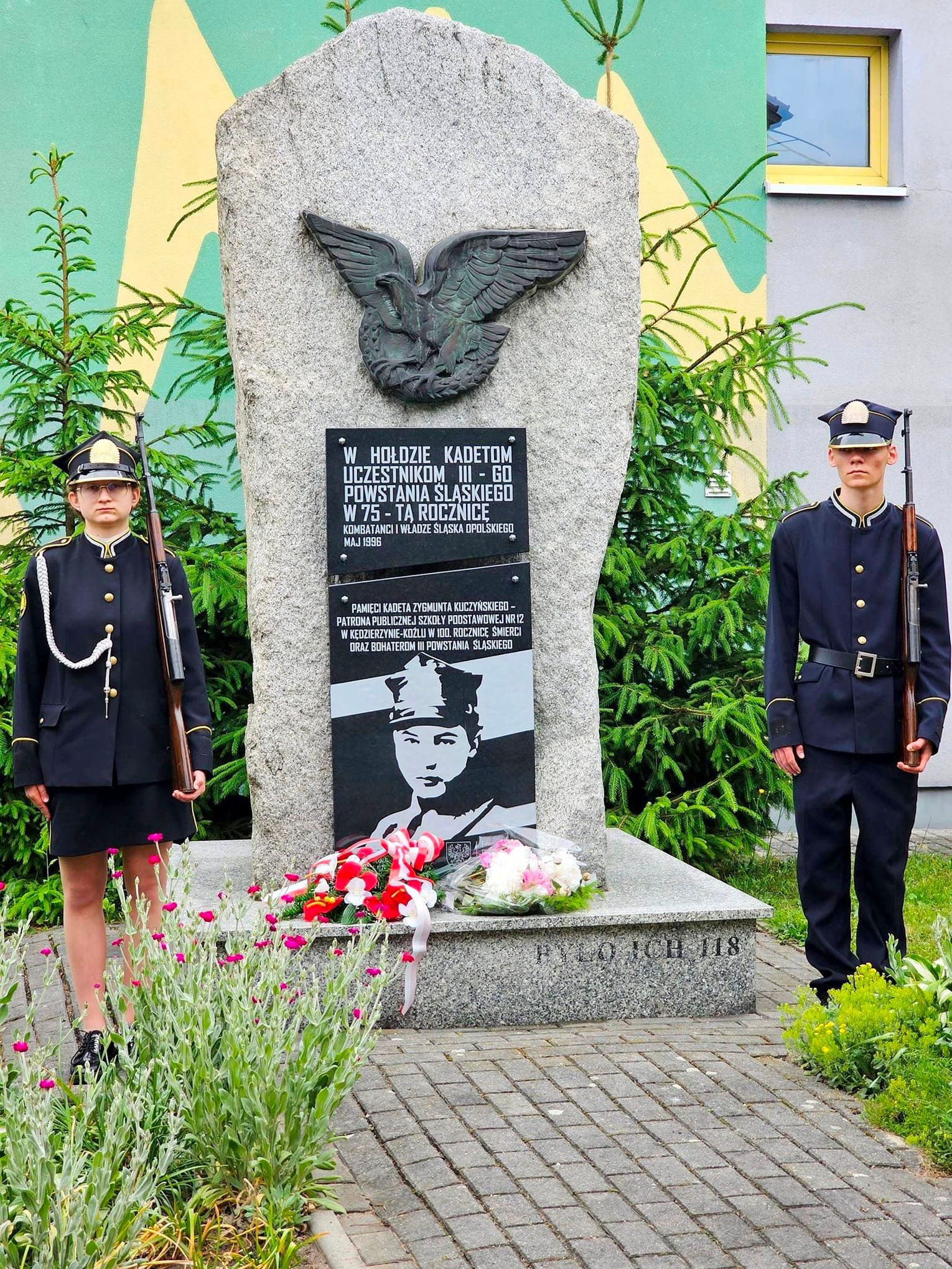 Przed pomnikiem upamiętniającym kadetów biorących udział w III powstaniu śląskim odbył się Apel Poległych z udziałem przedstawicieli Zespołu Szkół Korpusu Kadetów w Suchedniowie.