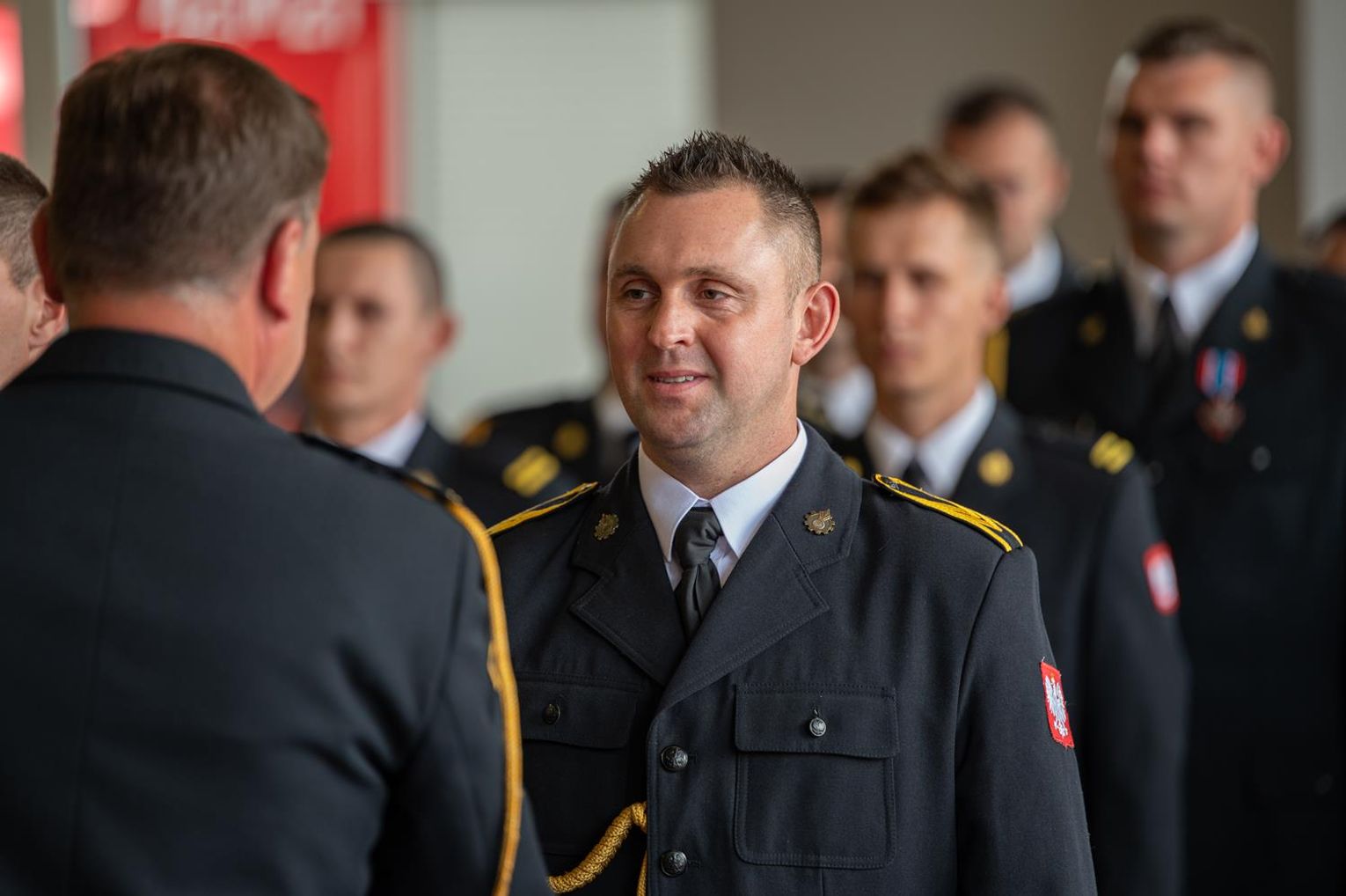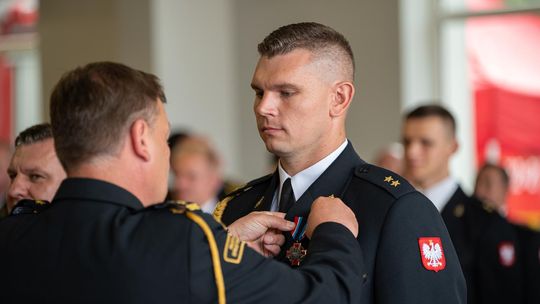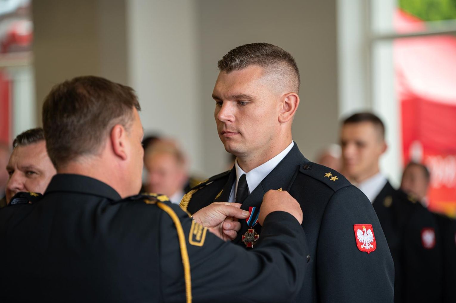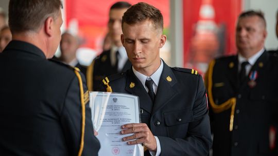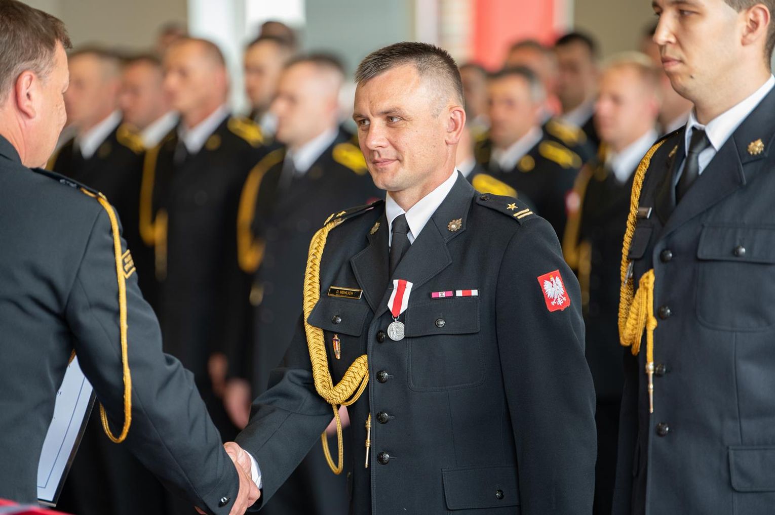 Srebrny medal za Zasługi Dla Pożarnictwa otrzymał mł. bryg. Dawid Mehlich.