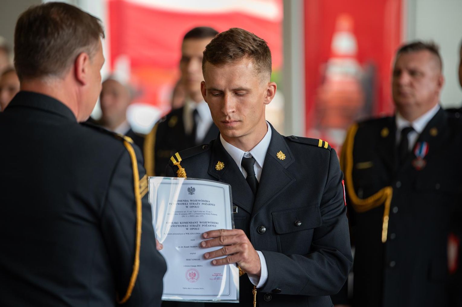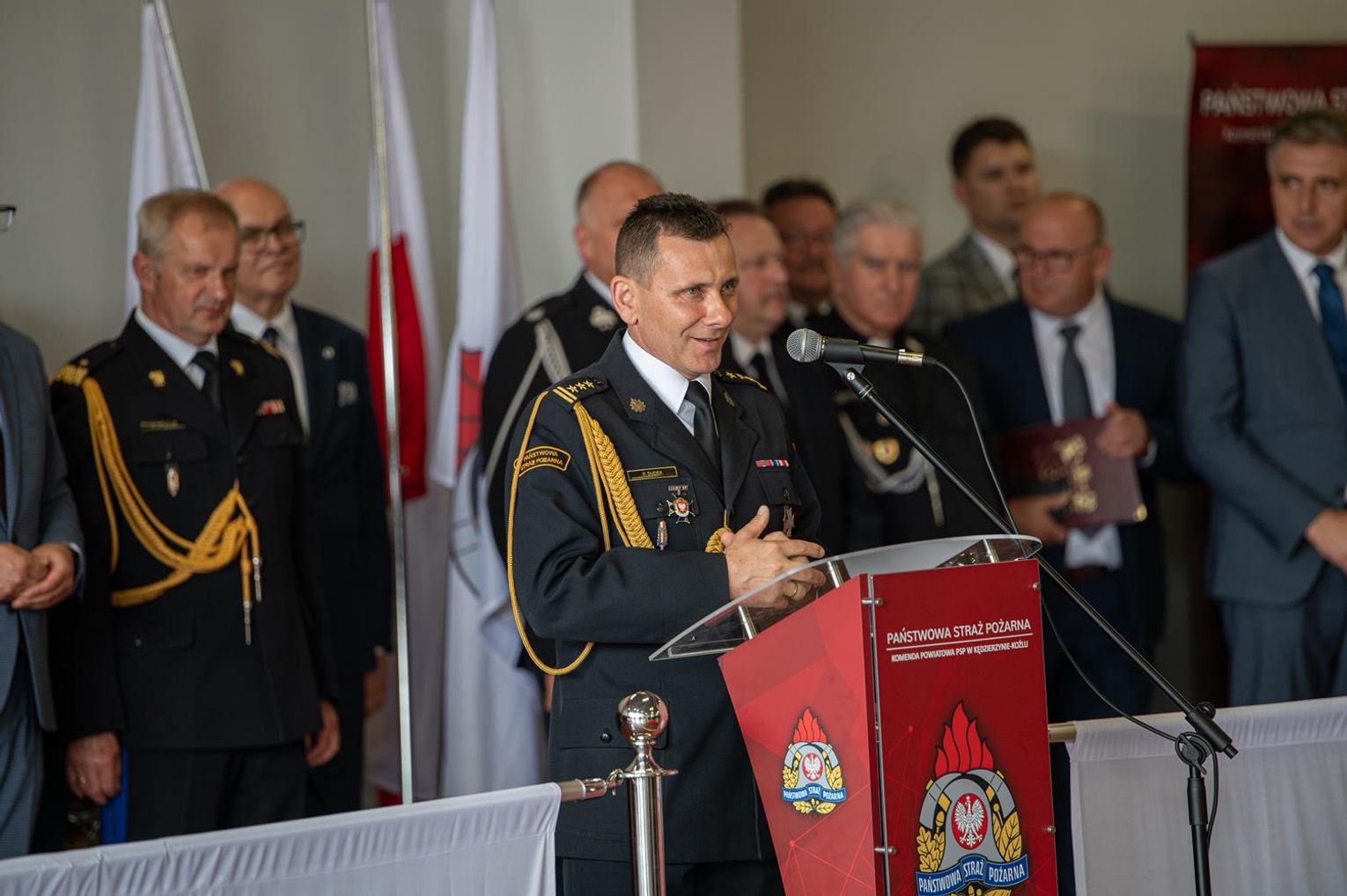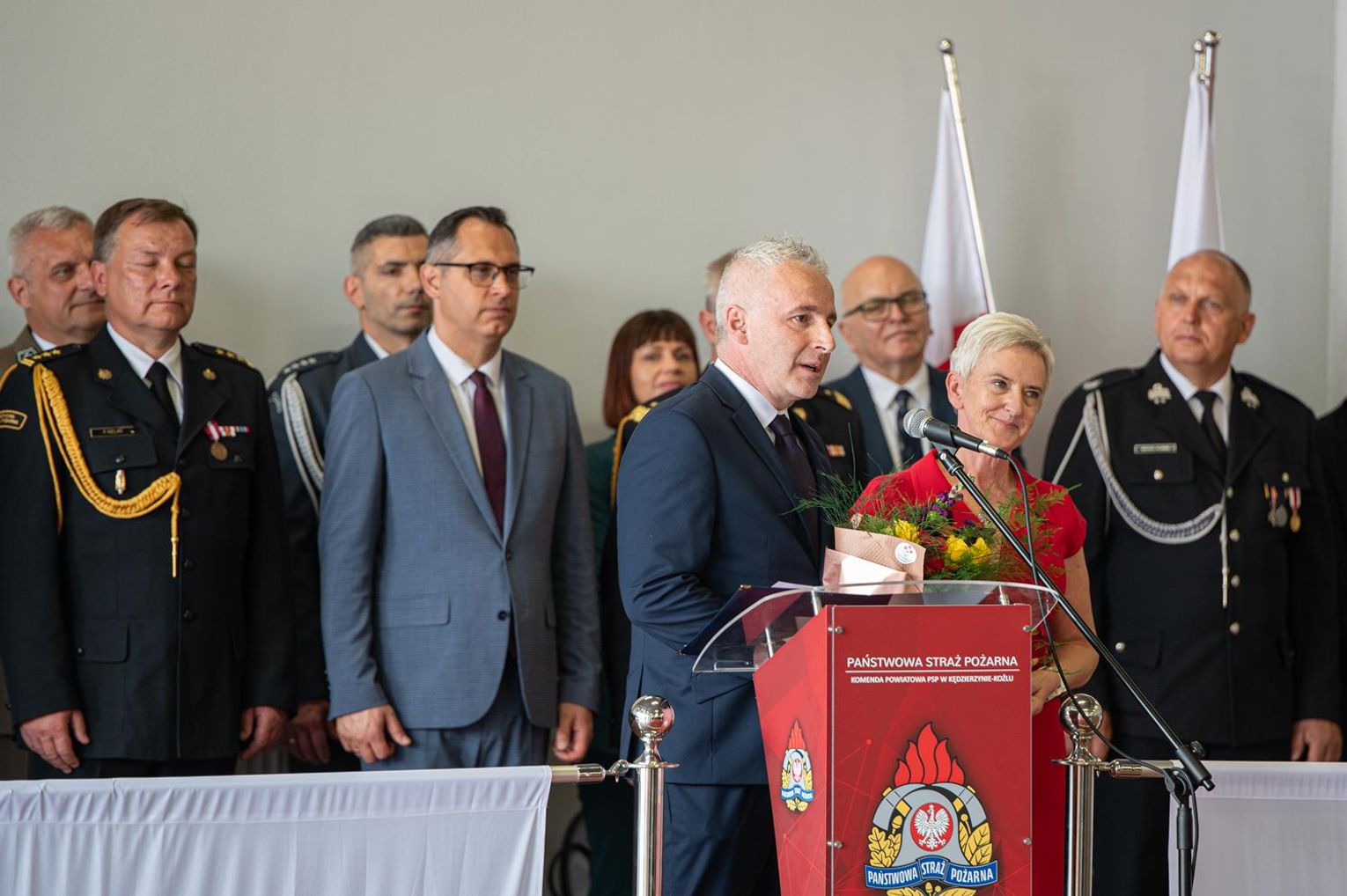 W trakcie uroczystości zaprzysiężony został także nowy Komendant Powiatowy Państwowej Straży Pożarnej w Kędzierzynie-Koźlu mł. bryg. Szymon Jędrzejas.
