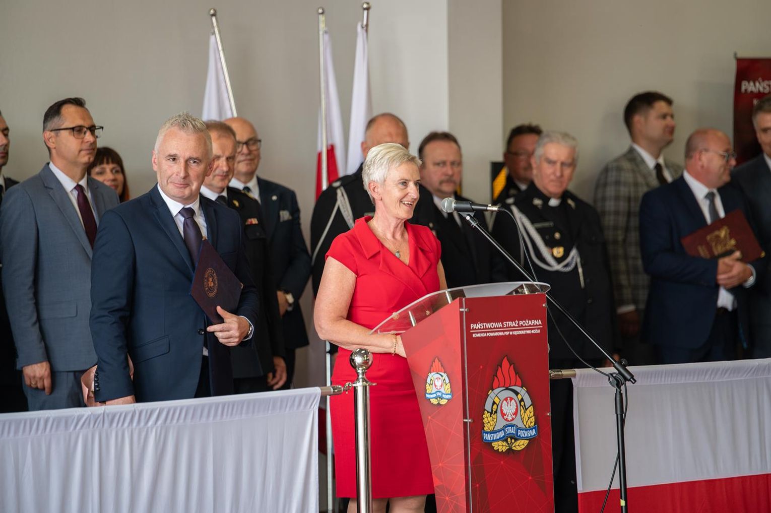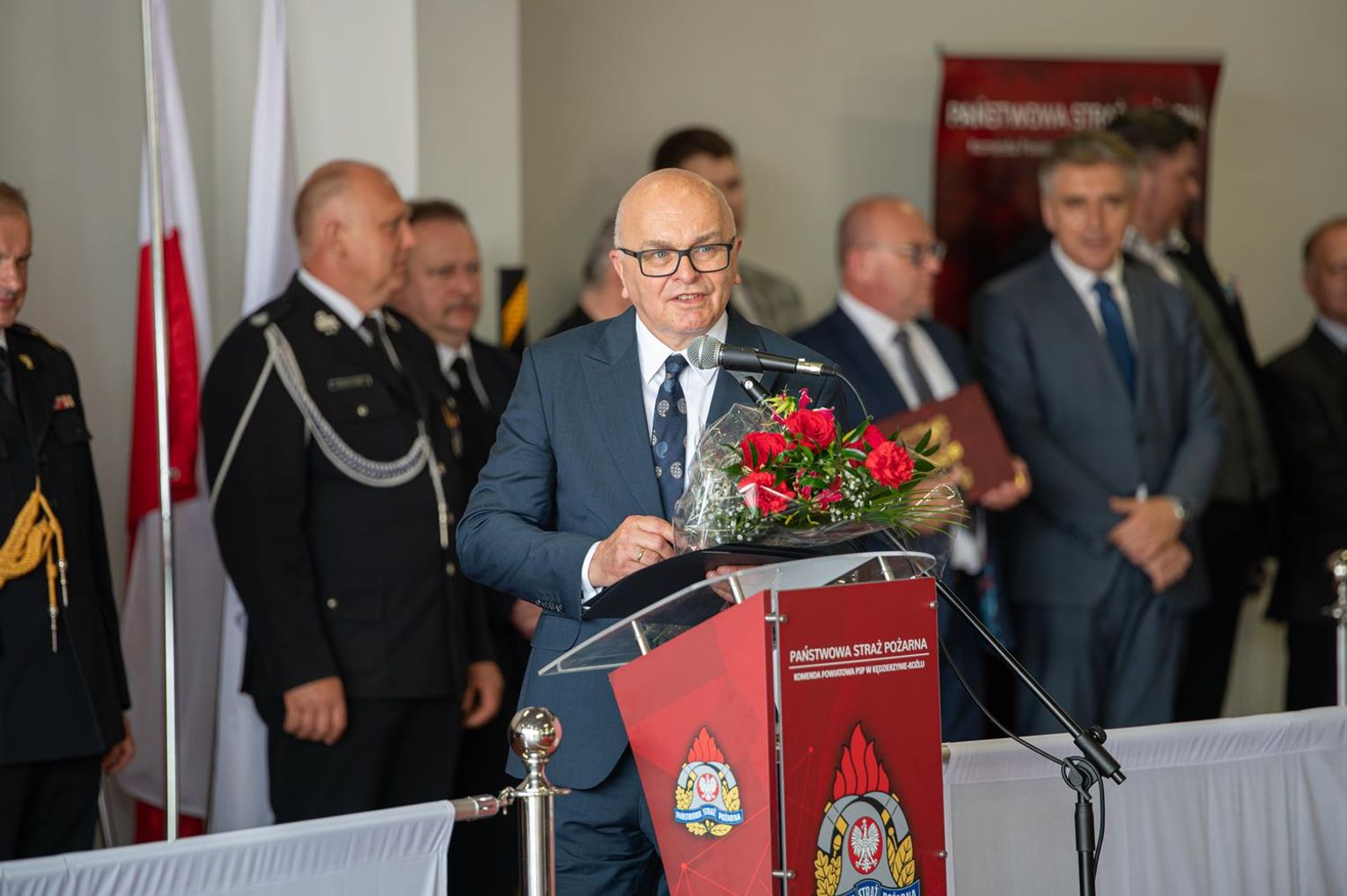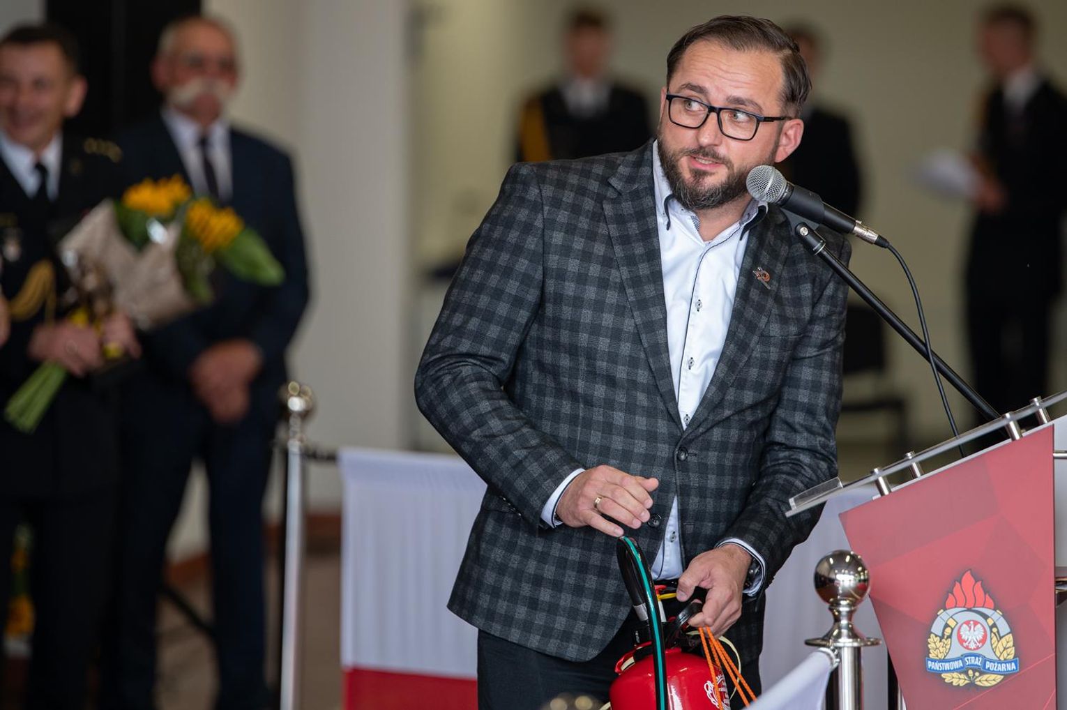 W trakcie uroczystości zaprzysiężony został także nowy Komendant Powiatowy Państwowej Straży Pożarnej w Kędzierzynie-Koźlu mł. bryg. Szymon Jędrzejas.