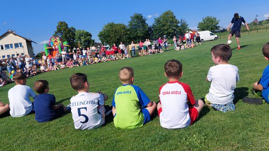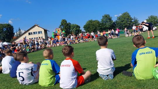 Festyn cieszy się coraz większym zainteresowaniem ze strony mieszkańców i sympatyków naszego klubu. Jak zwykle nie zawiedli nasi wspaniali rodzice, którzy przygotowali przepyszne słodkie poczęstunki. Wielki ukłon w ich stronę. Natomiast Artur Szczęsny zadbał o oprawę muzyczną wprowadzając uczestników w imprezowy nastrój. Starsze dzieci miały możliwość zabawy na 20 metrowym dmuchańcu a młodsze na mniejszej zjeżdżalni. I jak zawsze furorę robiła wata cukrowa. A to wszystko dzięki firmie Dmuchańce Jaś, której dziękujemy za obsługę imprezy. W trakcie trwania festynu młodzi adepci piłki mogli zobaczyć pokaz freestylu w wykonaniu Mariusza Ujazda pseudonim "Muchol" wielokrotnego mistrza Polski i świata w pojedynkach 1x1 czy 2x2. Na koniec było przeciąganie liny i mecz rodzice kontra dzieci. Rywalizacja przyniosła wiele emocji i uśmiechu na twarzach uczestników - przekazał nam Wojciech Prajs, prezes RTS Odra Koźle.