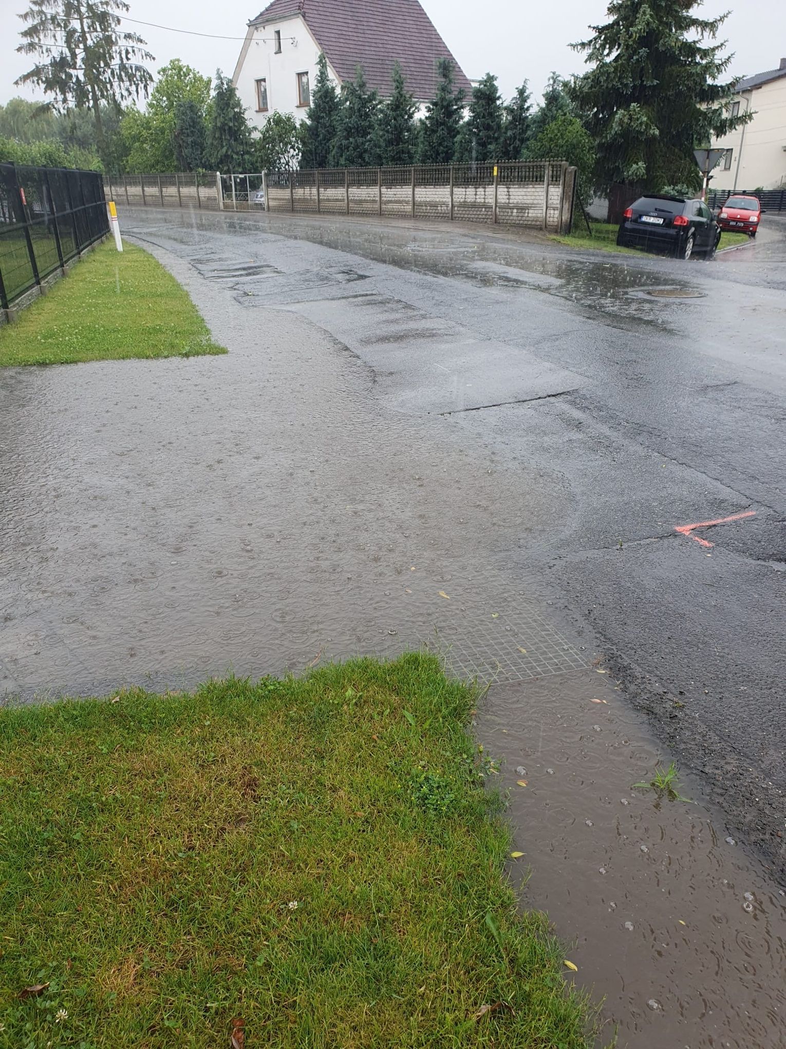 - Wpusty kanalizacji burzowej są położone wyżej niż należy i deszczówka regularnie zalewa moją posesję. Automat od naszej bramy wjazdowej jest wiecznie podtapiany przez spływające do nas wody opadowe. O dziurach w drodze na ulicy Głównej nawet nie wspomnę. Pozaznaczali je tylko farbą i na tym się skończyło. Ja tylko wiecznie słyszę, że brakuje na to pieniędzy - mówi Grażyna Schwarz z którą rozmawiamy 12 czerwca.