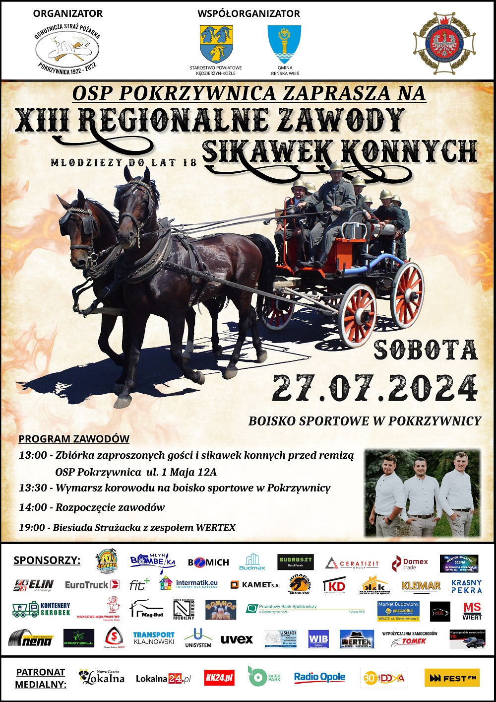 Impreza, w której wystartują Młodzieżowe Drużyny Pożarnicze, rozpocznie się o godz. 13 zbiórką uczestników przed remizą OSP Pokrzywnica. Stamtąd korowód wyruszy na boisko , gdzie o godz. 14 rozpocznie się rywalizacja w różnych konkurencjach sprawnościowych. Wydarzenie zakończy się wieczorem biesiadą z zespołem Wertex. Organizatorem wydarzenia jest Ochotnicza Straż Pożarna w Pokrzywnicy, a współorganizatorami: Urząd Gminy w Reńskiej Wsi oraz starostwo powiatowe w Kędzierzynie-Koźlu.