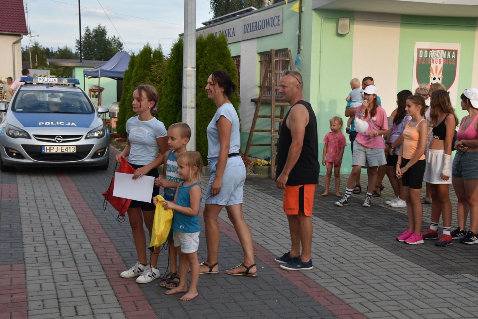 W 20-kilometrową trasę wyruszono z boiska LZS "Odzrznka" Dziergowice. Wiedzę na temat zasad ruchu drogowego sprawdzali kędzierzyńscy policjanci. Przy punkcie Nadleśnictwa Rudy Raciborskie określano różne gatunki grzybów. Z kolei pytania dotyczące parafii św. Anny w Dziergowicach przygotował dla uczestników rajdu jej proboszcz ks. Helmut Ekert. Na mecie drużyny zdobywały punkty za zadania przygotowane przez miejscową LZS.