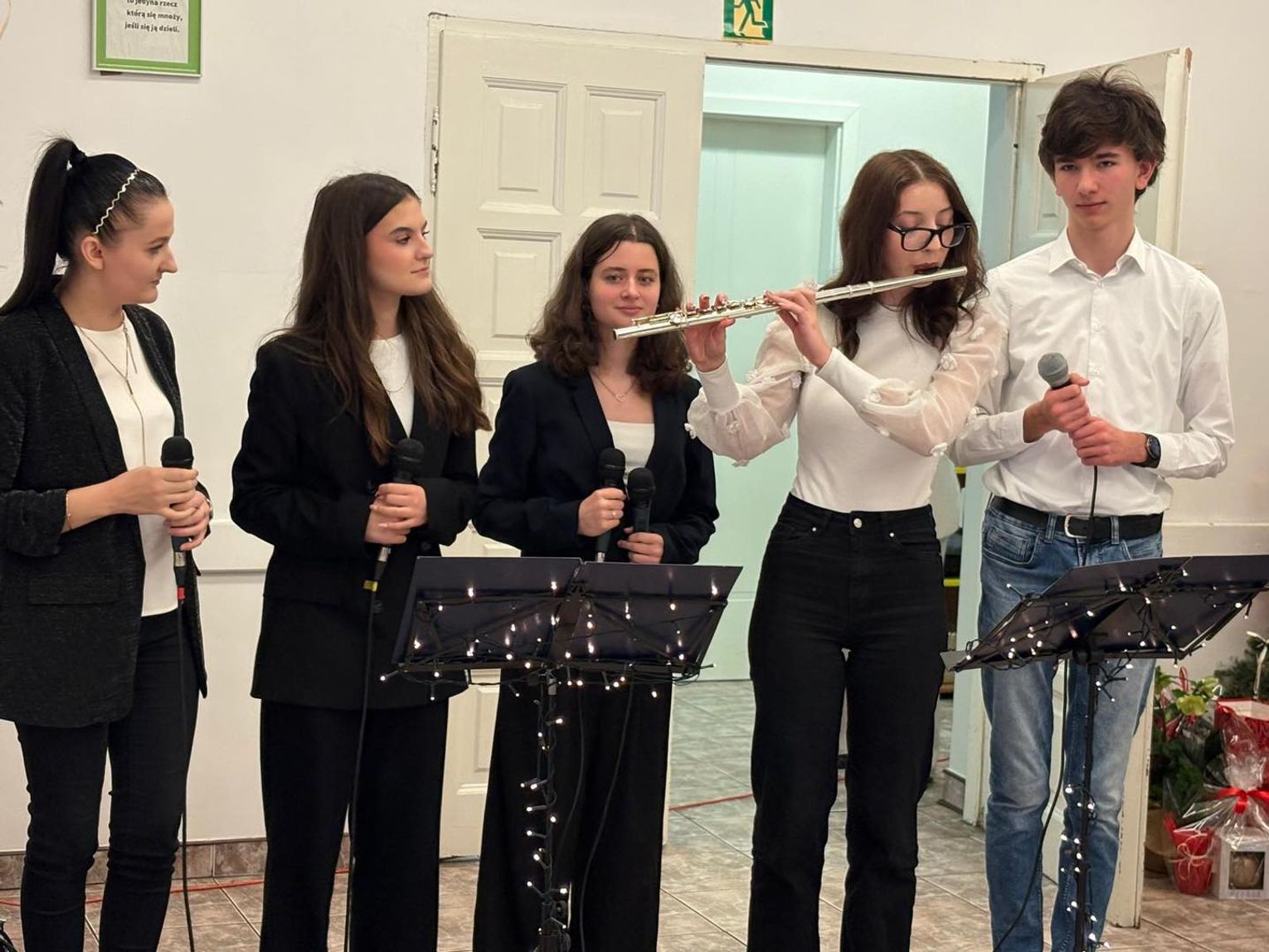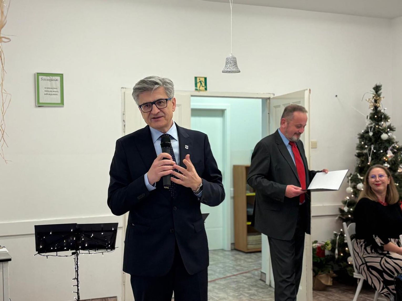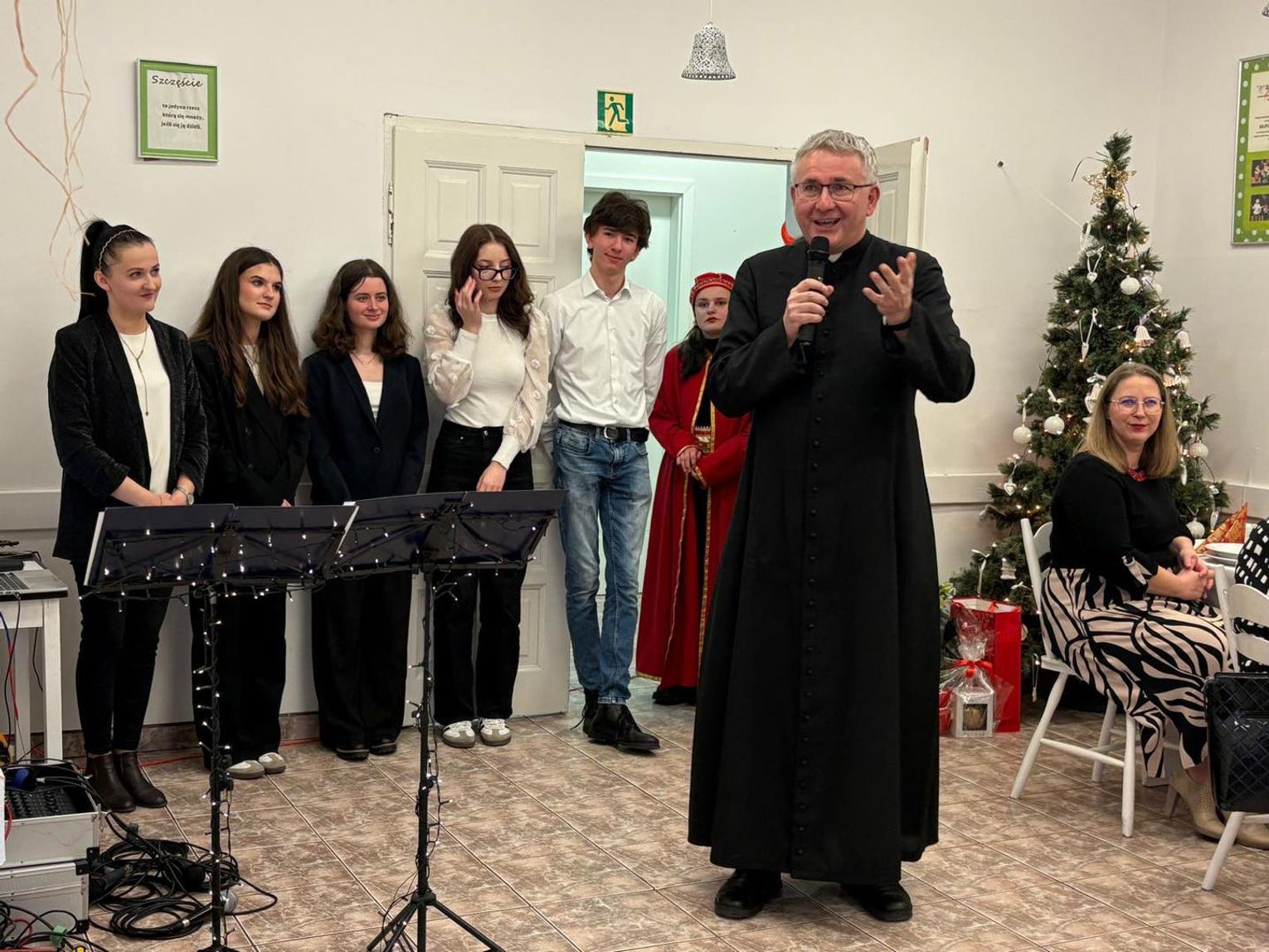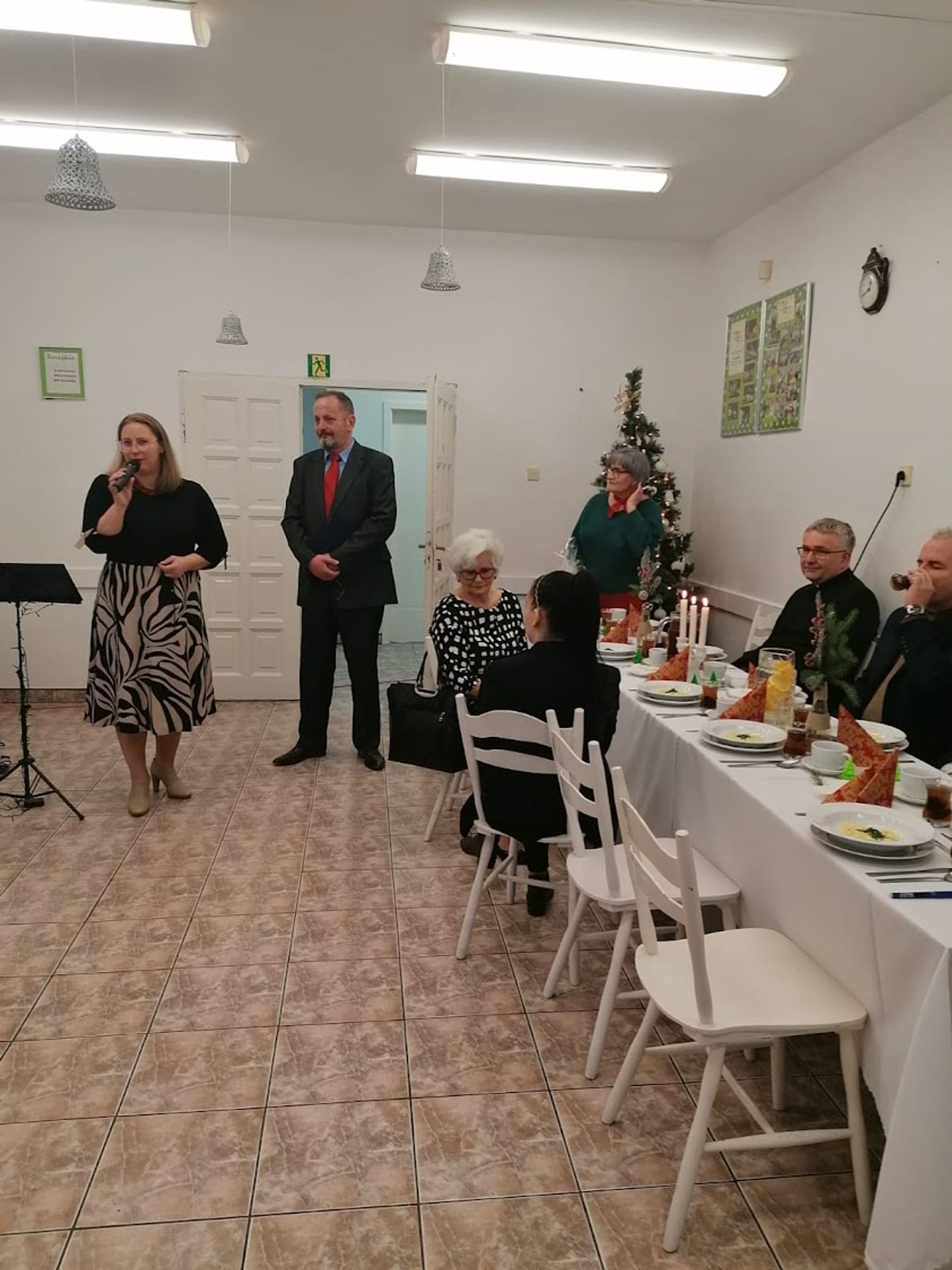 Święta Bożego Narodzenia to najbardziej rodzinne i wyczekiwane święta w polskiej tradycji. I w naszej Rodzinie „Magnolii” też na nie czekamy. To czas przepełniony magią wigilijnej nocy, czas przebaczania i miłości, okres wielu refleksji osobistych i pamięci o bliskich a zarazem czas wesołego kolędowania i nadziei płynącej ze świadomości, iż Bóg stał się człowiekiem „dzieląc z nami trudy i znoje tego świata”. Łamiąc się symbolicznie wigilijnym opłatkiem pamiętajmy, że człowiekowi do szczęścia potrzebny jest tylko drugi człowiek. Dlatego tak ważne jest to co wspólnie razem tworzymy, czyli naszą rodzinę „Magnolii”. Cieszymy się bardzo, iż w tym szczególnym dniu byli z nami nasi goście i przyjaciele: Zastępca Prezydenta Miasta Kędzierzyn-Koźle Pan Krzysztof Wołynkiewicz, Przewodniczący Rady Miasta Pan Ireneusz Wiśniewski, Przewodnicząca Komisji Spraw Społecznych Pani Ewa Odulińska, Przewodniczący Komisji Edukacji, Kultury i Sportu Rady Miasta – Andrzej Kopacki, Zastepca Dyrektora Miejskiego Ośrodka Pomocy w Kędzierzynie-Koźlu Pani Jolanta Goliat, Marek Biernat -proboszcz z Parafii. św. Zygmunta i św. Jadwigi Śląskiej i Przewodnicząca Zarządu Polskiego Związku Emerytów Rencistów i Inwalidów – Oddział Rejonowy Koźle Pani Maria Jakubowska.