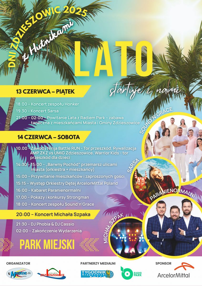 Na scenie Zdzieszowic wystąpią dwie popularne gwiazdy polskiej muzyki oraz jeden kabaret. Występ zdzieszowickiej publiczności uświetni charyzmatyczna wokalistka Sarsa, znana z hitów „Naucz mnie” i „Zapomnij mi”. Kolejną gwiazdą, która zawita do Zdzieszowic, będzie Michał Szpak – artysta o niezwykłej scenicznej osobowości i charakterystycznym głosie, który rozbłyśnie przebojami takimi jak „Jesteś bohaterem” czy „Color Of Your Life”. Na koniec, o dawkę humoru zadba kabaret Paranienormalni, gwarantując świetną zabawę i uśmiech na twarzy każdego.