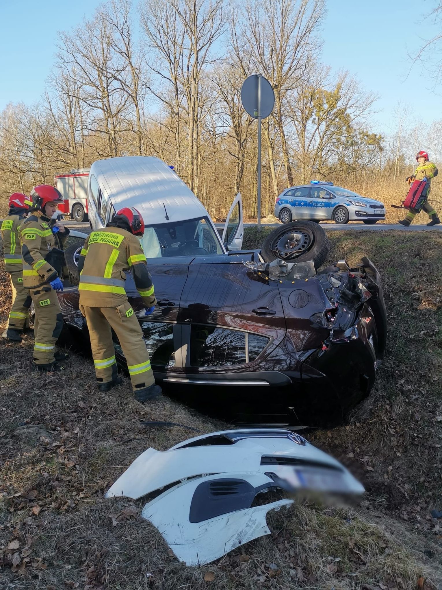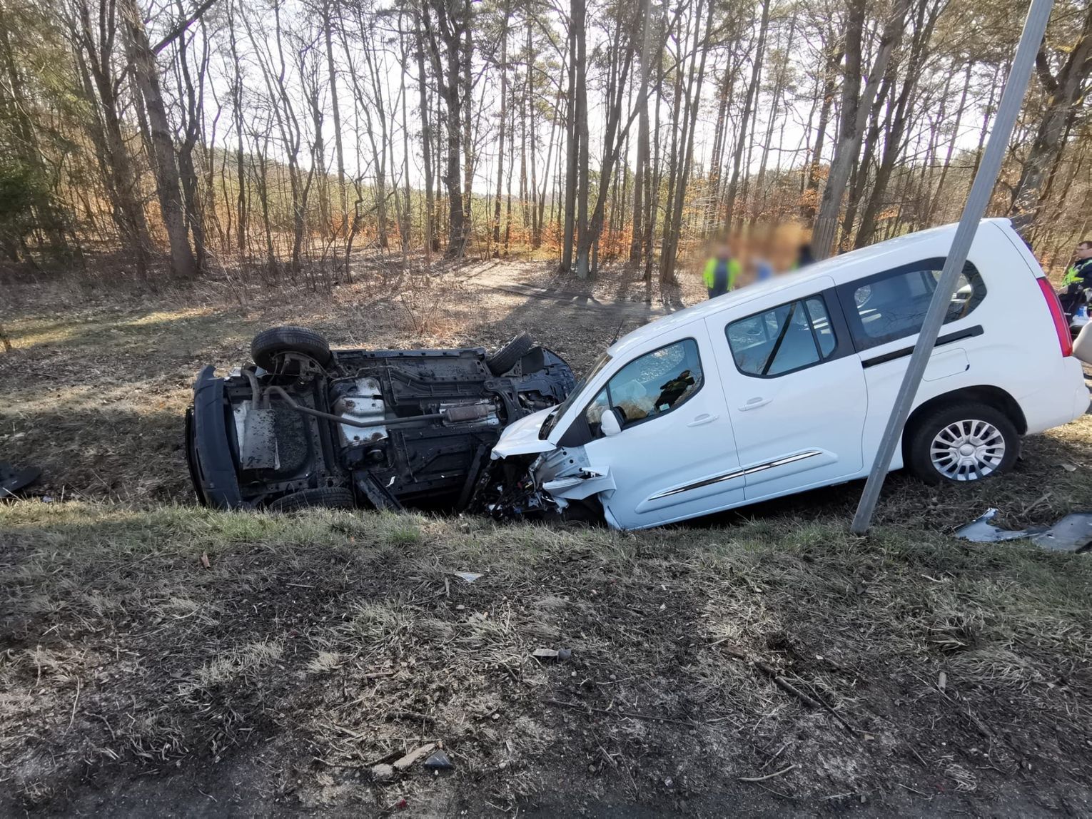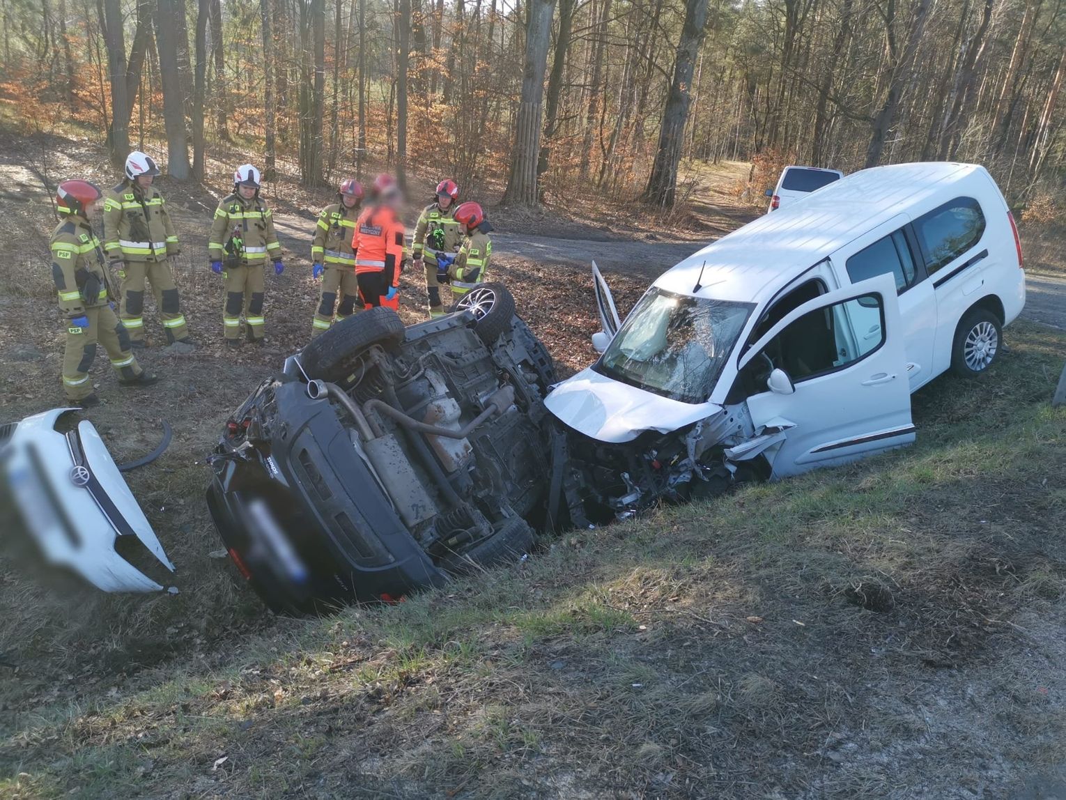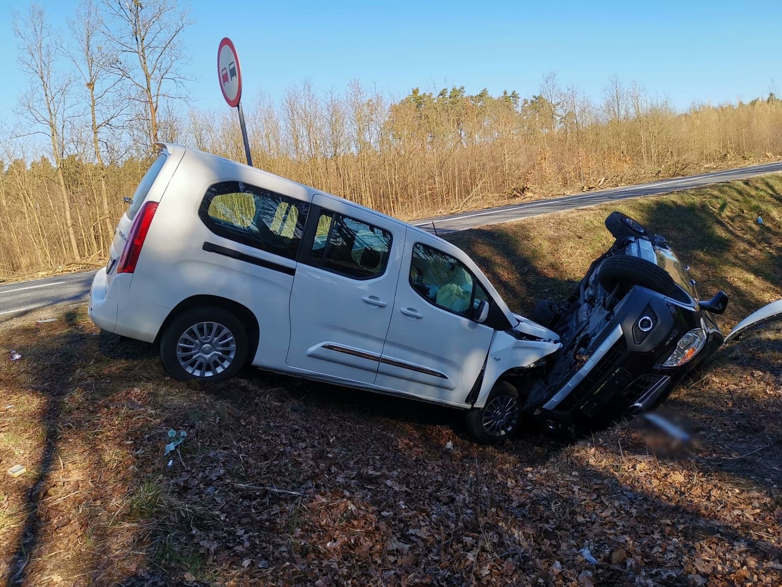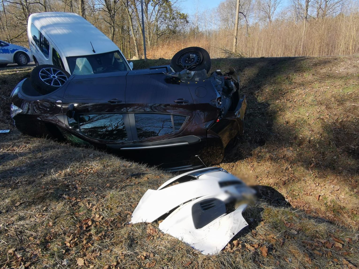 Pracujący na miejscu zdarzenia policjanci ustalili, że kierujący pojazdem dostawczym marki toyota w wyniku niezachowania bezpiecznej odległości od pojazdu poprzedzającego najechał na tył pojazdu osobowego marki Opel, którego kierowca zamierzał skręcić. W wyniku siły zderzenia się obydwa pojazdy zjechały z jezdni do rowu, natomiast osobowy opel dodatkowo dachował.