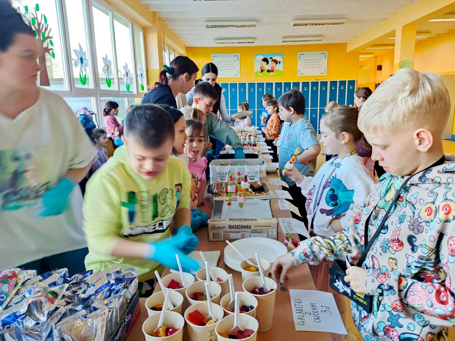 Od samego rana atmosfera była wyjątkowa – korytarze wypełniały się zapachami domowych wypieków i potraw, a uczniowie z zaangażowaniem przygotowywali stoiska, aby zaoferować społeczności szkolnej swoje kulinarne dzieła.