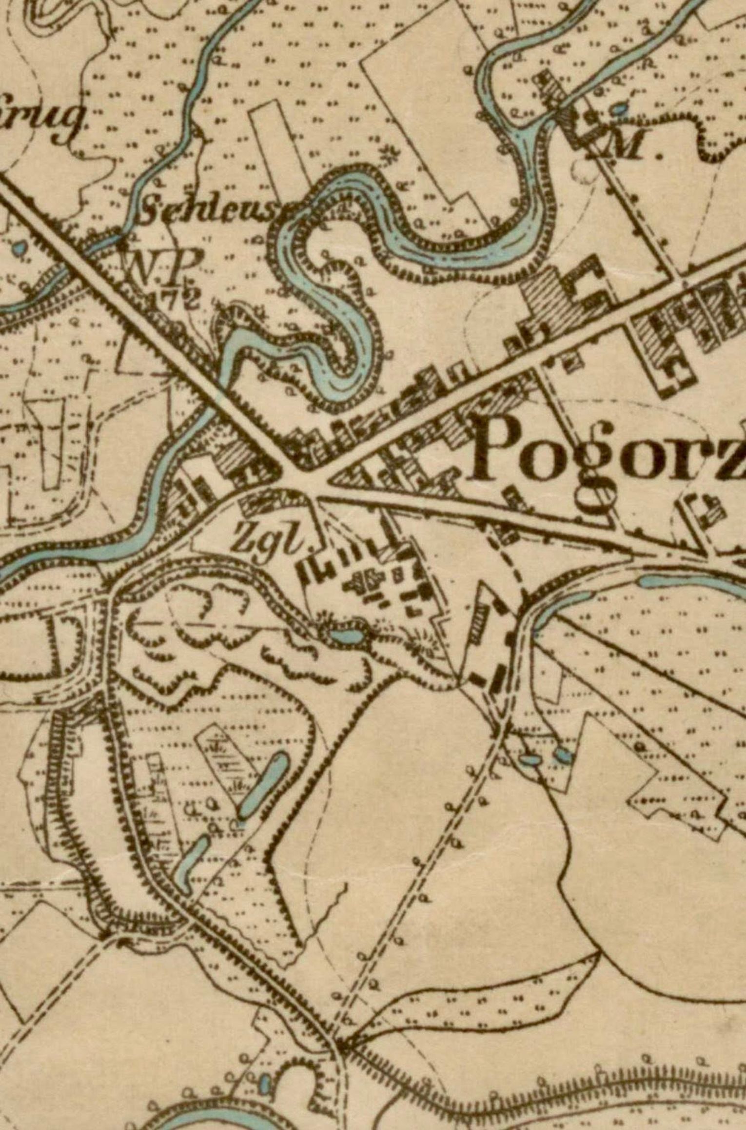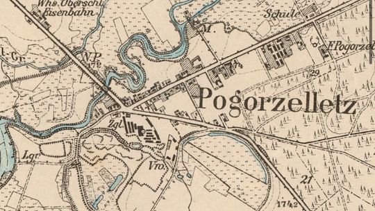 „Już w I połowie XIX wieku czynna była na Pogorzelcu cegielnia. W 1855 r. cegielnia ta przeszła w posiadanie dominium ksiecia von Hohenlohe-Oehringen i pod zarządem nowego właściciela, pozostała aż do 1945 roku. Nowy właściciel cegielnię znacznie rozbudował. Od 1864 r. cegielnia wyposażona była w podwójny piec konstrukcji Kasslera. Rocznie wytwarzano tu 35 000 szt. cegły murarskiej, 15 000 szt. klinkierówki, 150 000 szt. cegły dachowej oraz 250 000 mb. rur drenowych”.