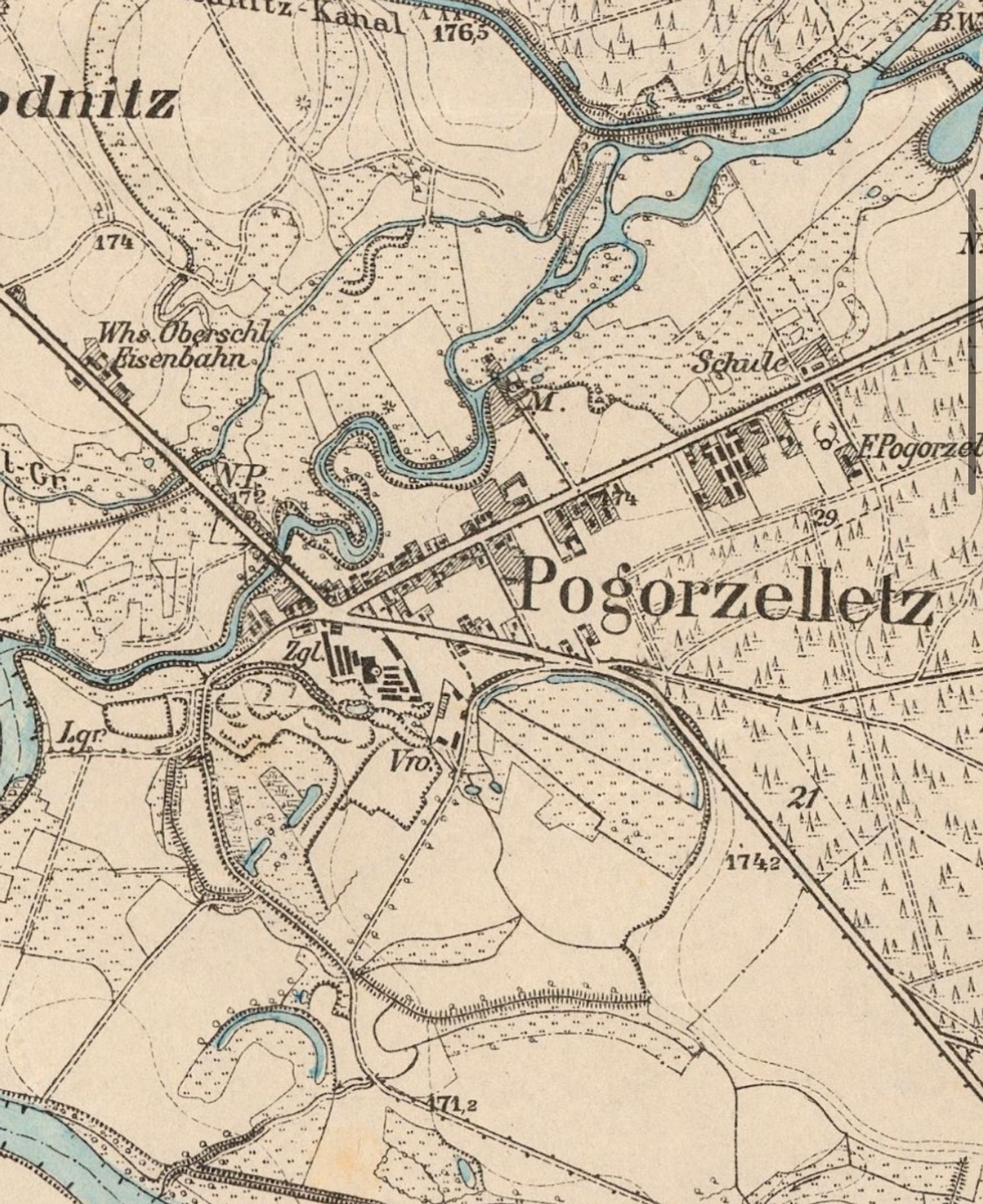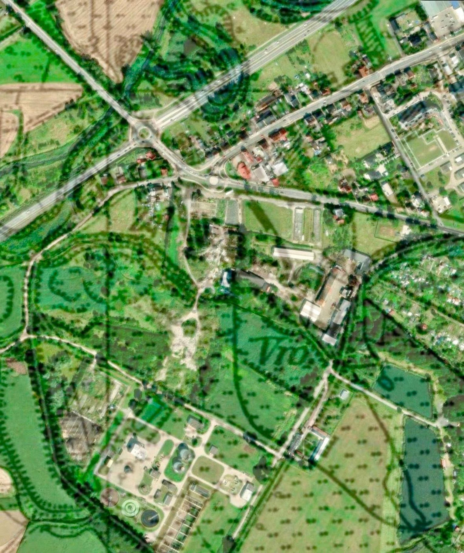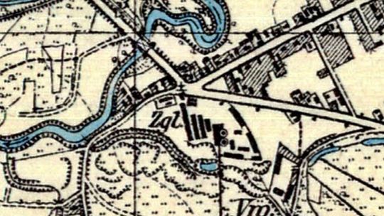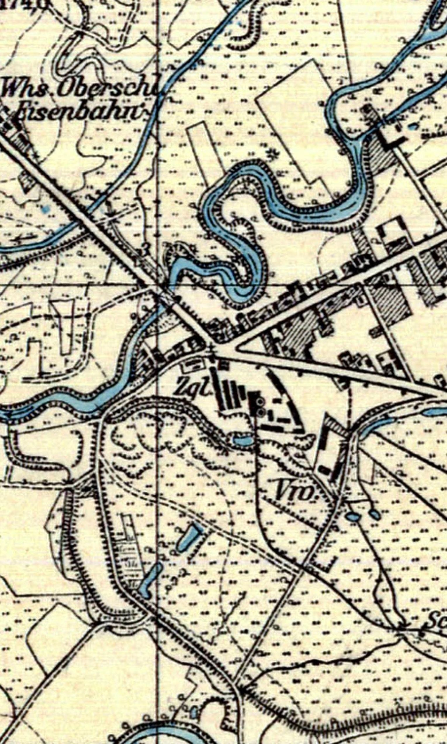 Cegielnia znajdowała się przy dzisiejszej ulicy Gliwickiej i widać ją doskonale na krótkim poniższym materiale filmowym, który powstał z nałożenia archiwalnej mapy na aktualną mapę z 2025 roku.