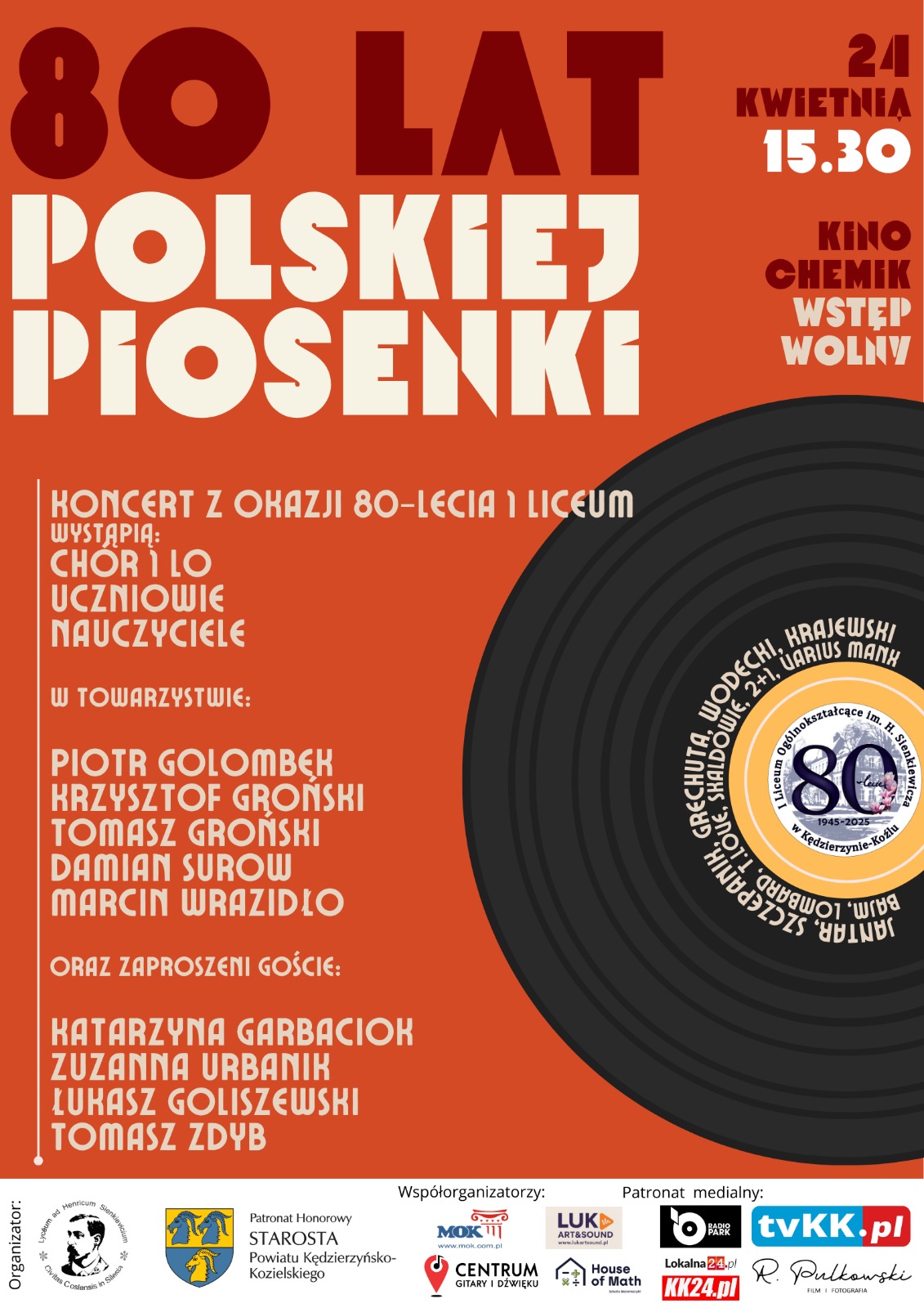 - Konkretnie 24 kwietnia o godzinie 15.30 rozpoczynamy to wydarzenie w kinie „Chemik” pod nazwą „80 lat polskiej piosenki”, co jednoznacznie nawiązuje też do jubileuszu kozielskiego liceum. Na deskach domu kultury wystąpią członkowie naszego szkolnego chóru, którego nazwę przedstawimy właśnie w dniu koncertu. Poza uczennicami i uczniami, wydarzenie uświetnią nasi absolwenci, nauczyciele. Będą również znani instrumentaliści, co gwarantuje niezwykłe doznania artystyczne. Wstęp wolny. Wszystkich gorąco zapraszamy – dodaje Wojciech Czapla.