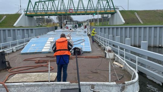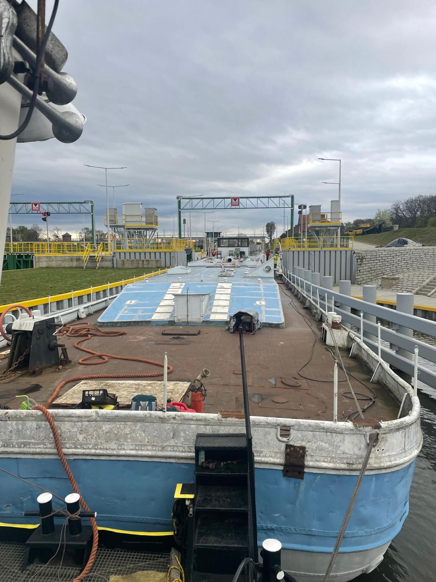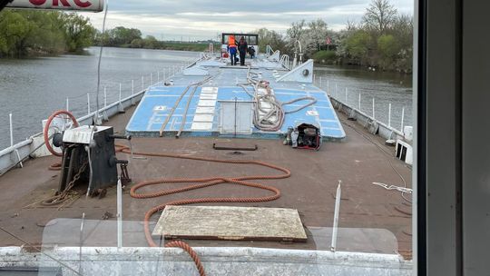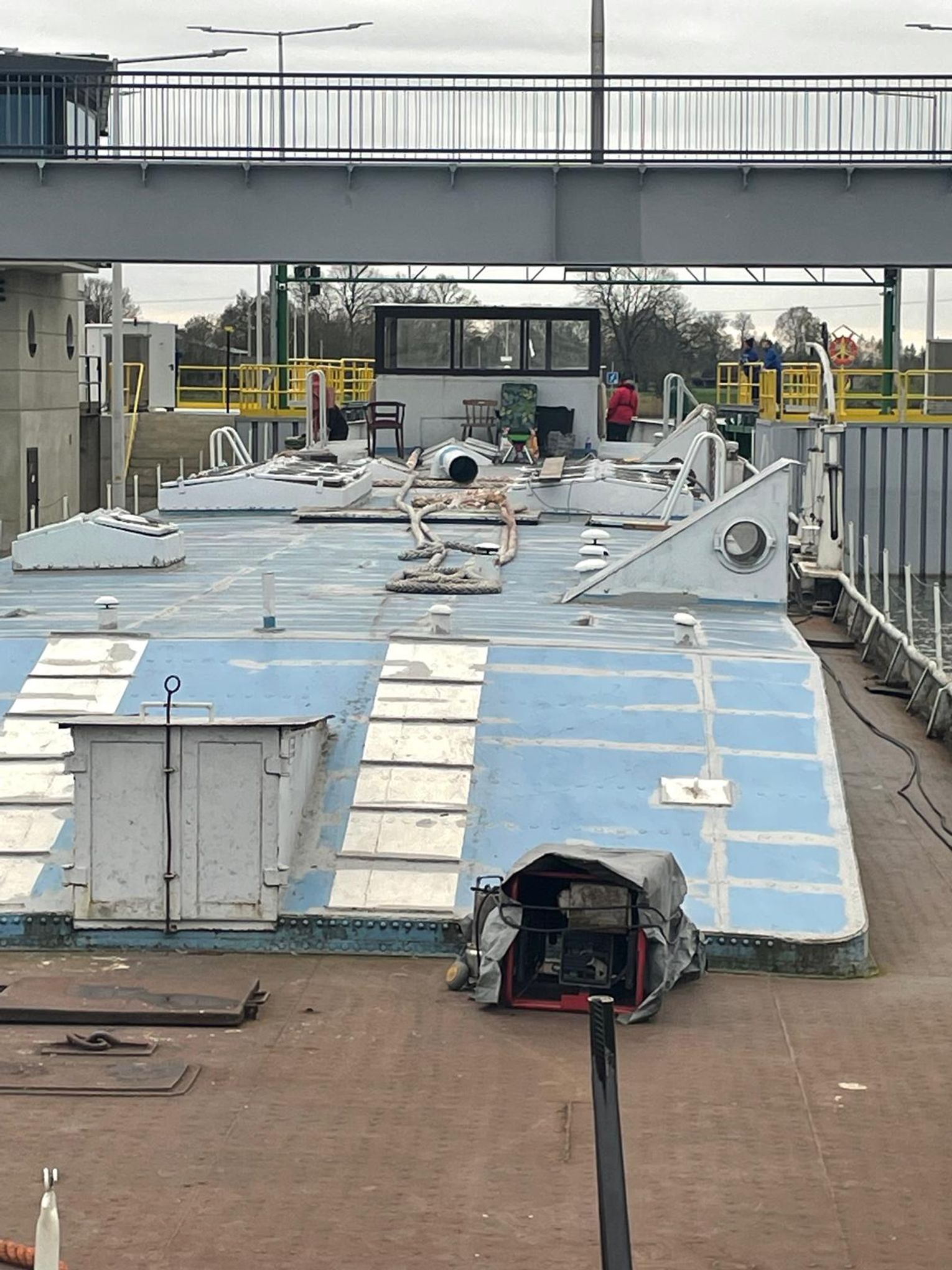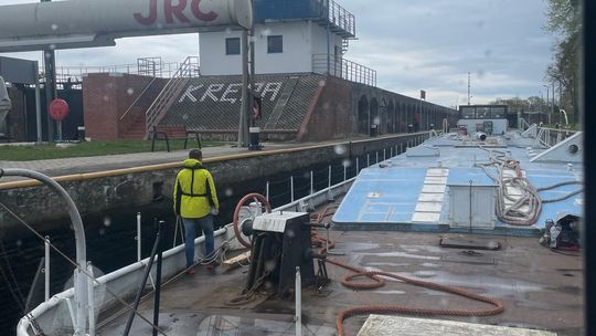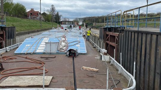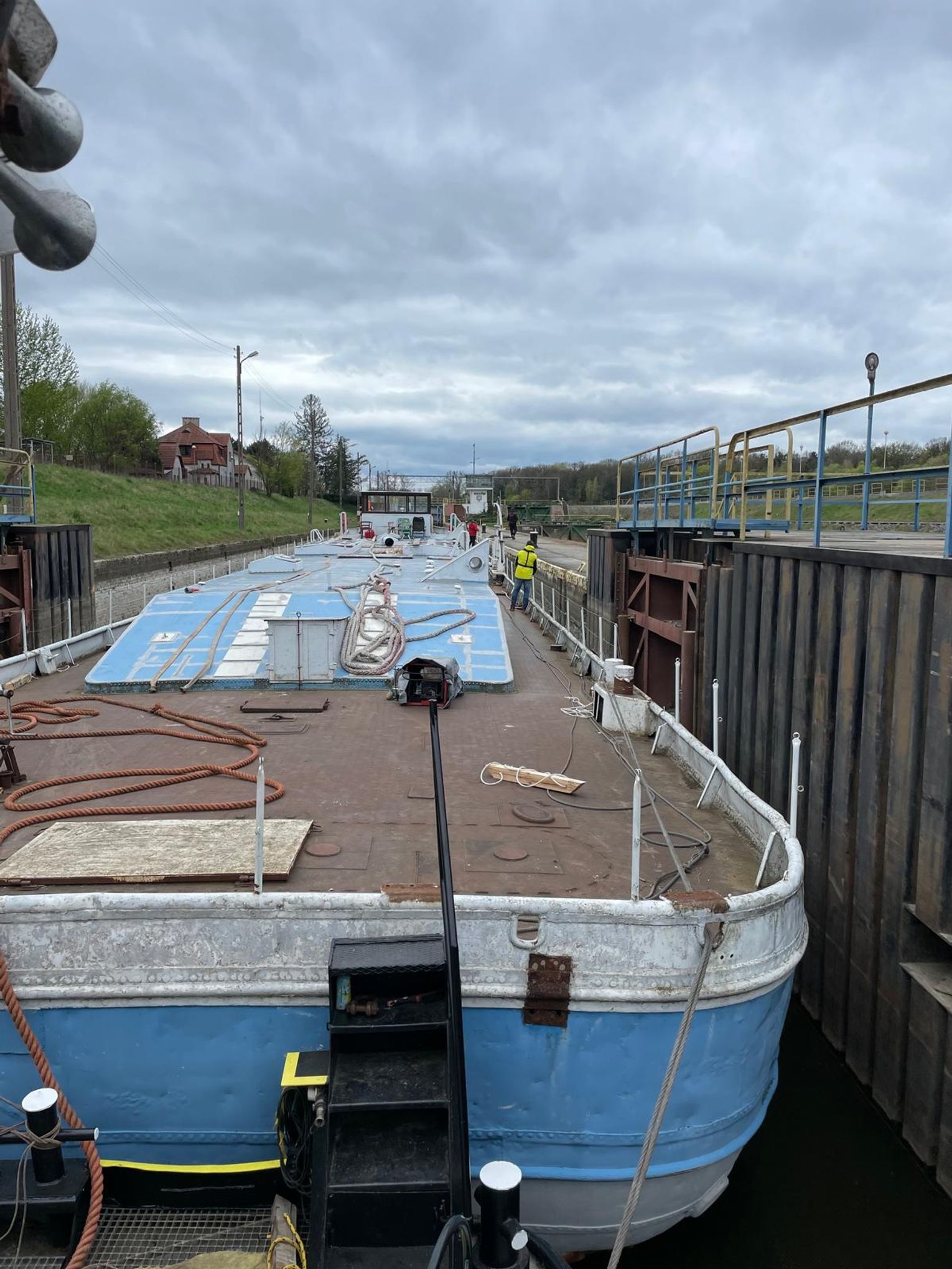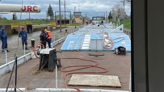 - Armator z Krapkowic o nazwie „Arka” udostępnił nieodpłatnie pchacz oraz dwóch członków załogi. Natomiast zgoda Urzędu Żeglugi Śródlądowej wydana na przewóz specjalny jasno określa, że tych członków załogi musi być trzech. No i jestem tym trzecim - powiedział „Lokalnej” kapitan żeglugi śródlądowej Mariusz Przybylski, który prowadzi zestaw płynący do kozielskiej stoczni remontowej.