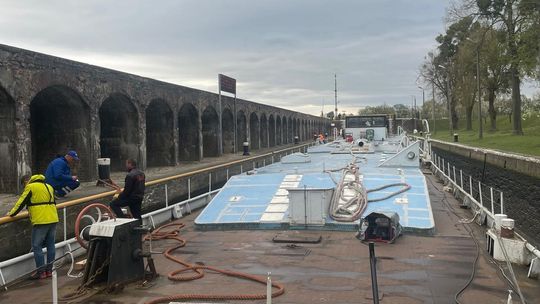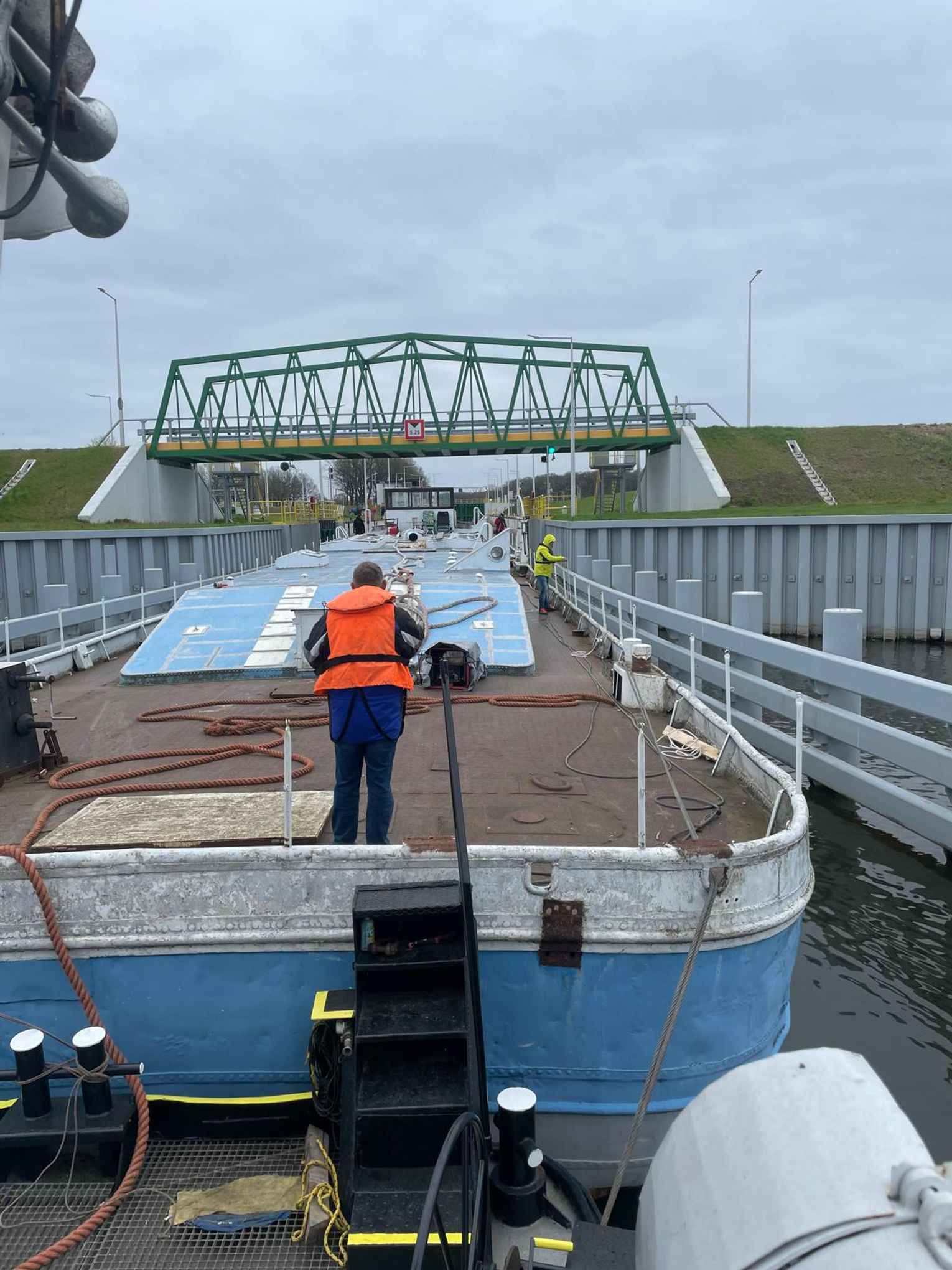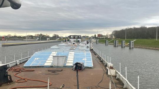 Barka transportowana jest Odrą z Opola do Kędzierzyna-Koźla za pomocą pchacza. Po drodze - licząca 75 metrów jednostka (barka ma długość 55 metrów z kolei pchacz 20 metrów) musiała pokonać 7 śluz na odcinku 53 kilometrów. Pod wieczór dopłynęła do celu.