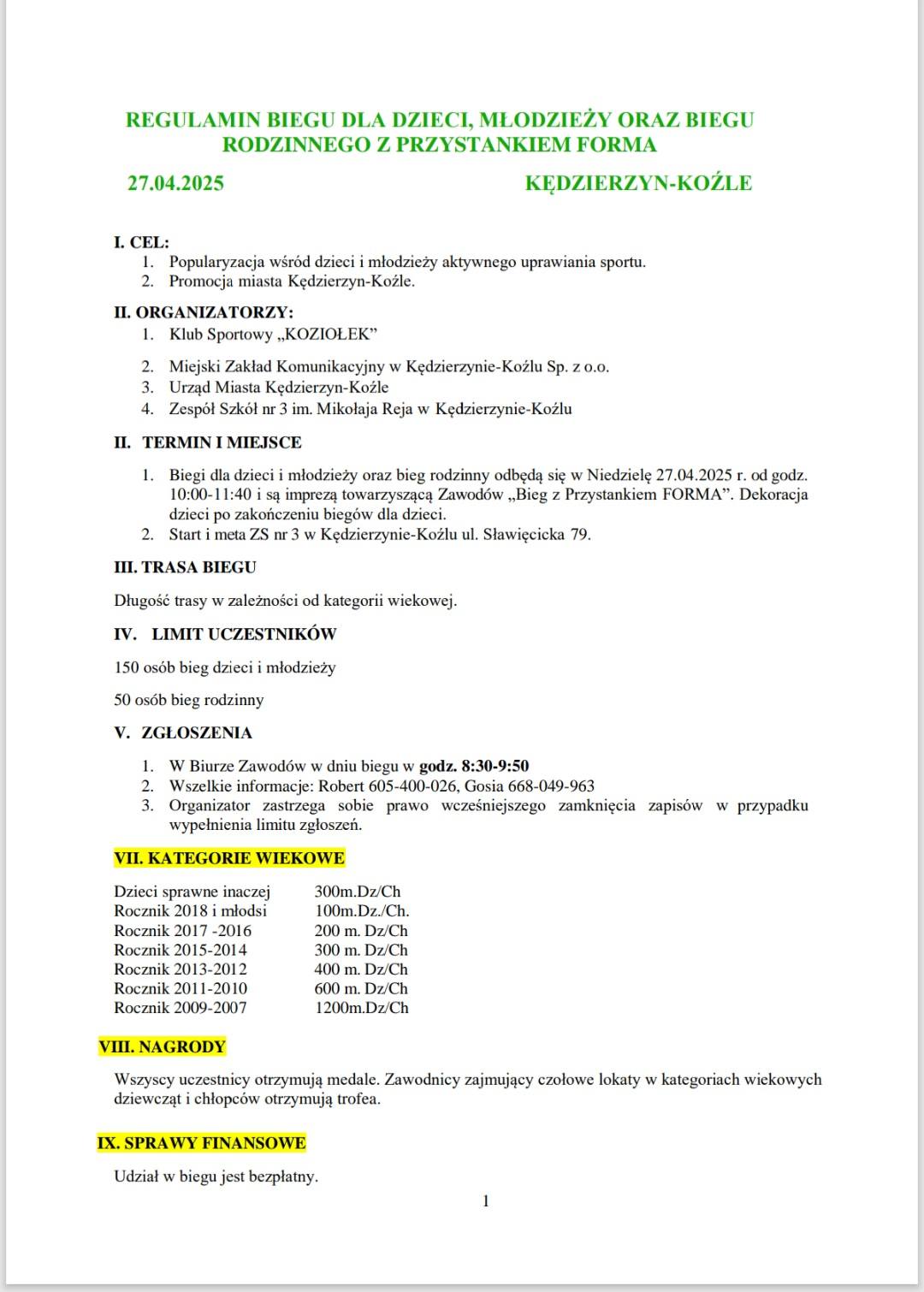 Kolejną imprezą z cyklu będzie "Mały, większy i największy - zostań maratończykiem", która odbędzie się 15 maja, a organizowany przez Stowarzyszenie Rodzin Zastępczych Dobra Rodzina oraz Fundację Odrzańskie Konsorcjum. Później dwa kolejne wydarzenia, towarzyszące imprezom szykowanym przez Miejski Ośrodek Sportu i Rekreacji, a będą to Bieg Koziołków 24 maja oraz Gaz System na piątkę! 21 września. Do końcowej klasyfikacji zliczane będą wyniki z trzech najlepszych startów. Regulamin poniżej i do pobrania.