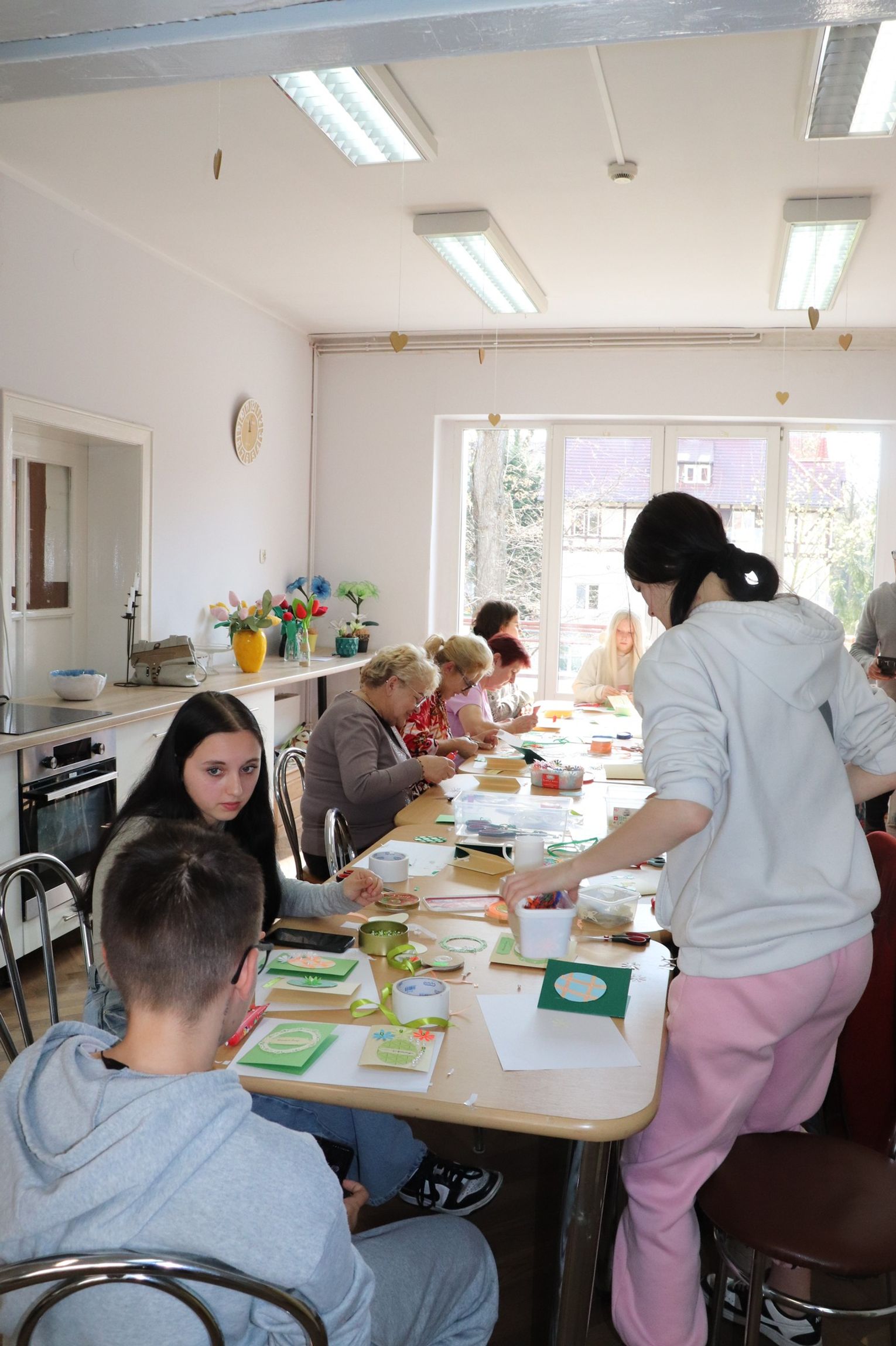 Wiadomo, że najlepsze życzenia to te składane osobiście przy stole, ale los rzuca nas w różne miejsca. Dlatego seniorzy "Magnolii" wraz z zaprzyjaźnioną młodzieżą i dziećmi z naszej lokalnej społeczności wzięli udział w zajęciach manualnych, podczas których tworzyli przepiękne kartki świąteczne, by w nich przekazać to czego nie mogą osobiście. Dziękujemy za wspólne chwile – czytamy na stronie DDP nr 2.