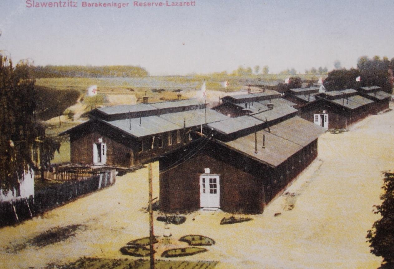 W czasie I wojny światowej przy sławięcickim szpitalu urządzono lazaret. Stanowiło go 21 drewnianych baraków. Najwięcej było ich przy dzisiejszej ulicy Świerkowej. Kilka stało też przy dzisiejszej ulicy Sławięcickiej, gdzie dziś znajduje się jedna z restauracji. Na kartkach z tego okresu można zobaczyć żołnierzy przebywających w miejscowości na leczeniu i rekonwalescencji. Na jednej z nich wojacy cesarza Wilhelma II pozują w eleganckich piżamach, trzymając tabliczki z żartobliwymi hasłami o przeciwnikach z frontu wschodniego. Częstym motywem kartek pocztowych były też miejsca użyteczności publicznej, jak szkoły, przedszkola, poczta czy dworzec kolejowy, który, jak na owe czasy, był bardzo reprezentatywny, a stojąca przed nim figura jelenia świadczyła o bogactwie tutejszych lasów.