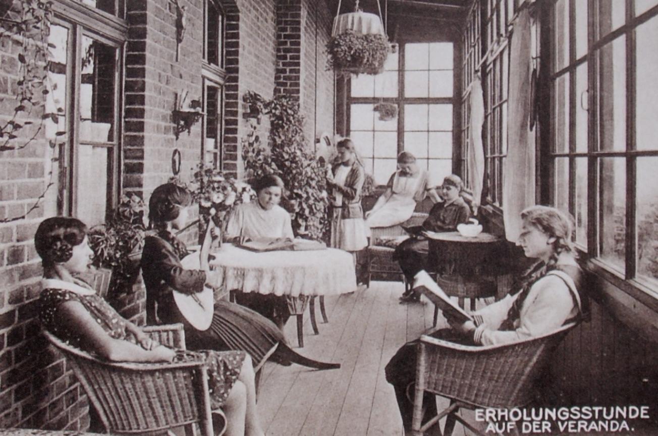 Poza pałacem i należącymi do rodziny książęcej włościami często zamieszczano na widokówkach miejscowy szpital. Kompleks składał się z kilku obiektów, których nazwy i umiejscowienie nierzadko mylili sami wydawcy kartek. Na zdjęciach prezentowano szpital, lecznicę i sanatorium, do którego przyjeżdżali kuracjusze nawet z Berlina. Ciekawostką były sporządzane w formie widokówek zdjęcia pacjentów z poszczególnych sal.