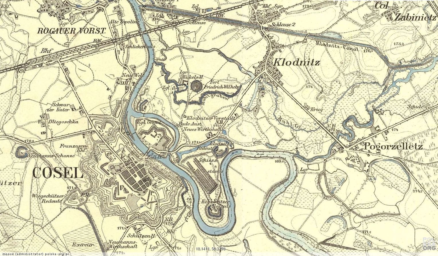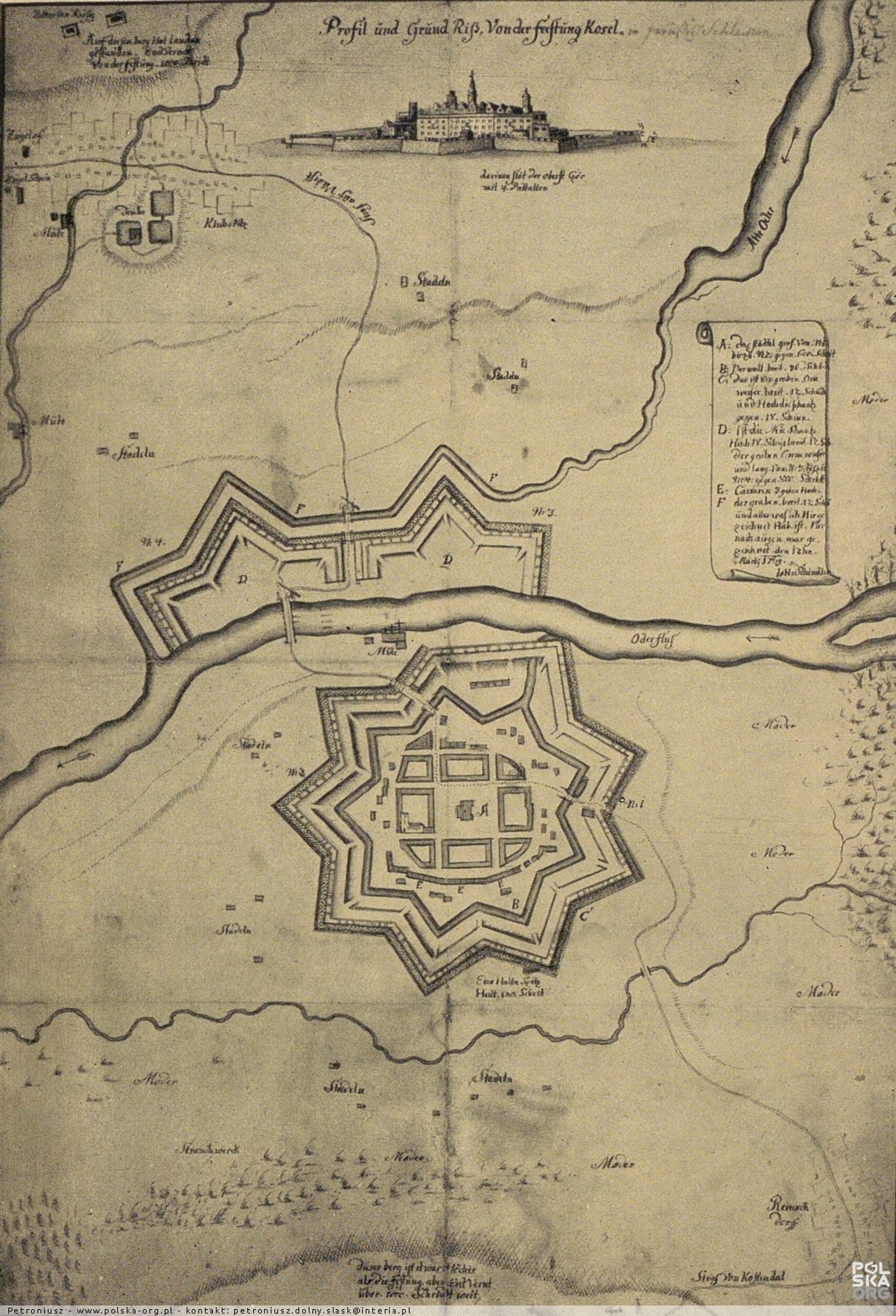 „Od początku swego istnienia miasto Koźle miało charakter strategiczny. W okresie średniowiecza leżało na granicy księstw piastowskich, a w późniejszym okresie stało się miastem, w pobliżu którego przecinały się granice mocarstw: austriackiego i pruskiego. Wcześniejsze mury, którymi otoczone było miasto, zostały rozebrane po podjęciu decyzji o budowie twierdzy. W pierwszej połowie XVII wieku miasto oszańcowano i otoczono fosą, zaś na początku wieku XVIII założono twierdzę o systemie kleszczowym i narysie dziewięcioramiennej gwiazdy” - czytamy w portalu Zabytek.pl.