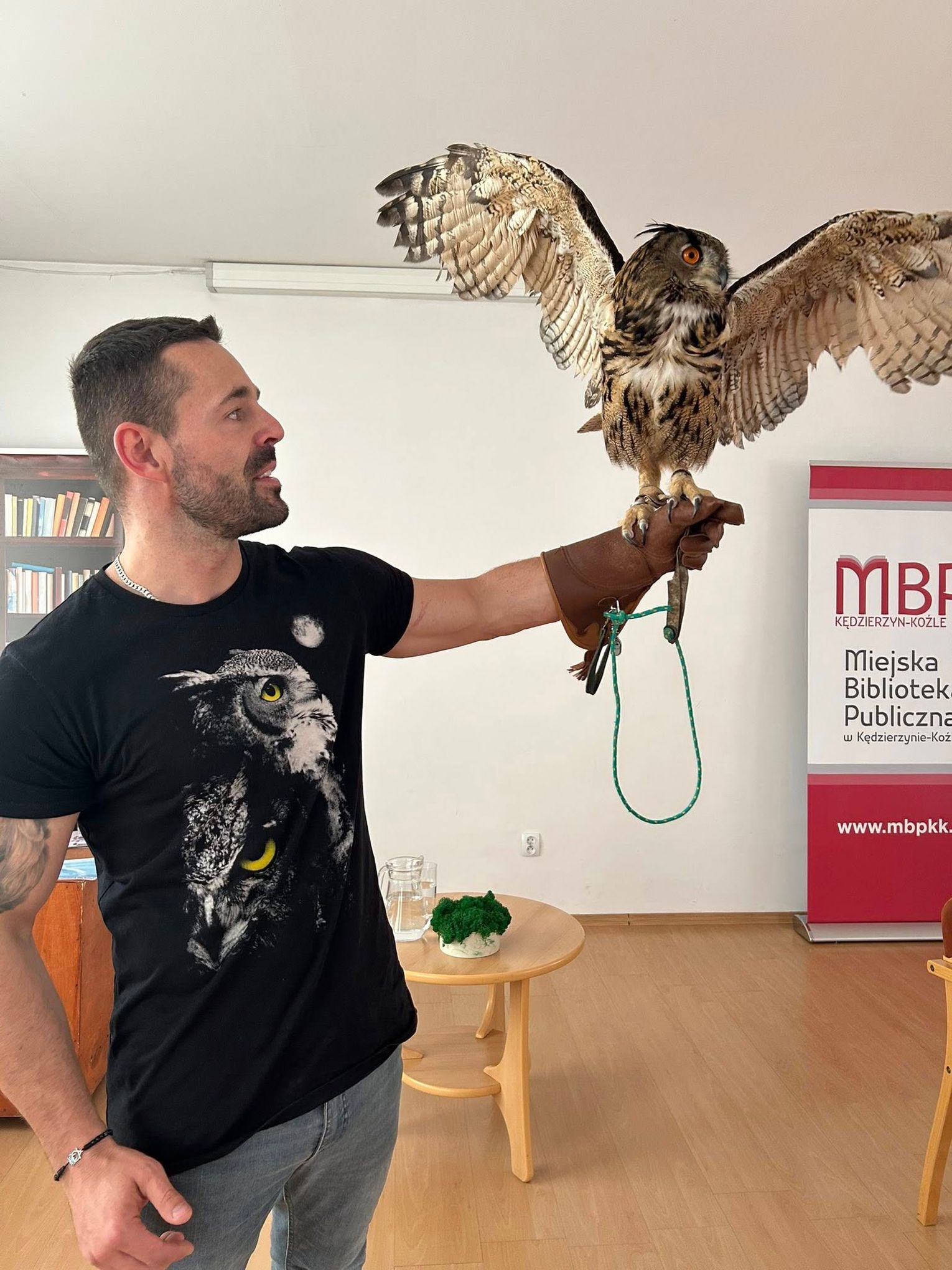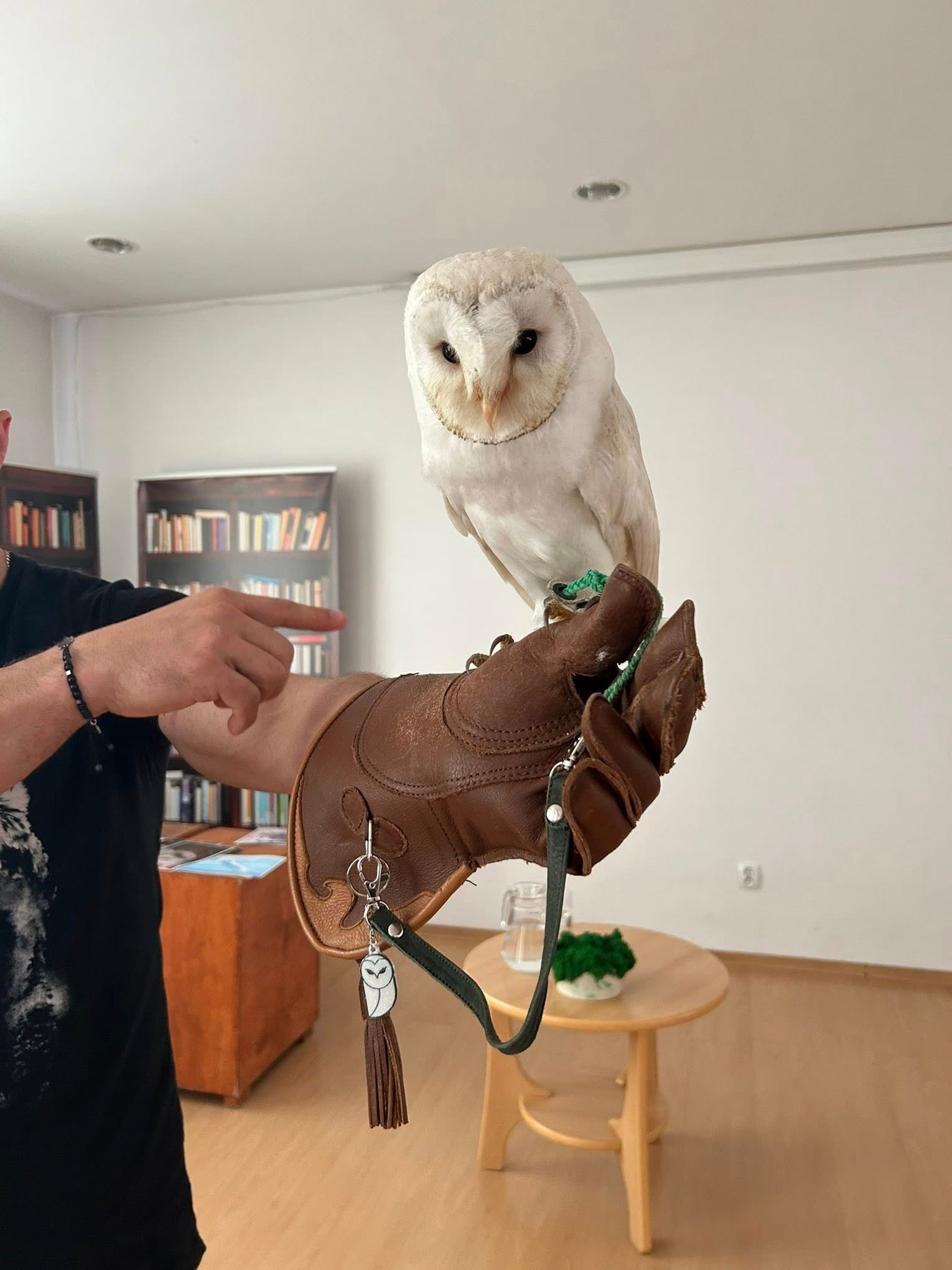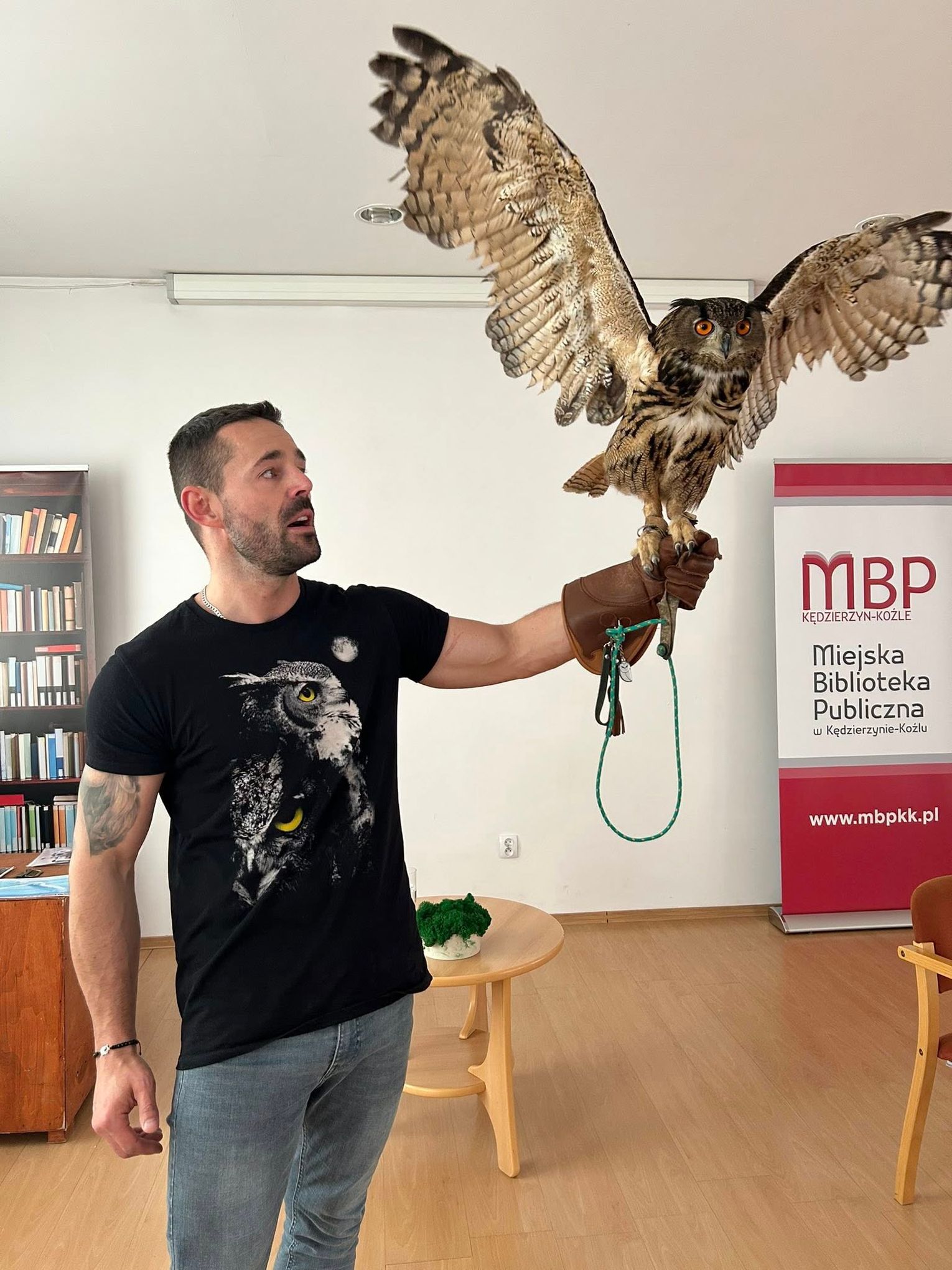 Dzięki "Skrzydlatej Ferajnie", goście MBP mieli niezwykłą okazję spotkać się z trzema gatunkami tych tajemniczych ptaków: majestatycznym puchaczem, delikatną białą płomykówką (uznawaną za najpiękniejszą sowę świata) oraz sową egzotyczną.