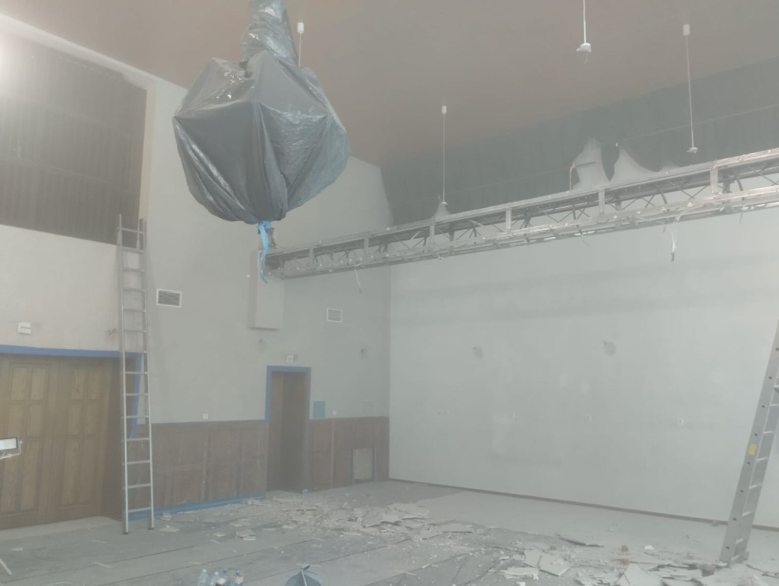 Do tego czasu sala pozostanie całkowicie niedostępna dla gości. Zakres modernizacji obejmuje cyklinowanie podłogi, malowanie ścian, odświeżenie całego wnętrza, demontaż starej konstrukcji oświetleniowej oraz położenie nowej wykładziny na scenie.