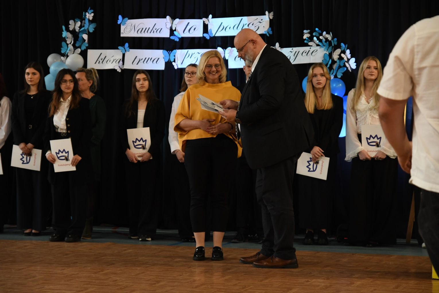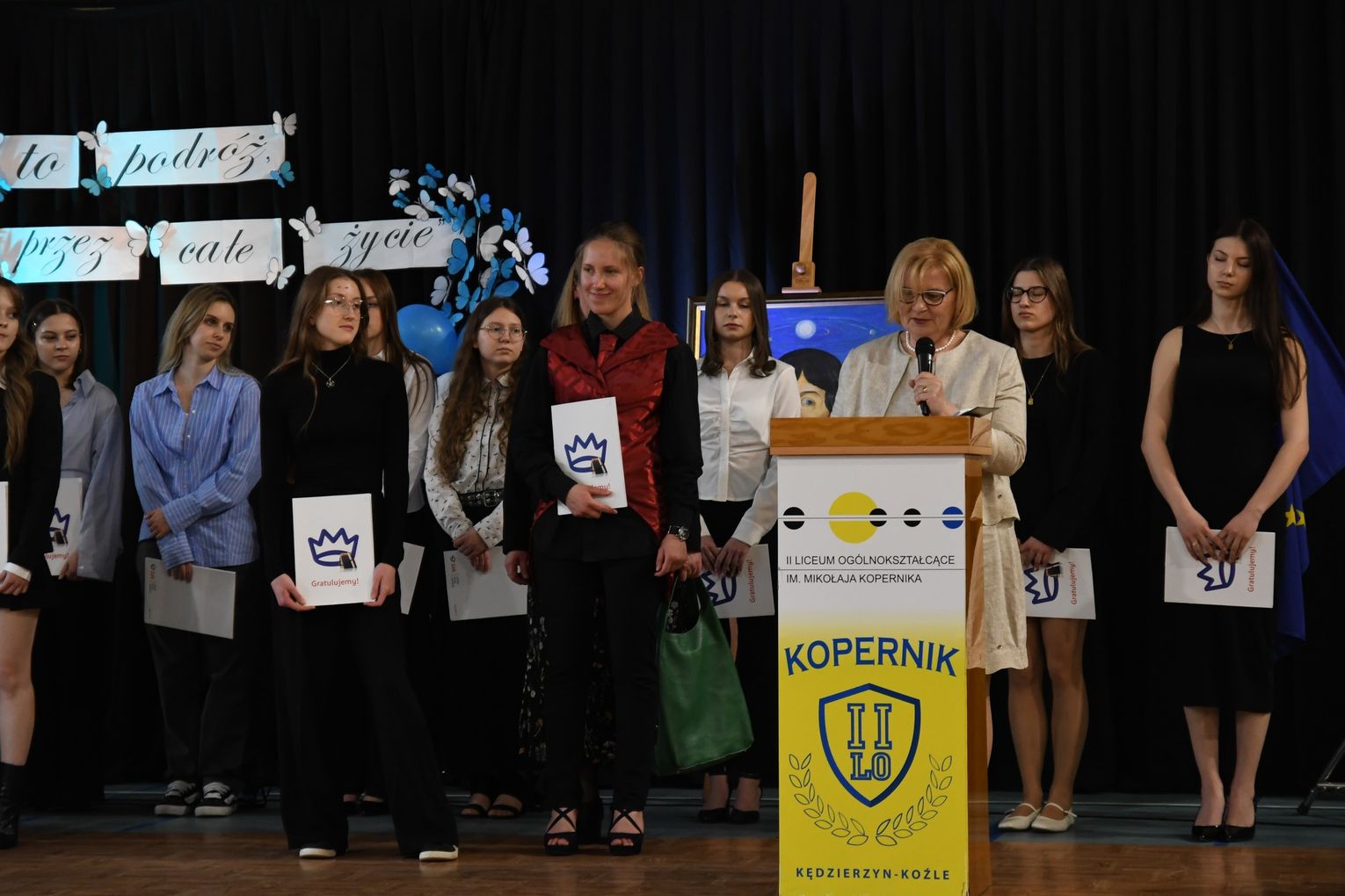 Podczas uroczystości słowa wsparcia i pożegnania skierowała do młodzieży dyrektor Katarzyna Arciszewska-Stępień. W imieniu starosty kędzierzyńsko-kozielskiego Artura Maruszczaka głos zabrała radna powiatowa Bożena Łotecka, przekazując abiturientom serdeczne gratulacje i najlepsze życzenia na przyszłość.