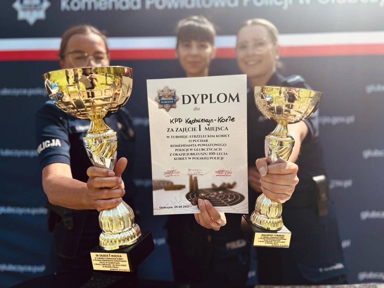 Z okazji 100-lecia obecności kobiet w szeregach policji, komenda powiatowa w Głubczycach zorganizowała specjalny turniej strzelecki dla pań w mundurach. W rywalizacji, która odbyła się w duchu sportowej walki i koleżeńskiej atmosfery, udział wzięło 14 drużyn z różnych jednostek. Komendę Powiatową Policji w Kędzierzynie-Koźlu reprezentowały: młodszy inspektor Iwona Żurawska – komendant powiatowy policji, sierżant Klaudia Tokarczyk – funkcjonariuszka ruchu drogowego, sierżant Magdalena Czogała – dzielnicowa. Drużyna z Kędzierzyna-Koźla okazała się bezkonkurencyjna – panie zdobyły pierwsze miejsce w klasyfikacji drużynowej, a Klaudia Tokarczyk zdobyła dodatkowo tytuł "króla strzelców", potwierdzając swoje wyjątkowe umiejętności. To spory sukces i powód do dumy nie tylko dla samych zawodniczek, ale i całej jednostki. Gratulujemy!