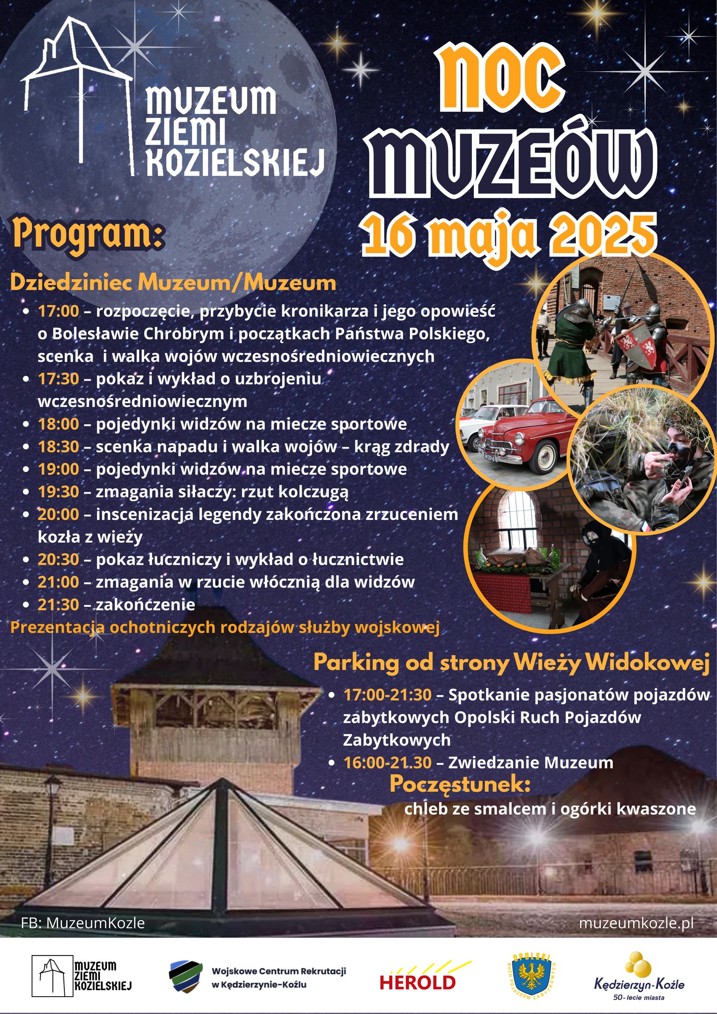 Poza Muzeum Ziemi Kozielskiej, wspieranym przez samorząd miejski w organizację Nocy Muzeów zaangażowane są następujące instytucje i podmioty: WCR Kędzierzyn-Koźle, Opolski Ruch Pojazdów Zabytkowych, Herold - organizacja wydarzeń.