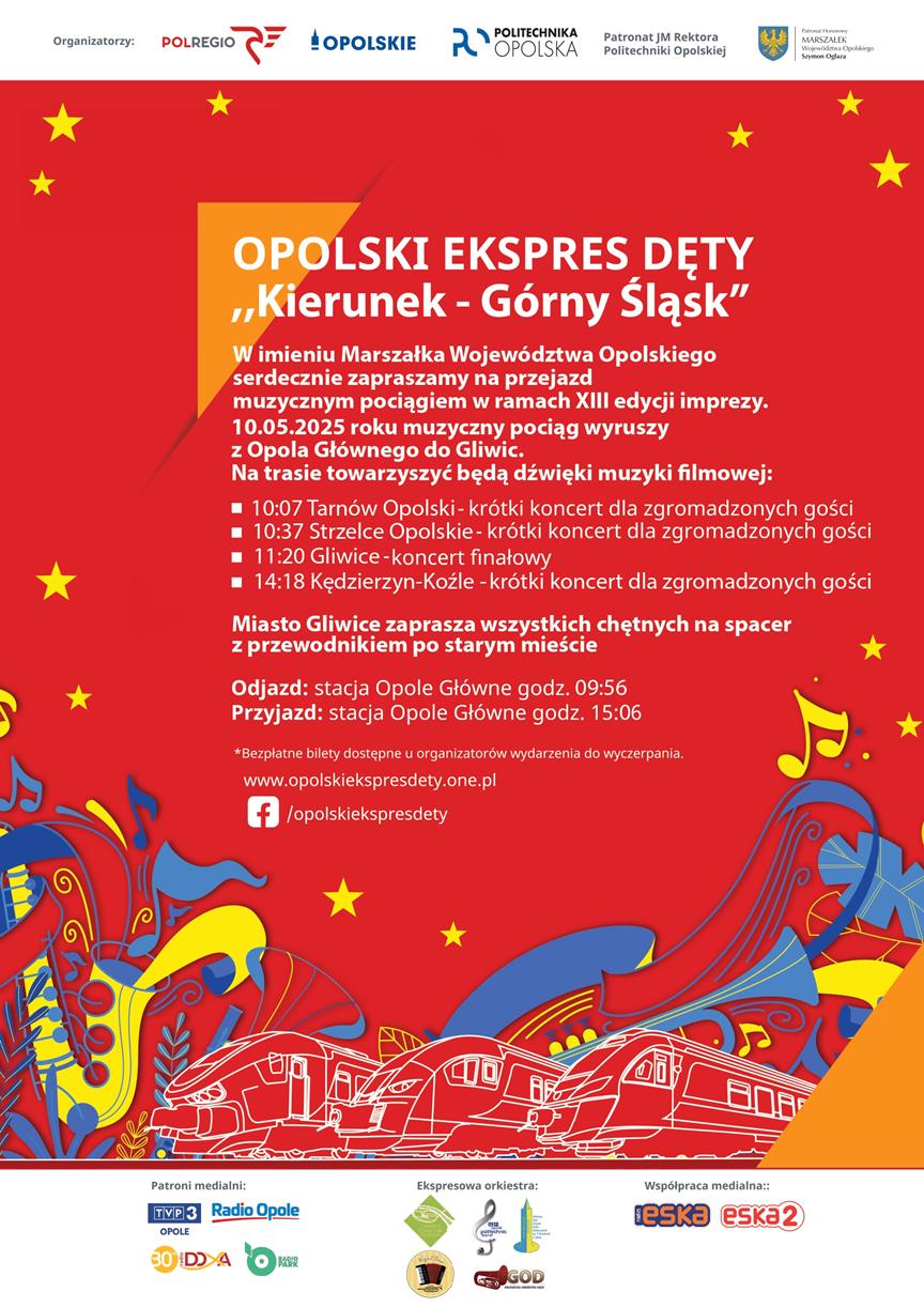 Opolski Ekspres Dęty to nowatorska, pierwsza tego typu w naszym kraju autorska akcja Przemysława Ślusarczyka - opolskiego kompozytora, dyrygenta, animatora kultury, który wymyślił i opracował ideę, markę "Opolskiego Ekspresu Dętego" i od początku realizuje imprezę. To jedyny taki pociąg ekspresowy z orkiestrami na pokładzie. Akcji przyświecają następujące cele: promocja województwa opolskiego; kultury i alternatywnych działań kulturalnych; opolskiego, kolejowego transportu publicznego; kolei i kolejowych szlaków turystycznych; rewitalizacja kolei i tras kolejowych w województwie; turystyka regionalna; aktywizacja lokalnej społeczności.