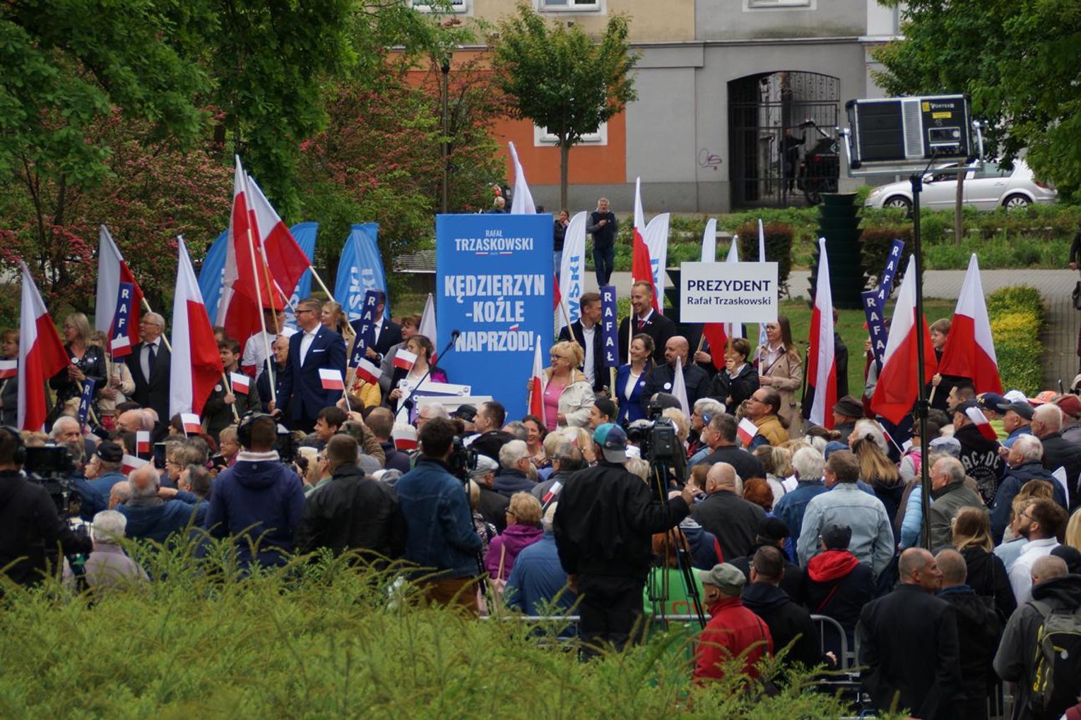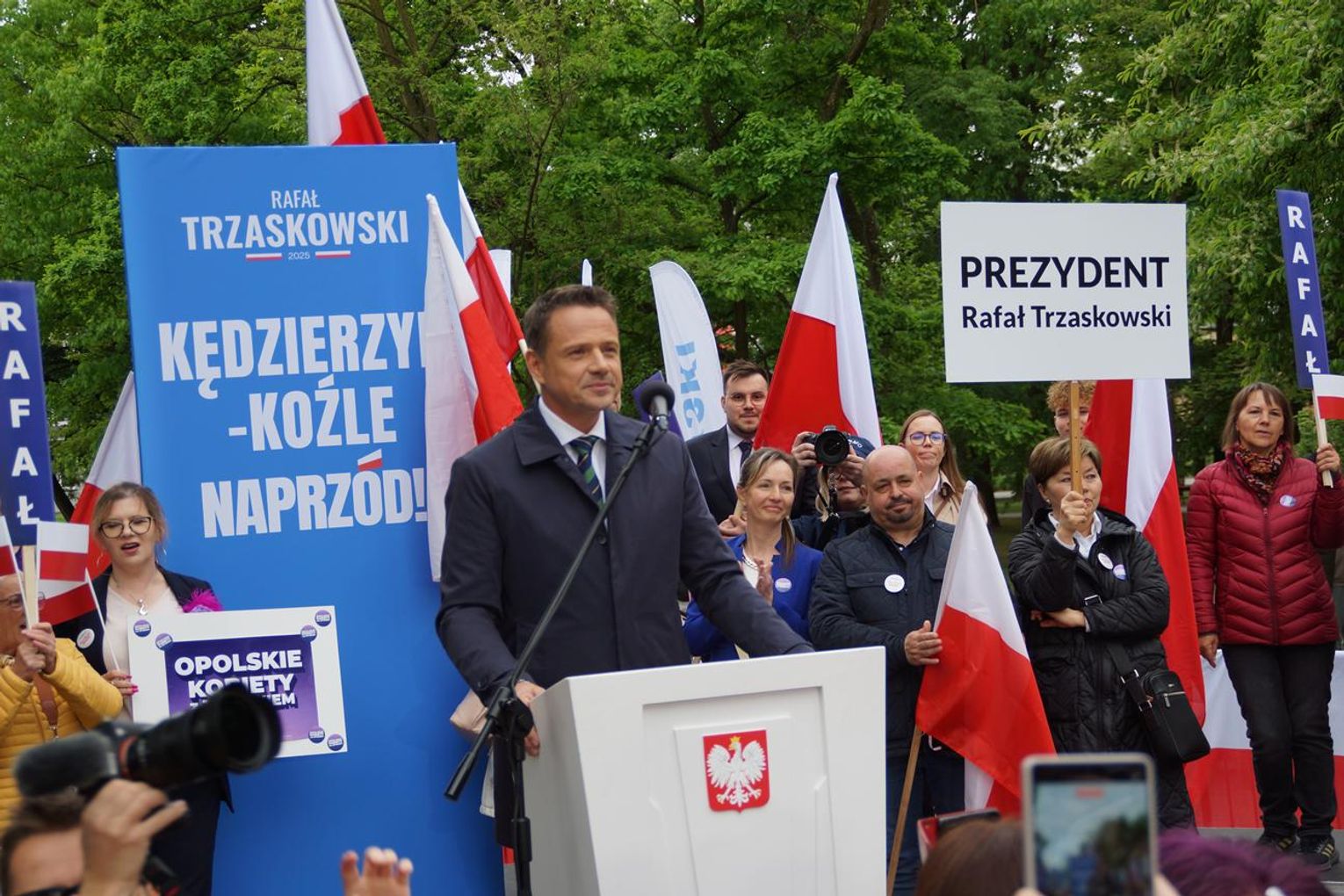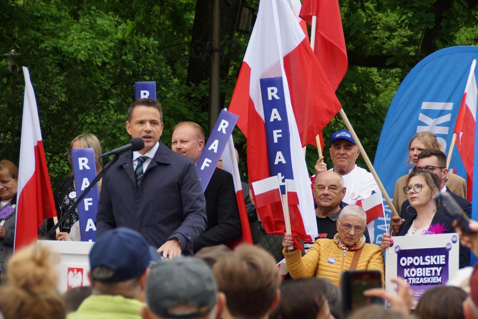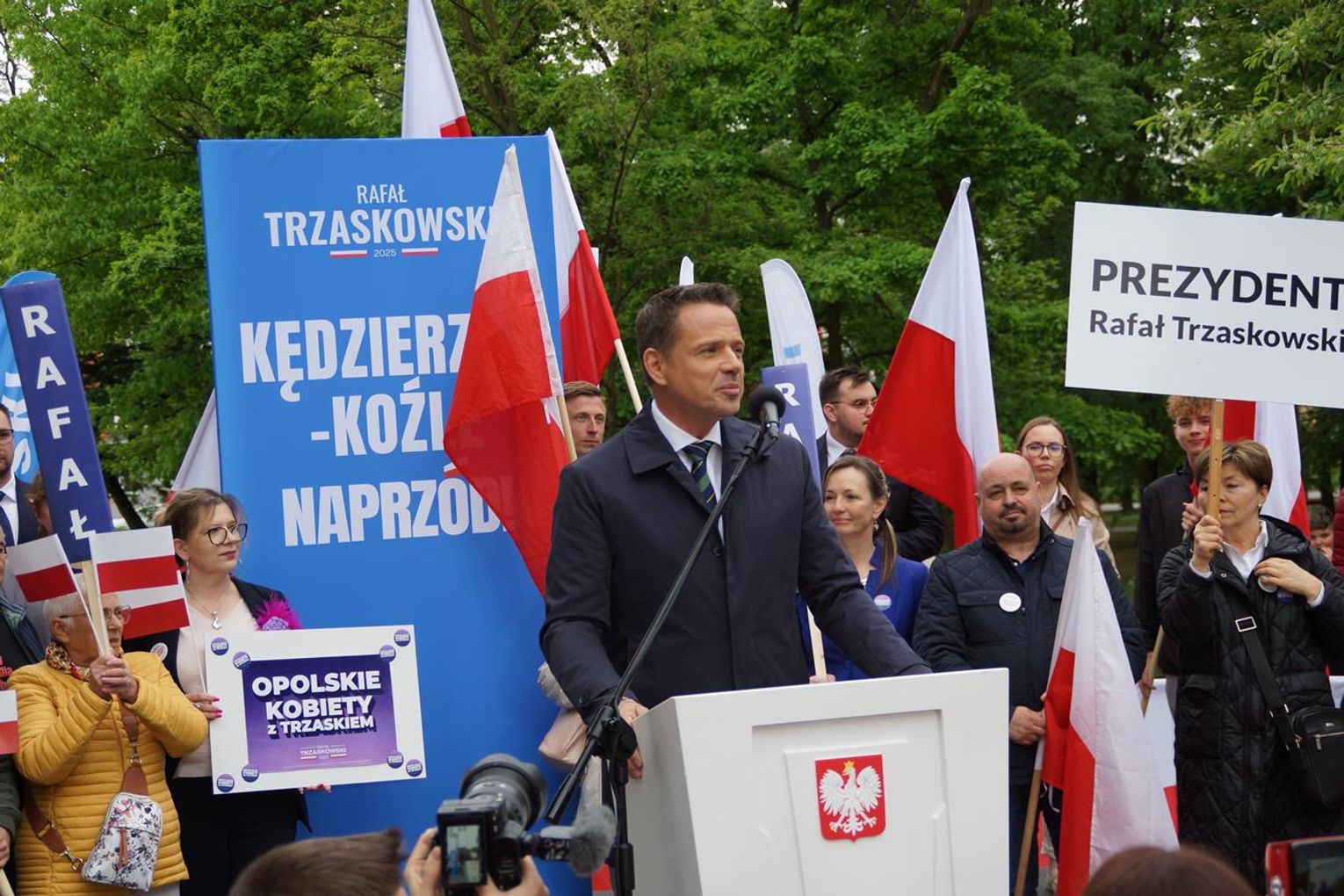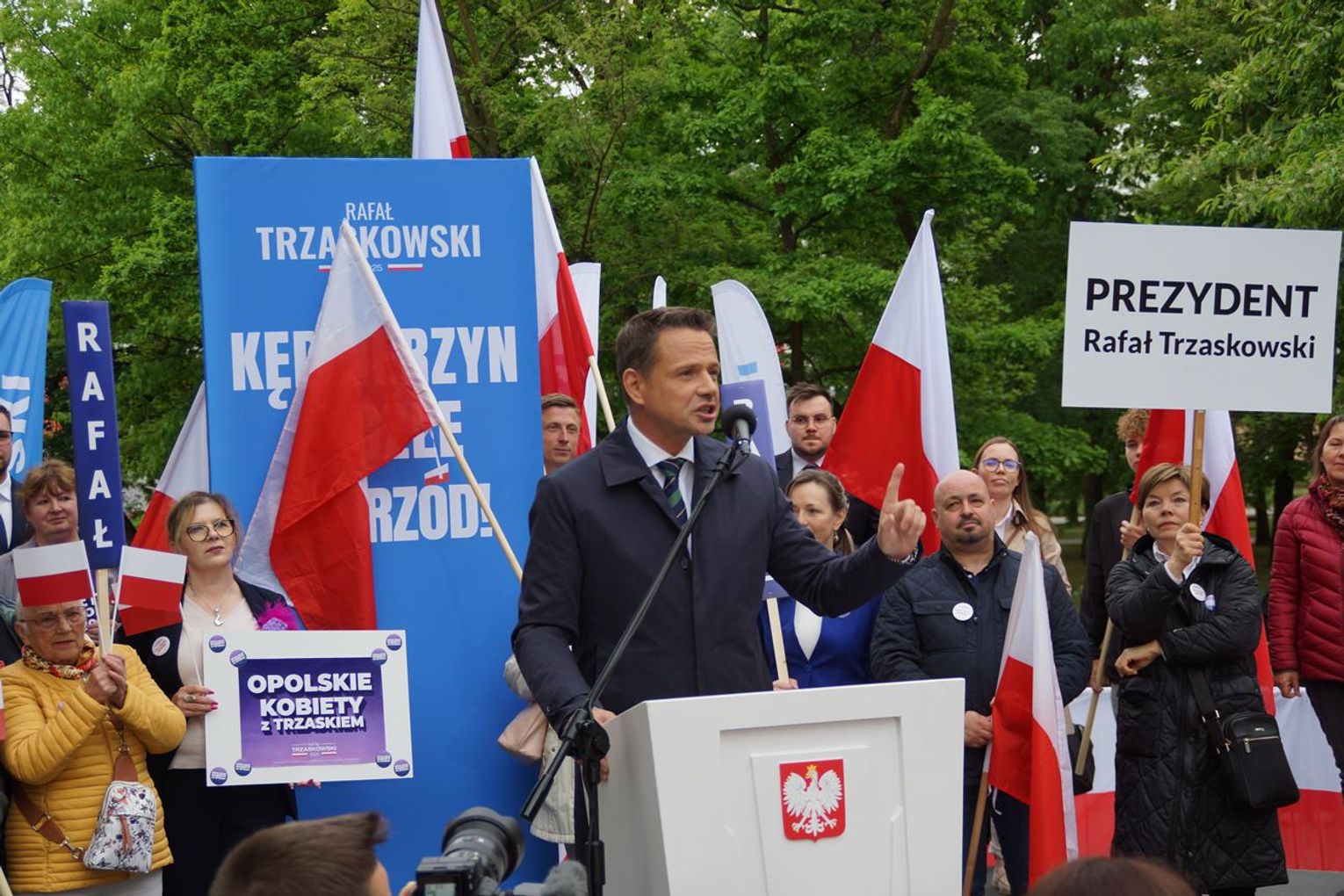 Wiec wyborczy odbył się w parku Pojednania. Wzięło w nim udział kilkaset osób. Zanim na scenie pojawił się kandydat na Prezydenta RP do udziału w wyborach zachęcali m.in.: starosta powiatu Artur Maruszczak, wojewoda opolski Monika Jurek, prezydent Opola Arkadiusz Wiśniewski oraz posłowie na Sejm RP Paweł Masełko i Witold Zembaczyński. Kilkanaście minut po 16 w parku pojawił się Rafał Trzaskowski, który został entuzjastycznie powitany przez zgromadzonych.