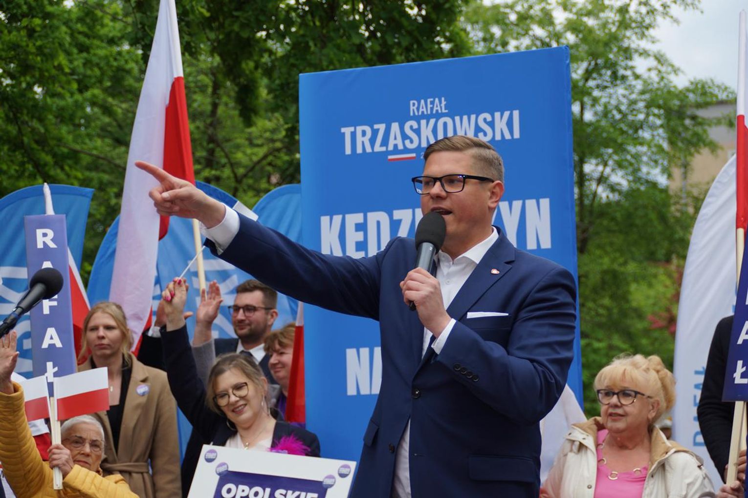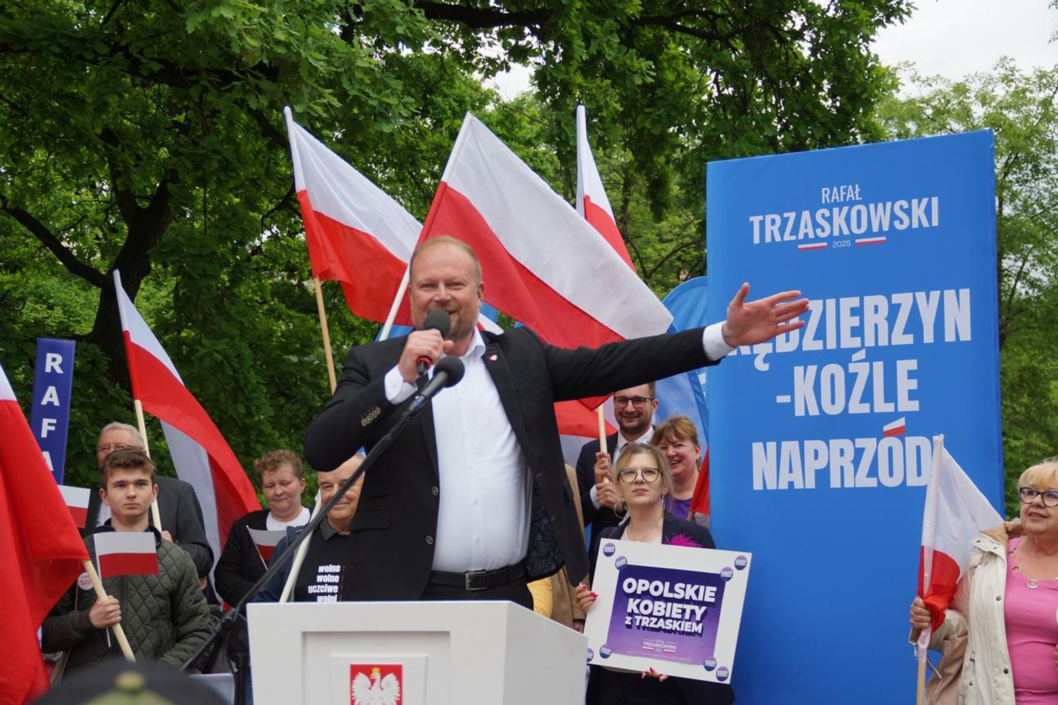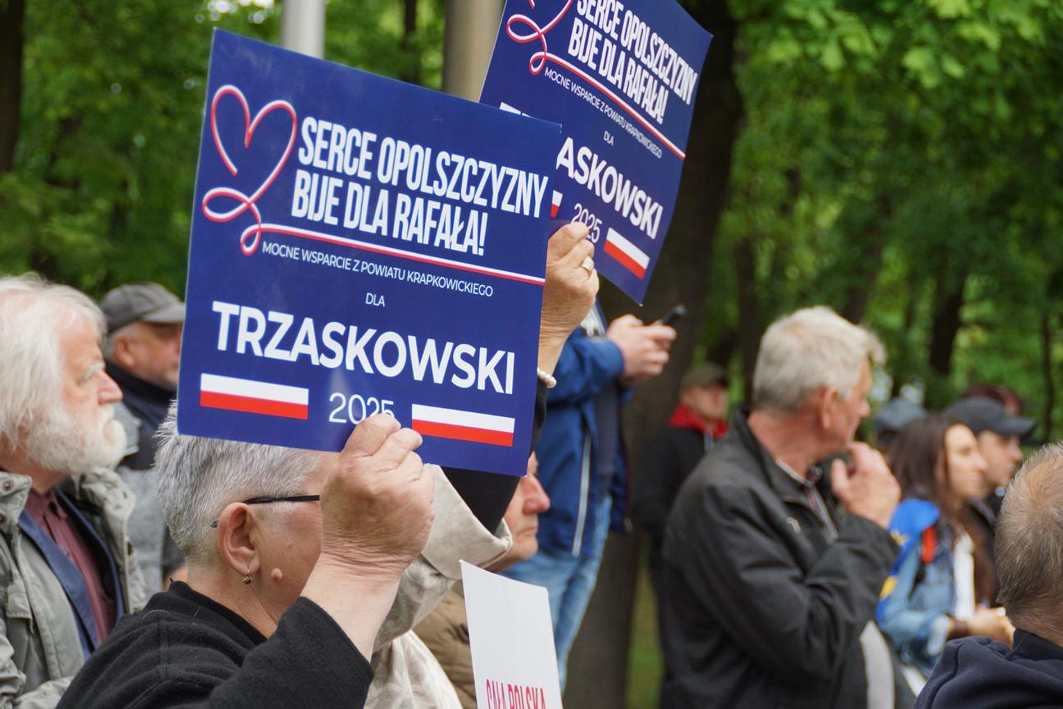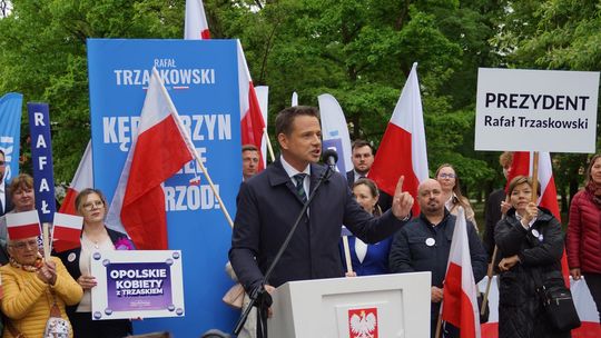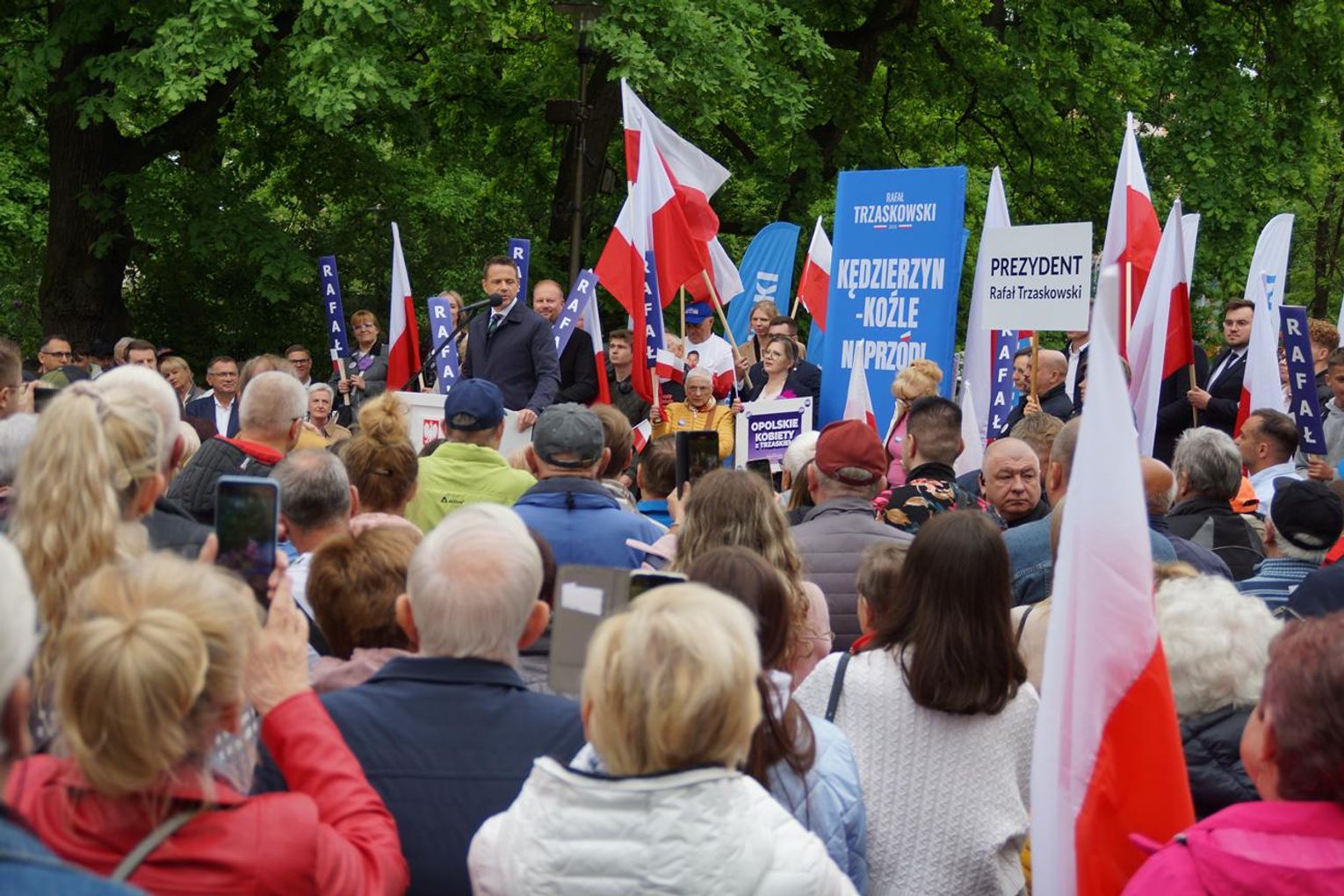 Wiec wyborczy odbył się w parku Pojednania. Wzięło w nim udział kilkaset osób. Zanim na scenie pojawił się kandydat na Prezydenta RP do udziału w wyborach zachęcali m.in.: starosta powiatu Artur Maruszczak, wojewoda opolski Monika Jurek, prezydent Opola Arkadiusz Wiśniewski oraz posłowie na Sejm RP Paweł Masełko i Witold Zembaczyński. Kilkanaście minut po 16 w parku pojawił się Rafał Trzaskowski, który został entuzjastycznie powitany przez zgromadzonych.