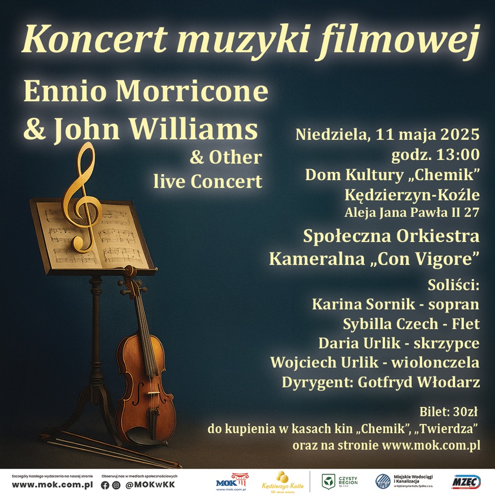 W Domu Kultury "Chemik" przy al. Jana Pawła II zabrzmią utwory legendarnych twórców muzyki filmowej: Ennio Morricone ("Za garść dolarów", "Dawno temu w Ameryce", "Misja", "Nietykalni", "Nienawistna ósemka") i Johna Williamsa ("Szczęki", "Gwiezdne wojny","Poszukiwacze zaginionej ark", "E.T.", "Lista Schindlera", "Szeregowiec Rayan"), a także kompozycje innych wybitnych twórców. To doskonała okazja, by usłyszeć na żywo największe przeboje muzyki filmowej. Nie przegap i zaplanuj majową niedzielę z magią kina i muzyki na najwyższym poziomie!