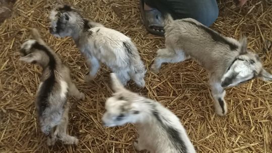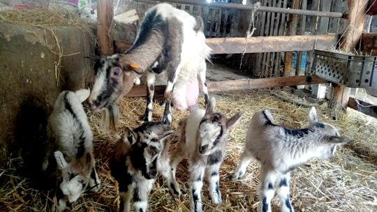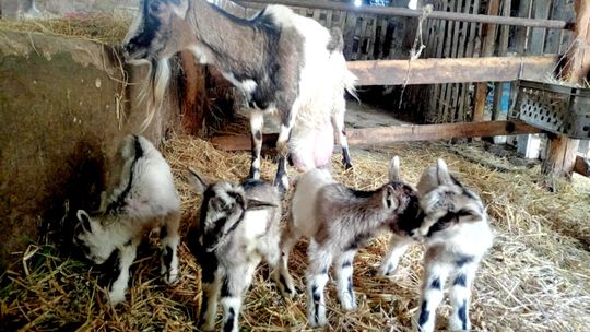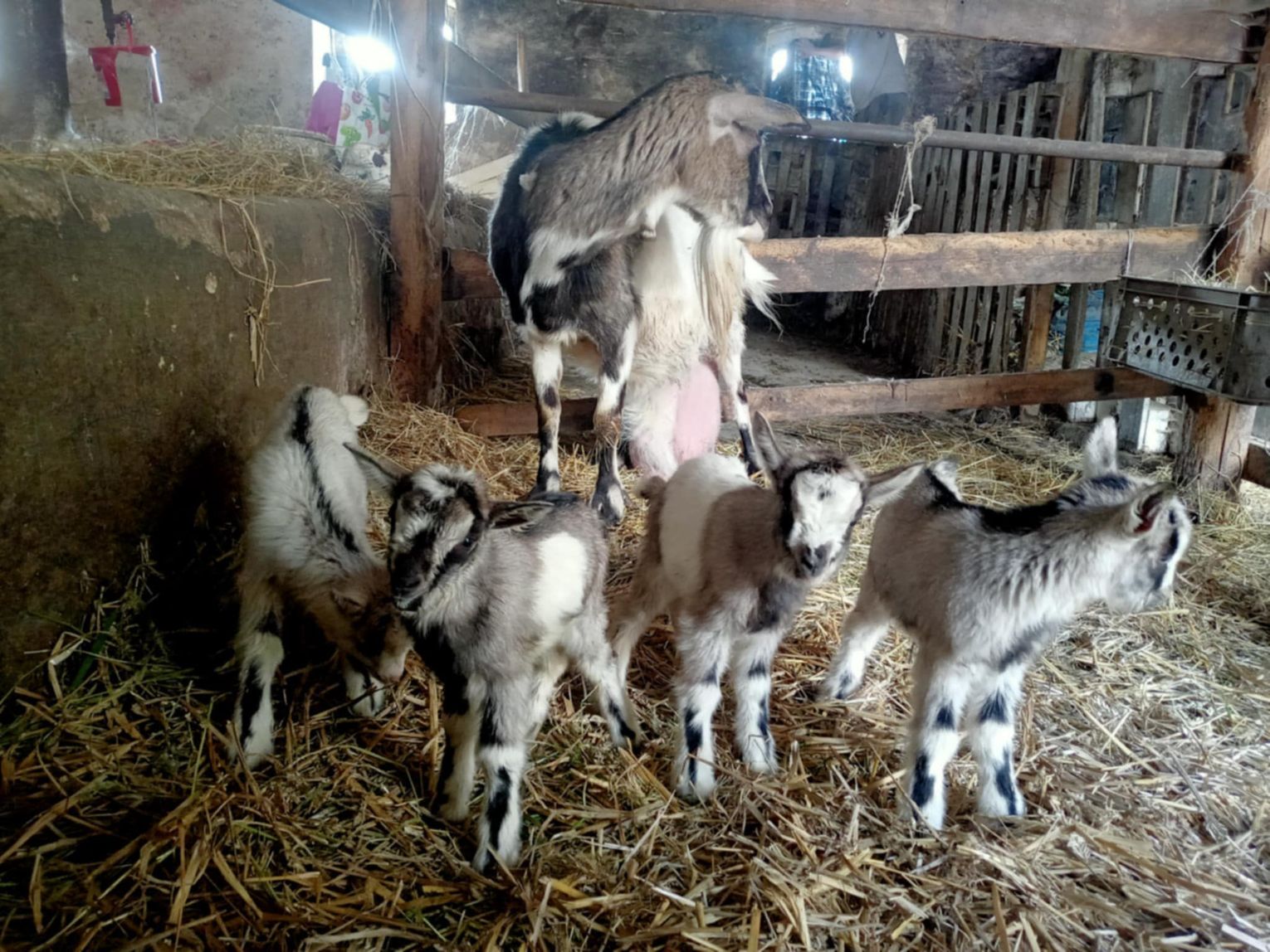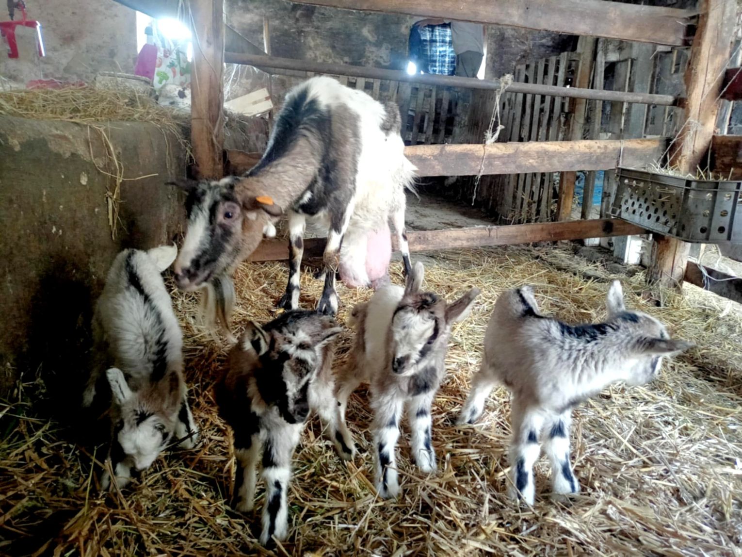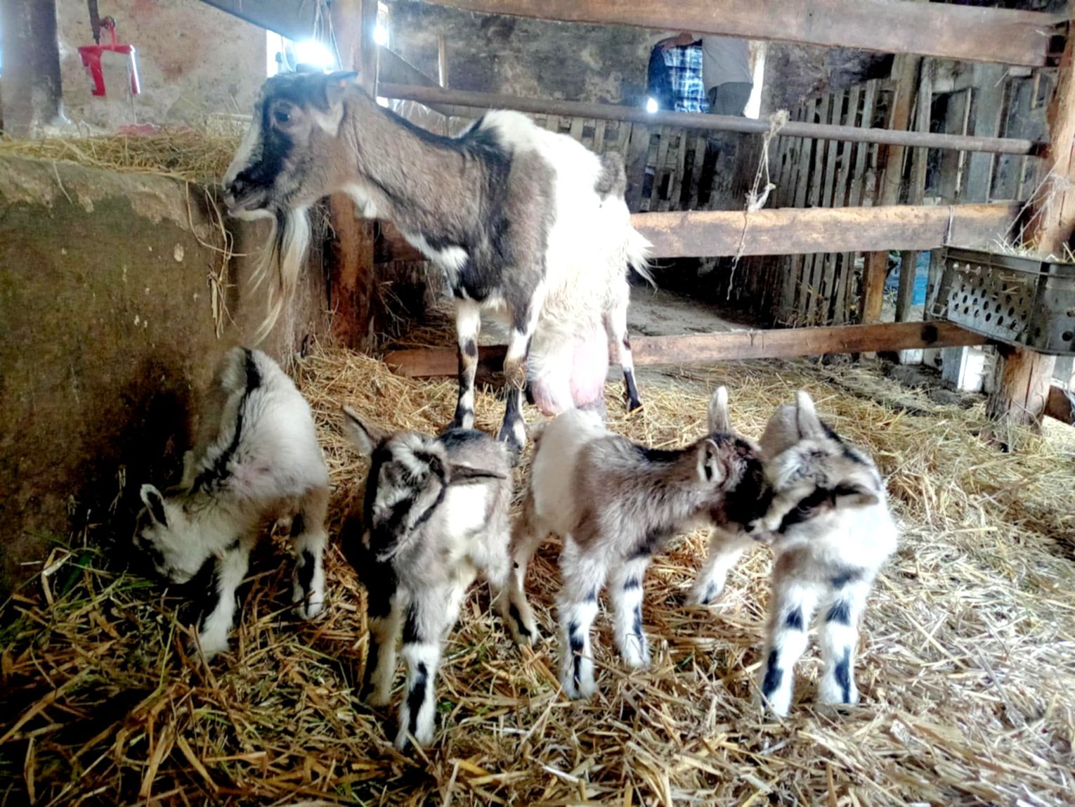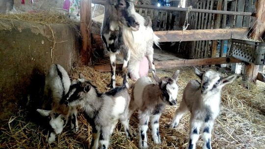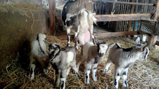 Wykarmienie tylu kóz to wyzwanie, bo zazwyczaj kozy mają tylko dwa sutki, więc przy większej liczbie młodych trzeba pomagać przy karmieniu.