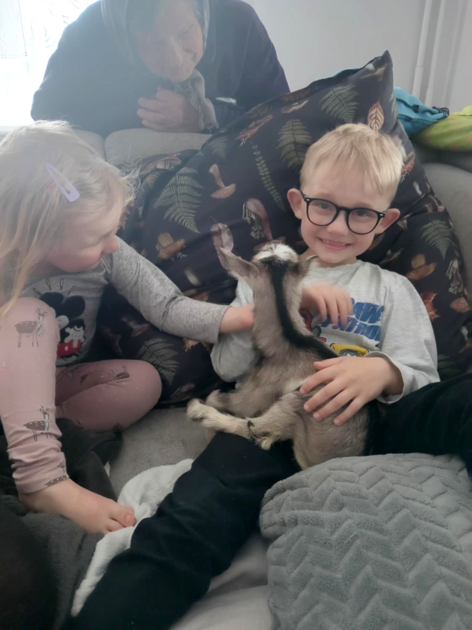 Koza Pamela trafiła do rodziny Wiśniewskich w 2020 roku, gdy na świecie pojawił się ich pierwszy wnuczek - Gniewosz. - Chcieliśmy mieć zdrowe mleko dla wnuka, więc kupiliśmy kozę - wspomina pani Małgorzata. Dziś w domu są już dwoje wnucząt: Antosia i Gniewosz, który - warto dodać - był laureatem plebiscytu na "Bobasa Miesiąca"!