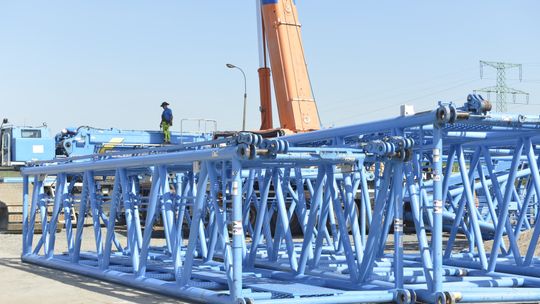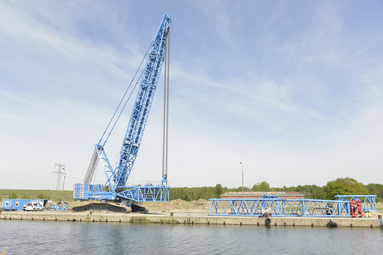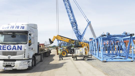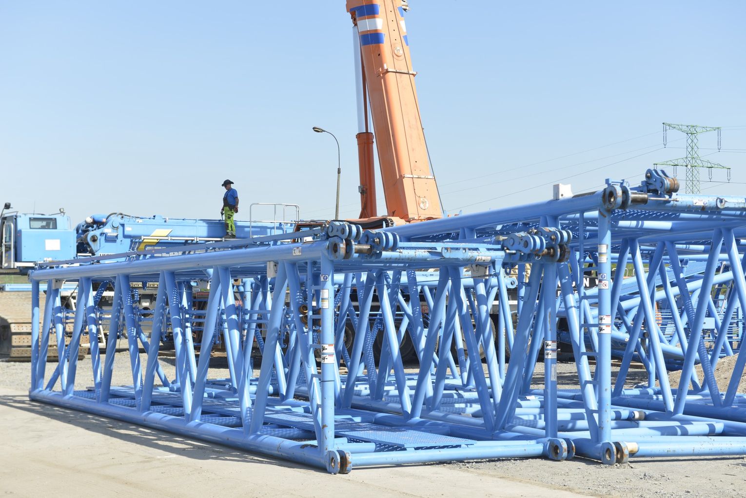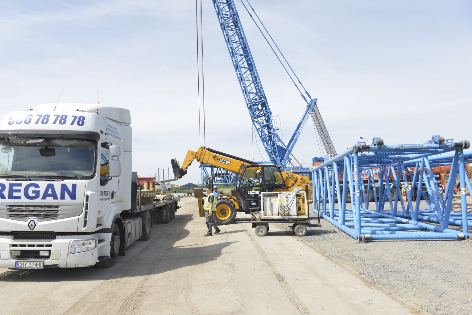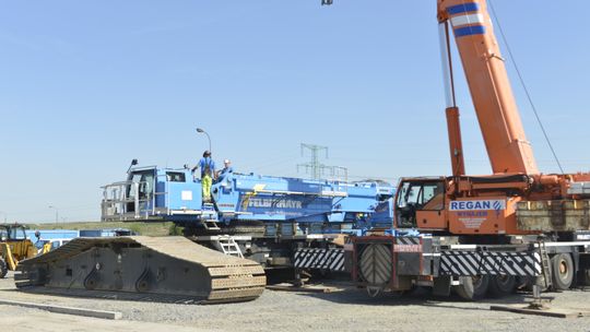 Warto przypomnieć, że do wyładunków ponadgabarytów użyto żurawia Liebherr LR1600 w konfiguracji SDB 42 m. Jest to żuraw gąsienicowy z wysięgnikiem kratowym oraz dodatkową przeciwwagą tzw. superlift, zwiększającą udźwig.