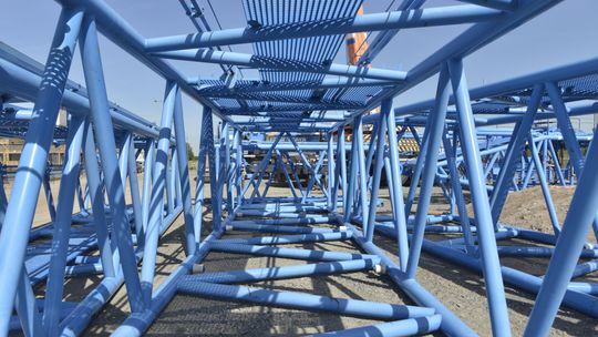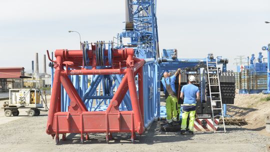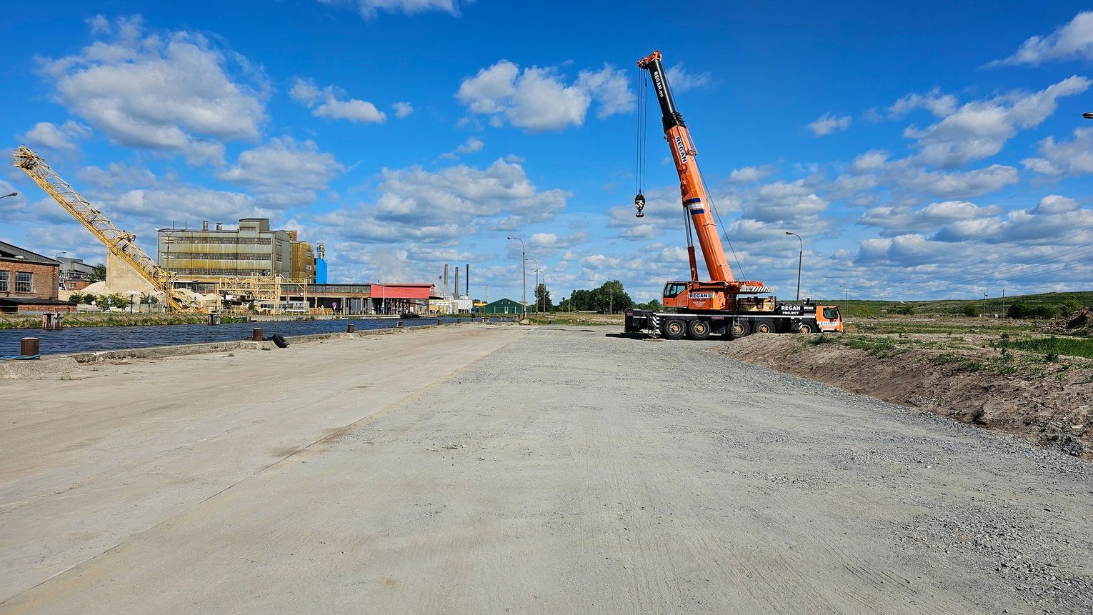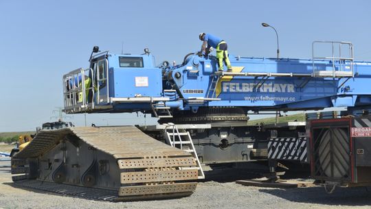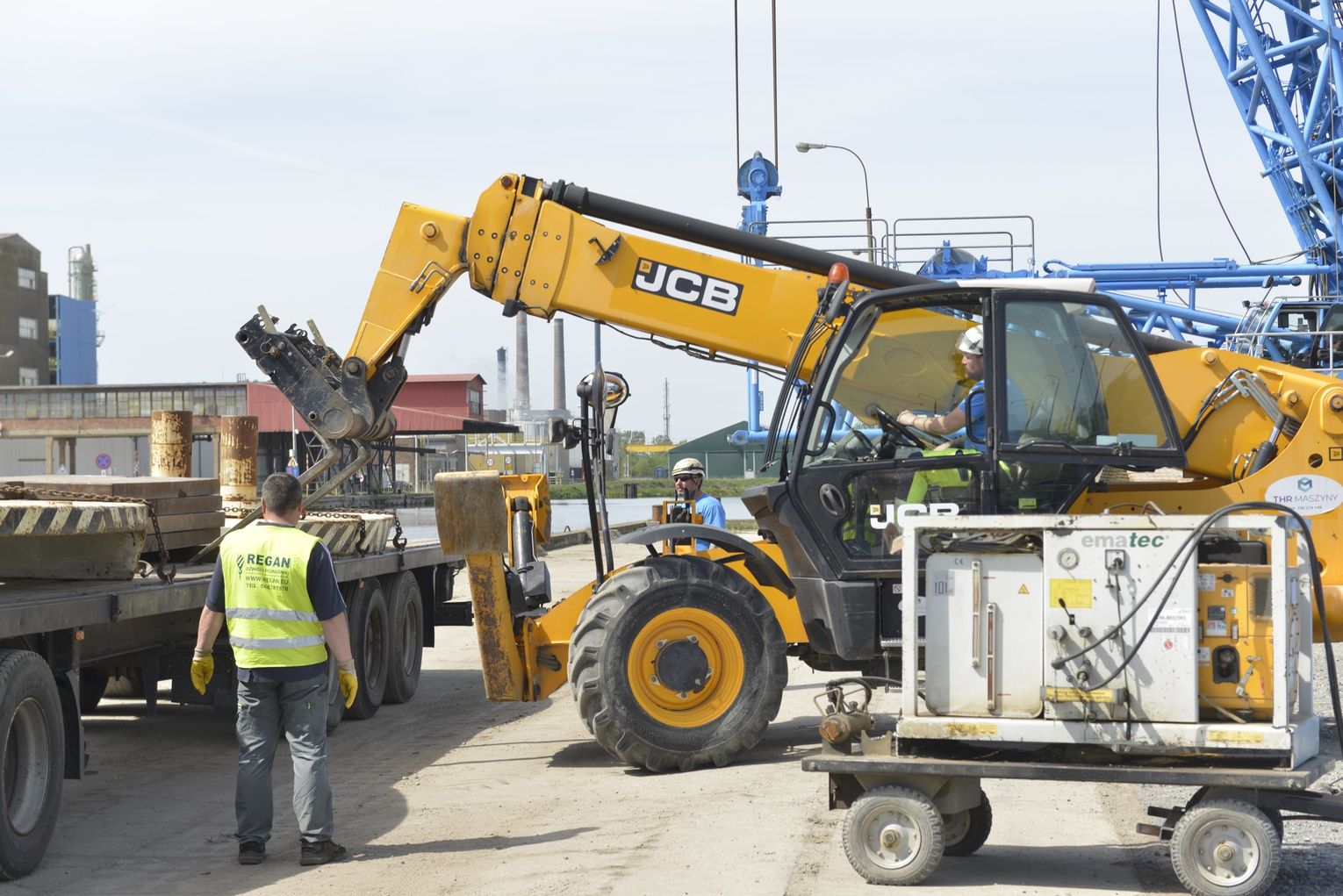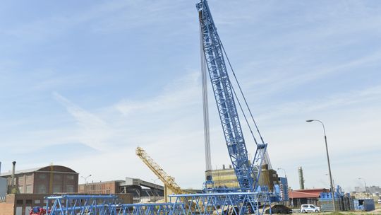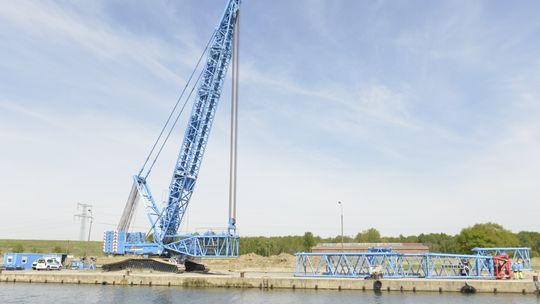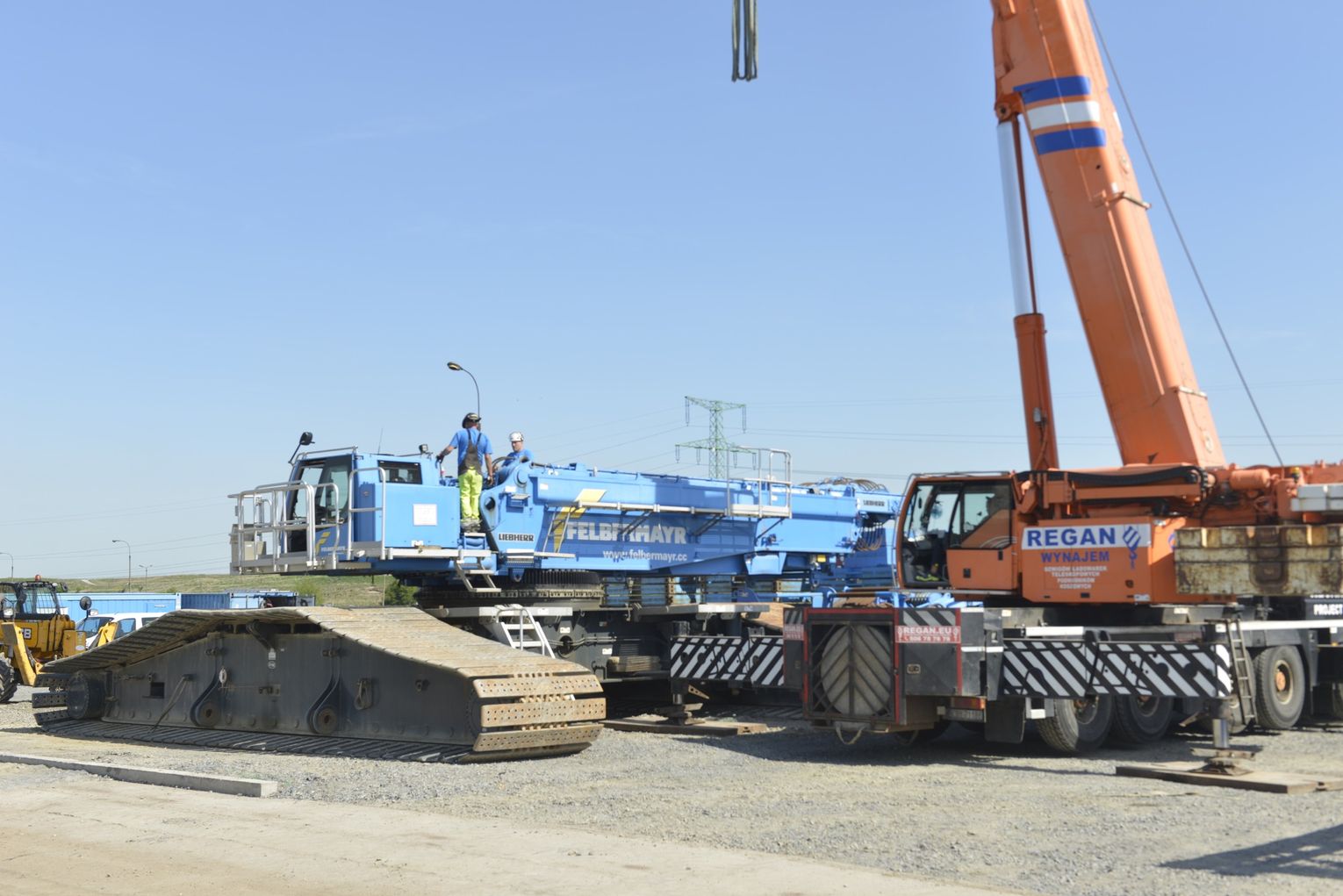 Warto przypomnieć, że do wyładunków ponadgabarytów użyto żurawia Liebherr LR1600 w konfiguracji SDB 42 m. Jest to żuraw gąsienicowy z wysięgnikiem kratowym oraz dodatkową przeciwwagą tzw. superlift, zwiększającą udźwig.