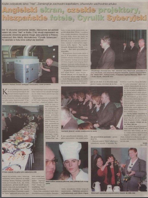 Pierwszy seans w “Helu” odbył się w czwartkowy wieczór, 13 stycznia. Wyświetlony został film Nikity Michałkowa “Cyrulik Syberyjski”, opowieść o miłości Amerykanki do kadeta szkoły oficerskiej w carskiej Rosji. Był to pokaz przedpremierowy, ponad miesiąc przed oficjalnym wejściem na ekrany polskich kin. Nie widzieli go więc nawet warszawiacy, zazwyczaj uprzywilejowani w tej materii. Film zrobił na widzach ogromne wrażenie. Gdy po seansie opuszczali salę projekcyjną, nawet niektórzy panowie manipulowali chusteczkami w okolicy oczu.