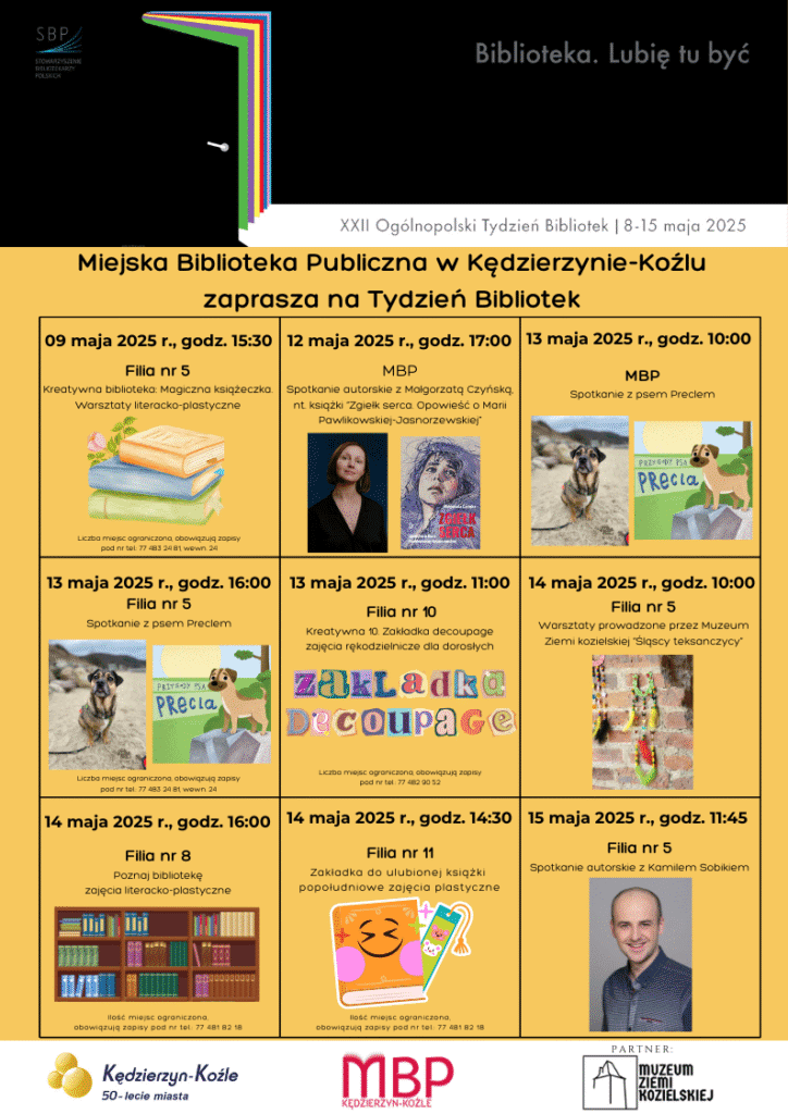 Czym jest Tydzień Bibliotek? To czas, w którym oddajemy hołd magicznemu światu książek, inspirujemy do czytania i poznawania nowych historii, oraz promujemy różnorodne formy działalności bibliotecznej. Organizatorem wydarzenia jest Miejska Biblioteka Publiczna, a partnerem Muzeum Ziemi Kozielskiej. Program akcji w Kędzierzynie-Koźlu: