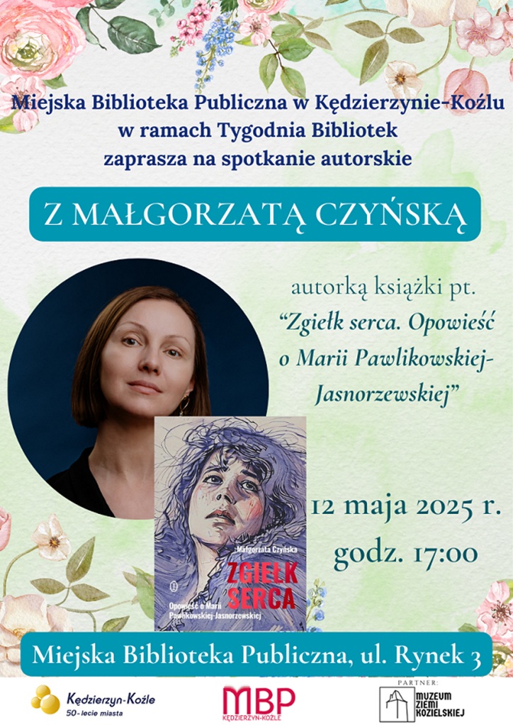 12 maja 2025 r., godz. 17:00, MBP – Spotkanie autorskie z Małgorzatą Czyńską, nt. książki “Zgiełk serca. Opowieść o Marii Pawlikowskiej-Jasnorzewskiej”