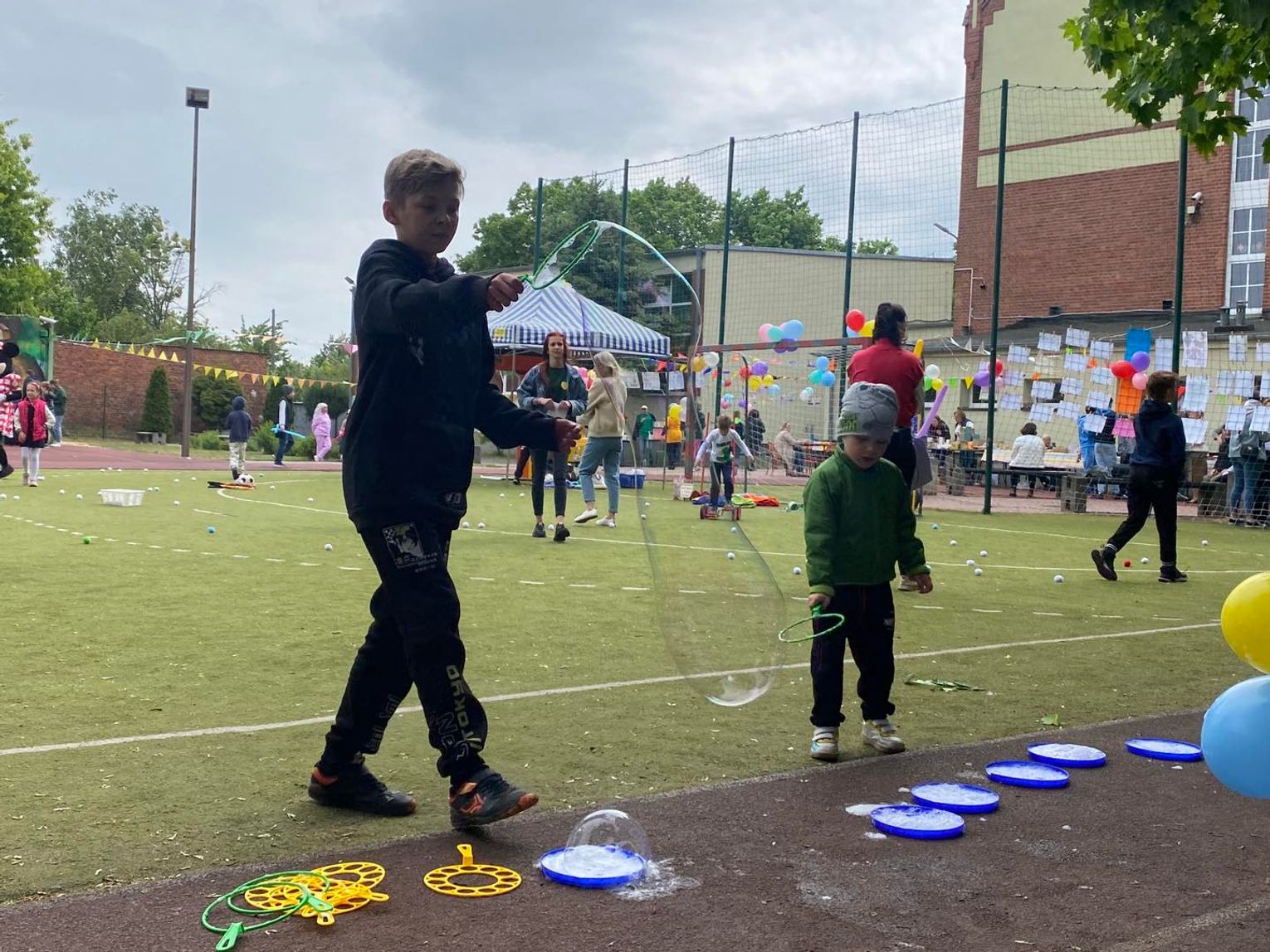 W trakcie rodzinnego festynu w PSP nr 1 niczego nie brakowało. Malowanie buziek, brokatowe tatuaże, kolorowe warkoczyki, strefa rękodzieła, bańki mydlane, balonowe zwierzątka, zabawy sportowe, pyszne ciasta i naleśniki, wata cukrowa i popcorn, zupa pomidorowa i pajda ze smalcem serwowane przez samą Barbie, grillowane kiełbaski, pokazy Policji oraz WOPR-u, występy „Jedynkowiczów”, dmuchańce i rodeo, pokazy mistrzostwa w piłce nożnej, kiermasz książki, cegielnia oraz festiwal kolorów - to wszystko czekało na uczestników sobotniego festynu. Było radośnie i rodzinnie.