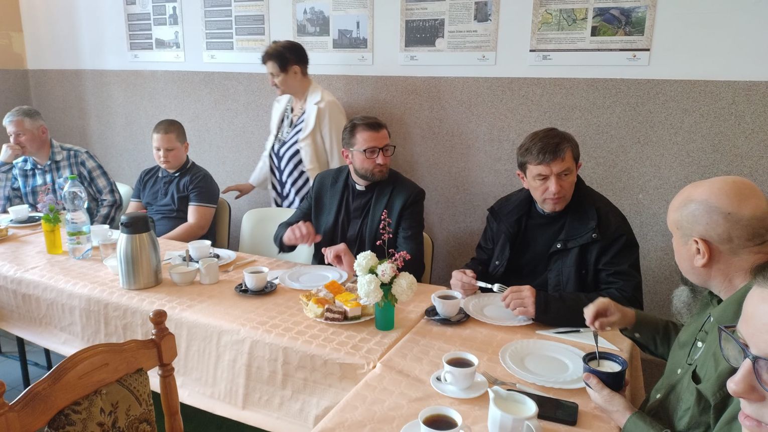 Nie zabrakło domowego ciasta, herbaty, a przede wszystkim dobrego towarzystwa. W wydarzeniu uczestniczyli również prezydent Sabina Nowosielska, ks. Marian Bednarek oraz ks. Arnold Klita.